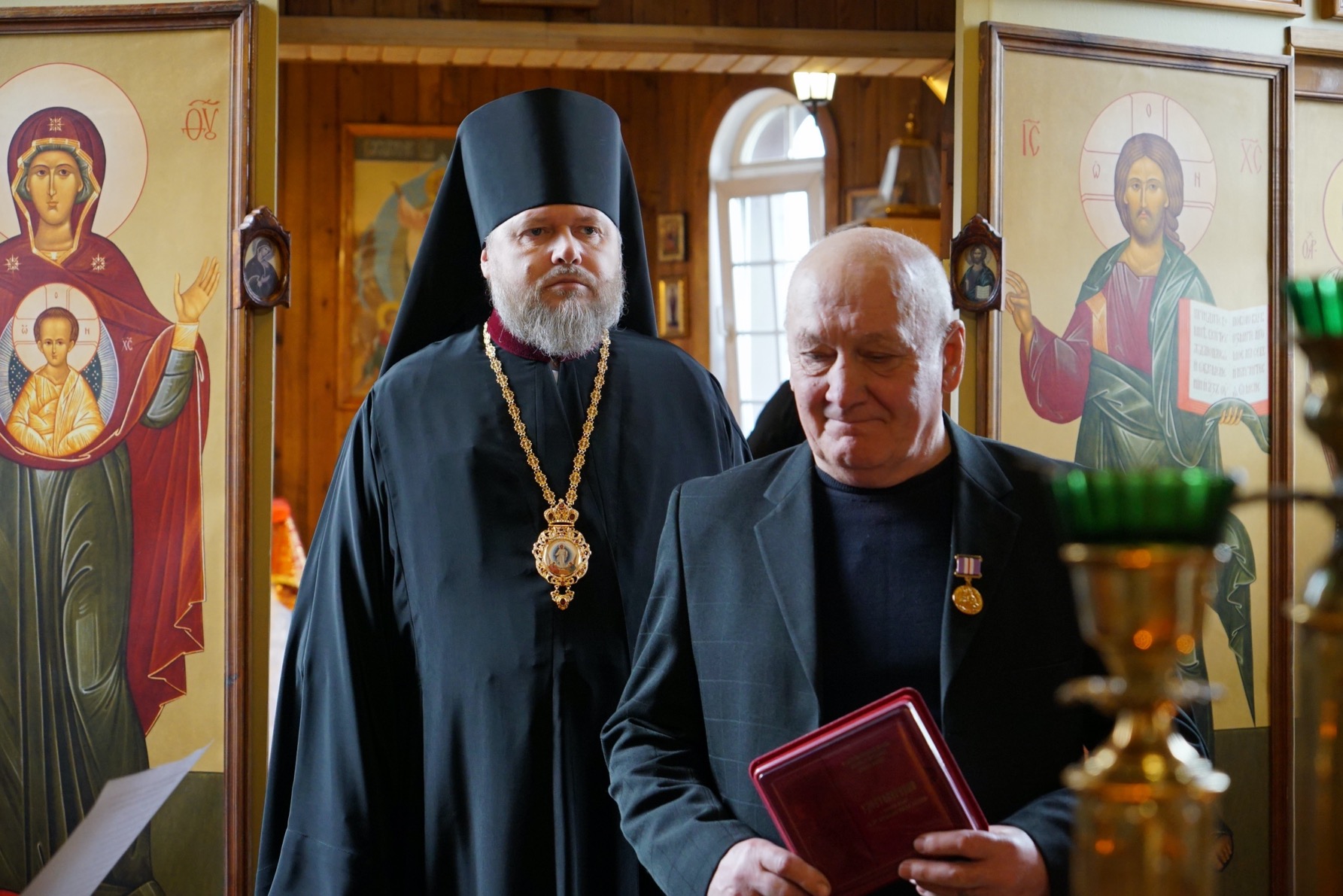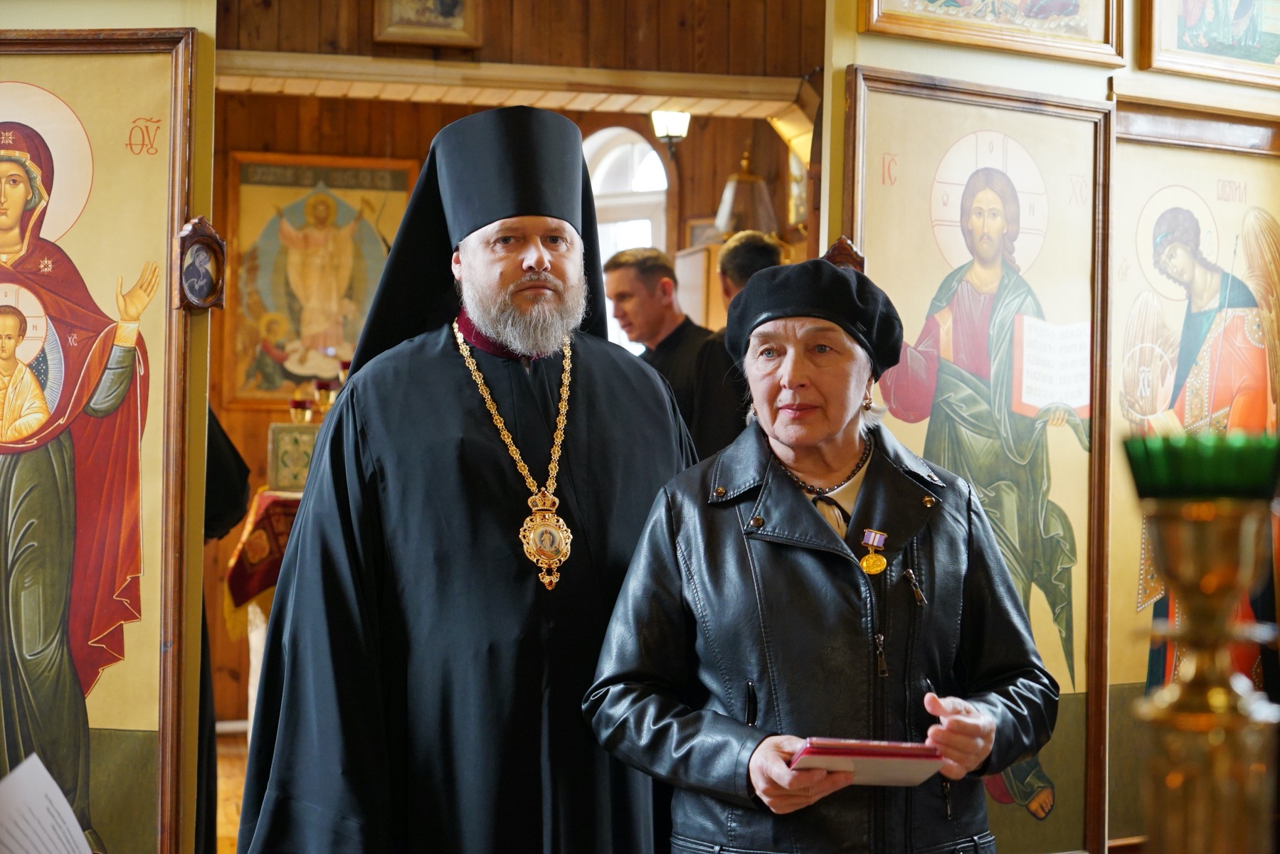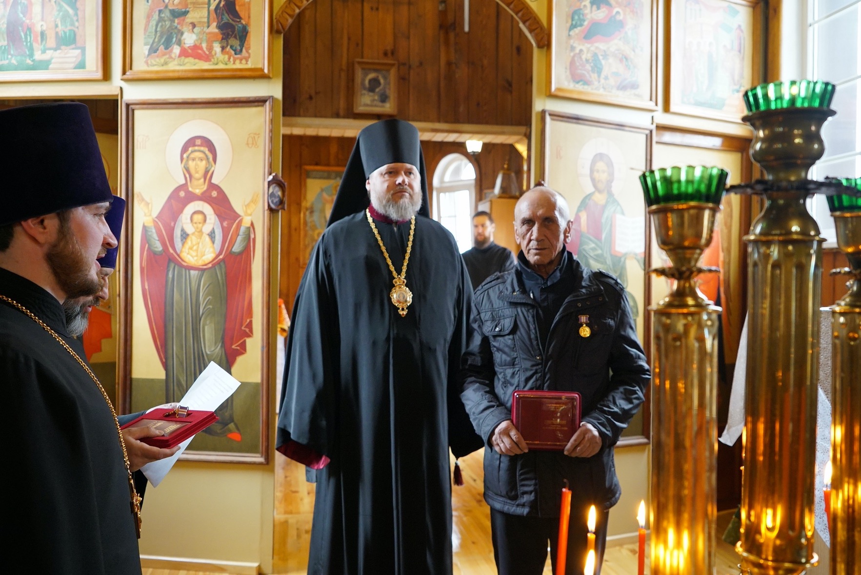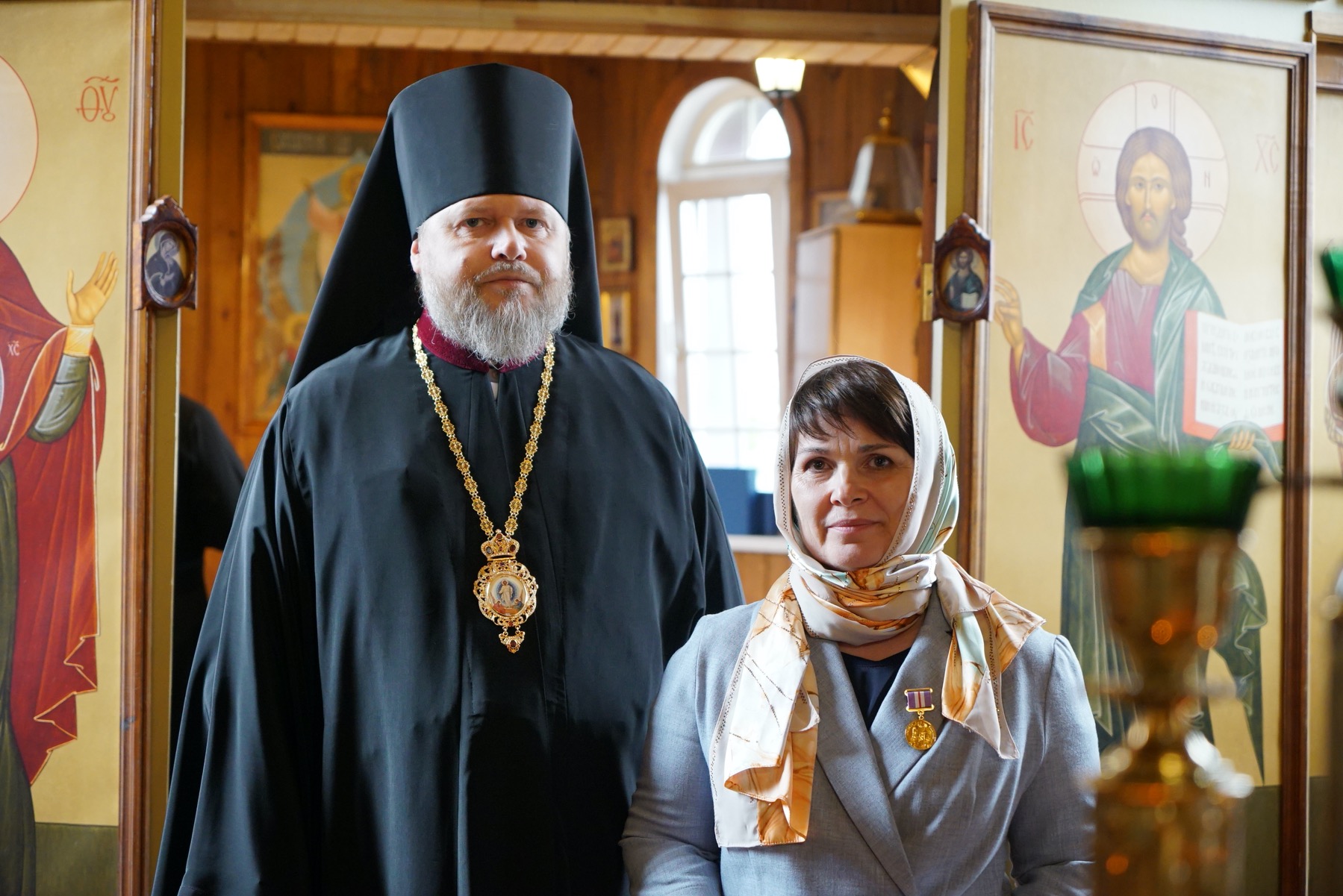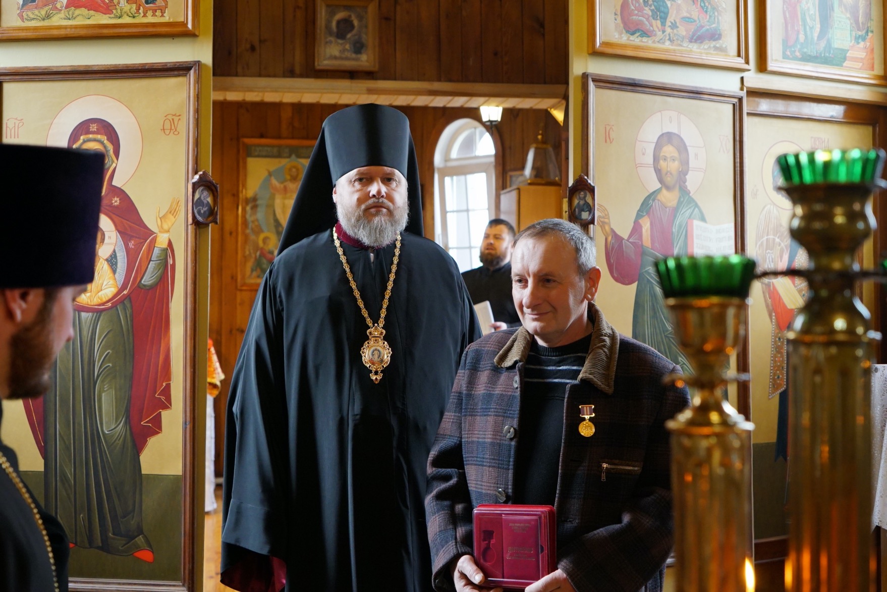 По окончании богослужения правящий архиерей наградил активных прихожан и работников храма юбилейными медалями к 10-летию образования Бийской епархии в составе Алтайской митрополии.