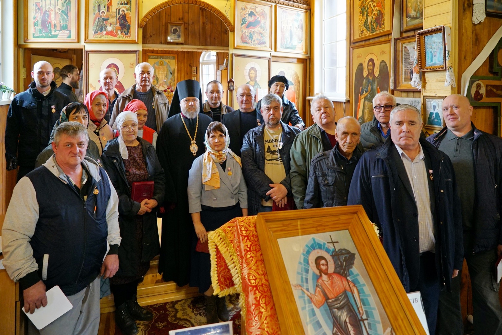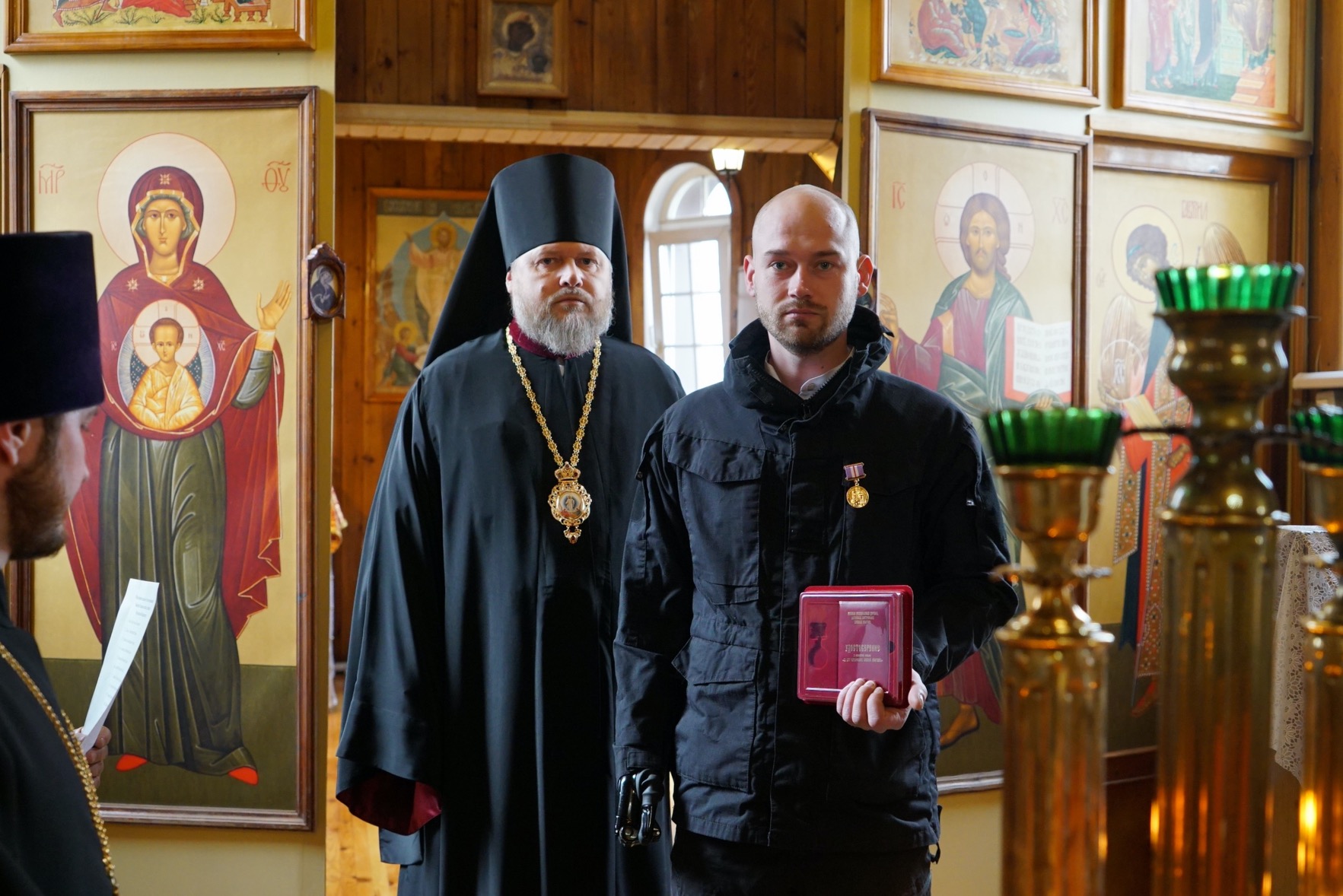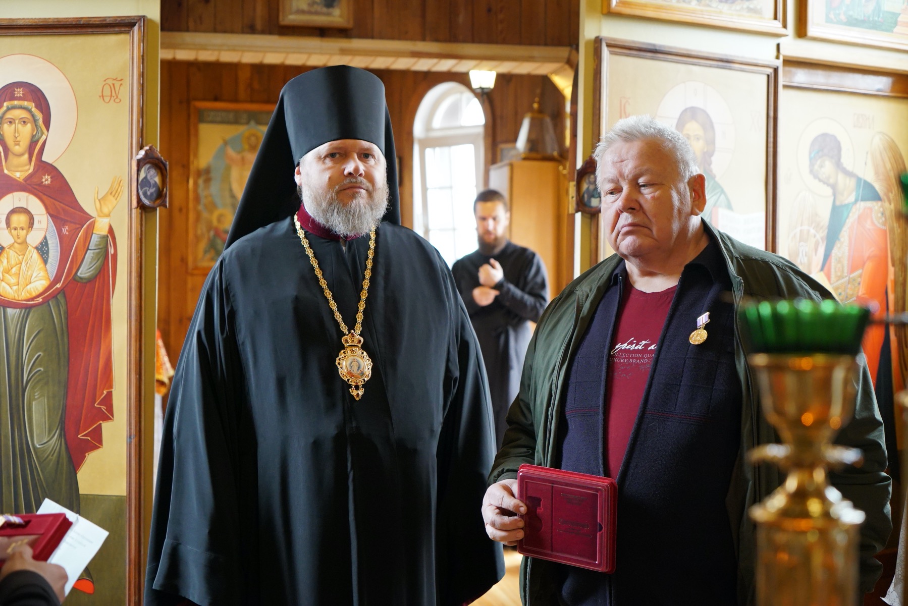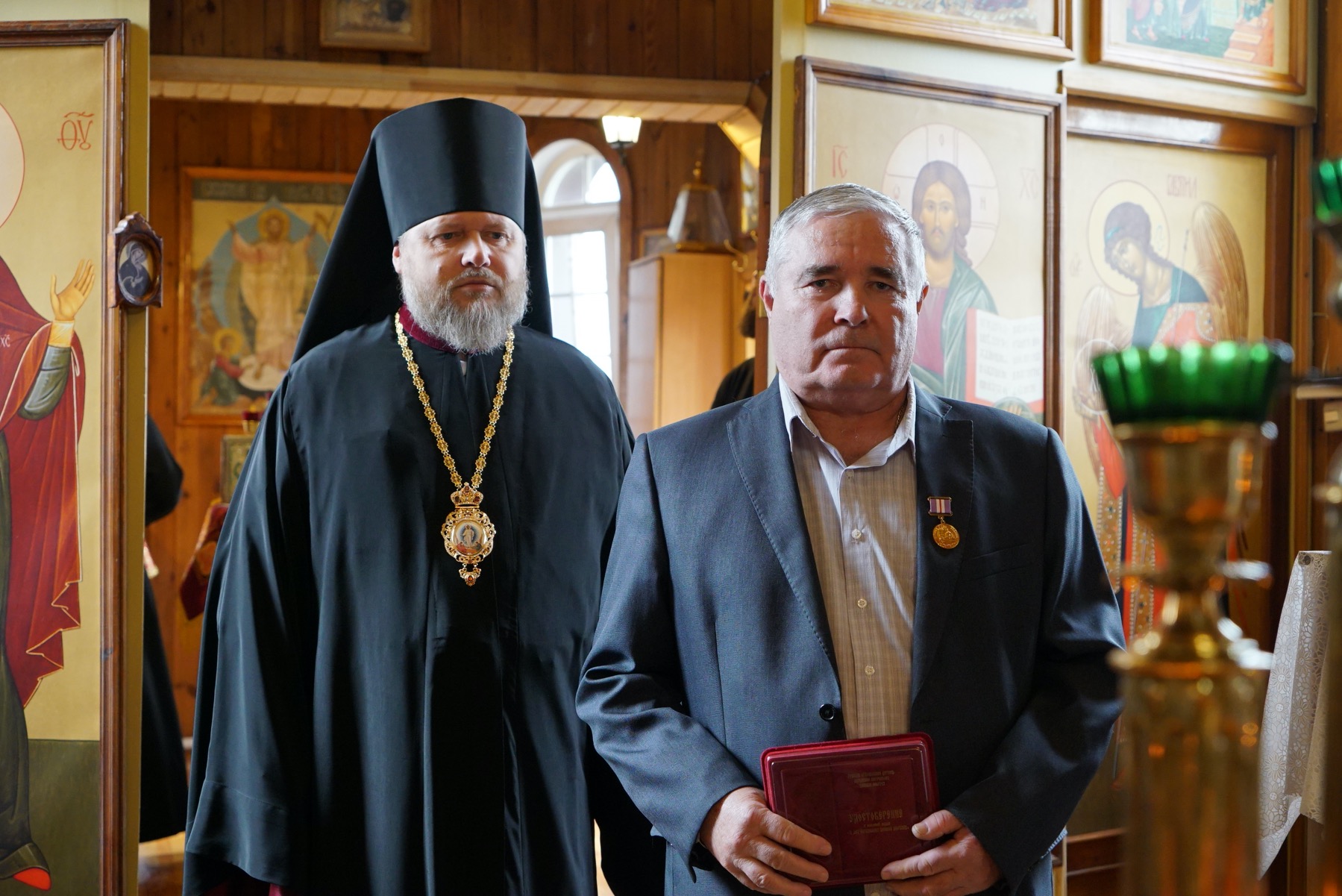 По окончании богослужения правящий архиерей наградил активных прихожан и работников храма юбилейными медалями к 10-летию образования Бийской епархии в составе Алтайской митрополии.