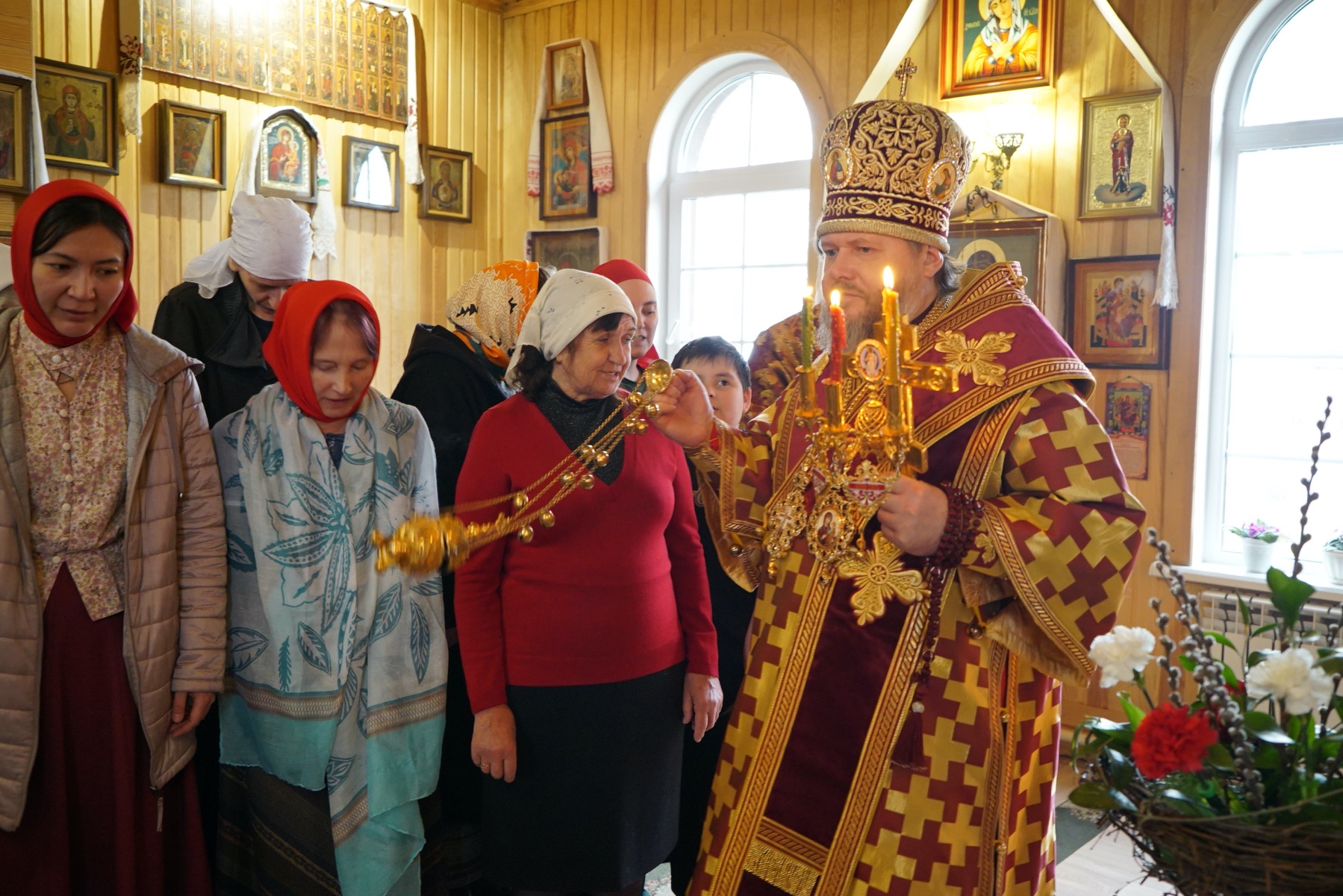 Вечером 15 апреля, в канун четверга Светлой седмицы, епископ Бийский и Белокурихинский Серафим совершил вечернее богослужение в храме Святой Троицы села Малоугренево Бийского района.