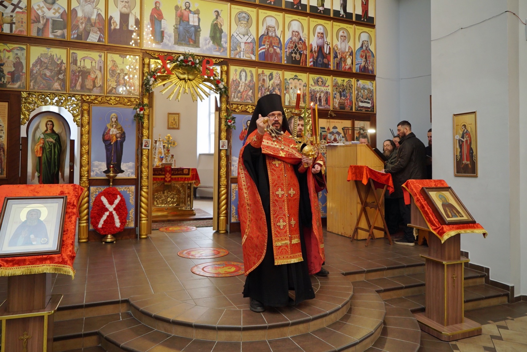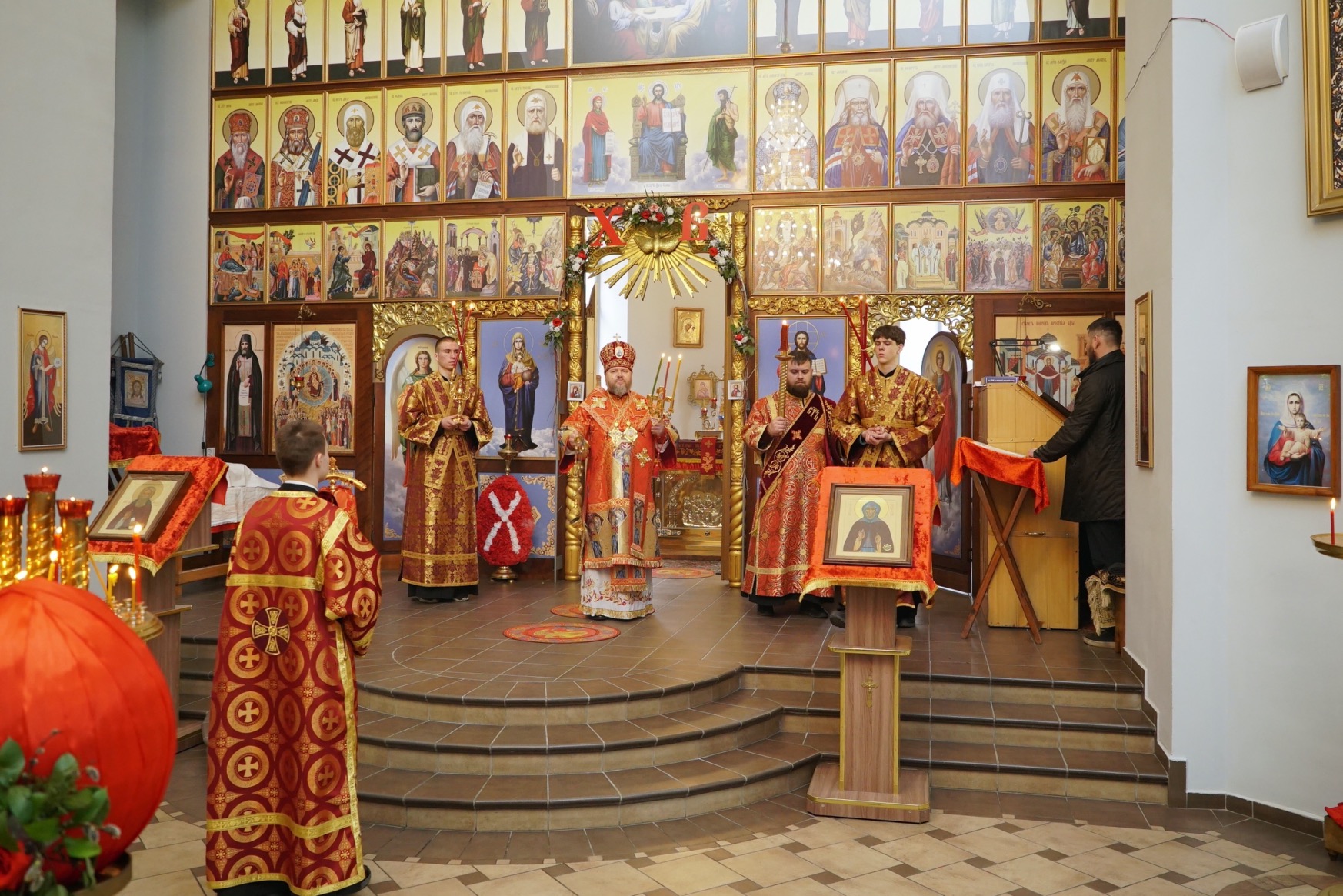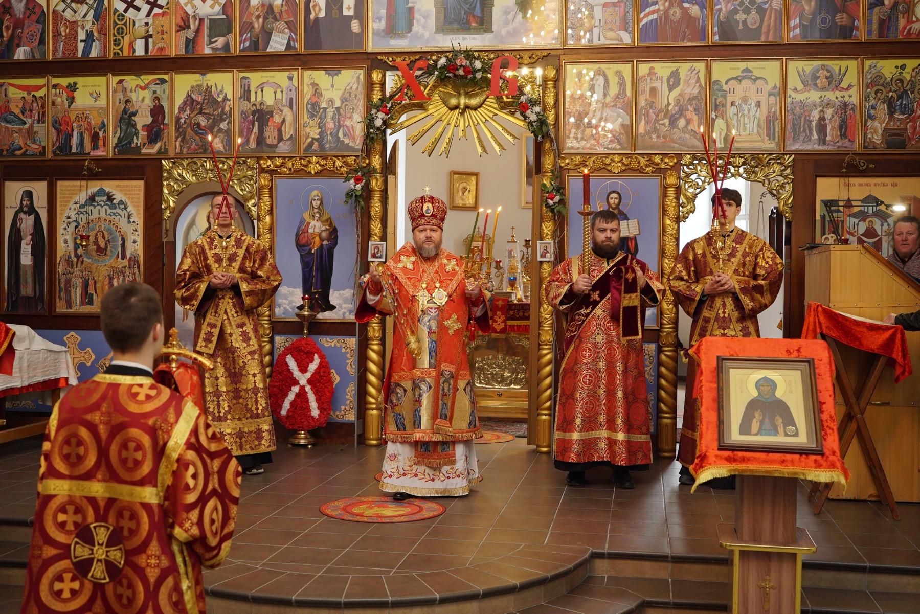 Преосвященному владыке сослужили: настоятель храма иеромонах Макарий (Михалев), иеромонах Никита (Москаленко), иерей Димитрий Щербаков, диакон Никита Гологузов.