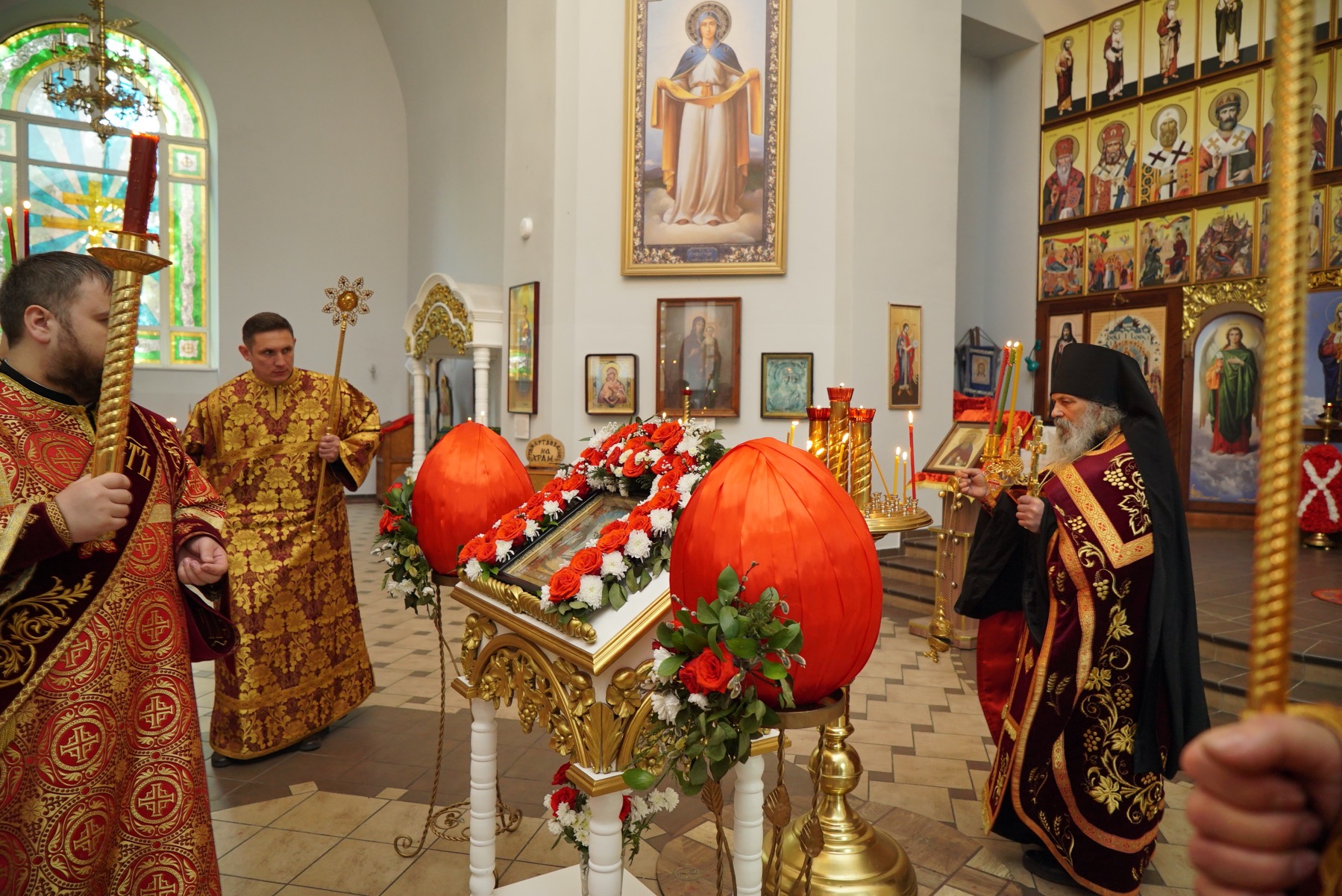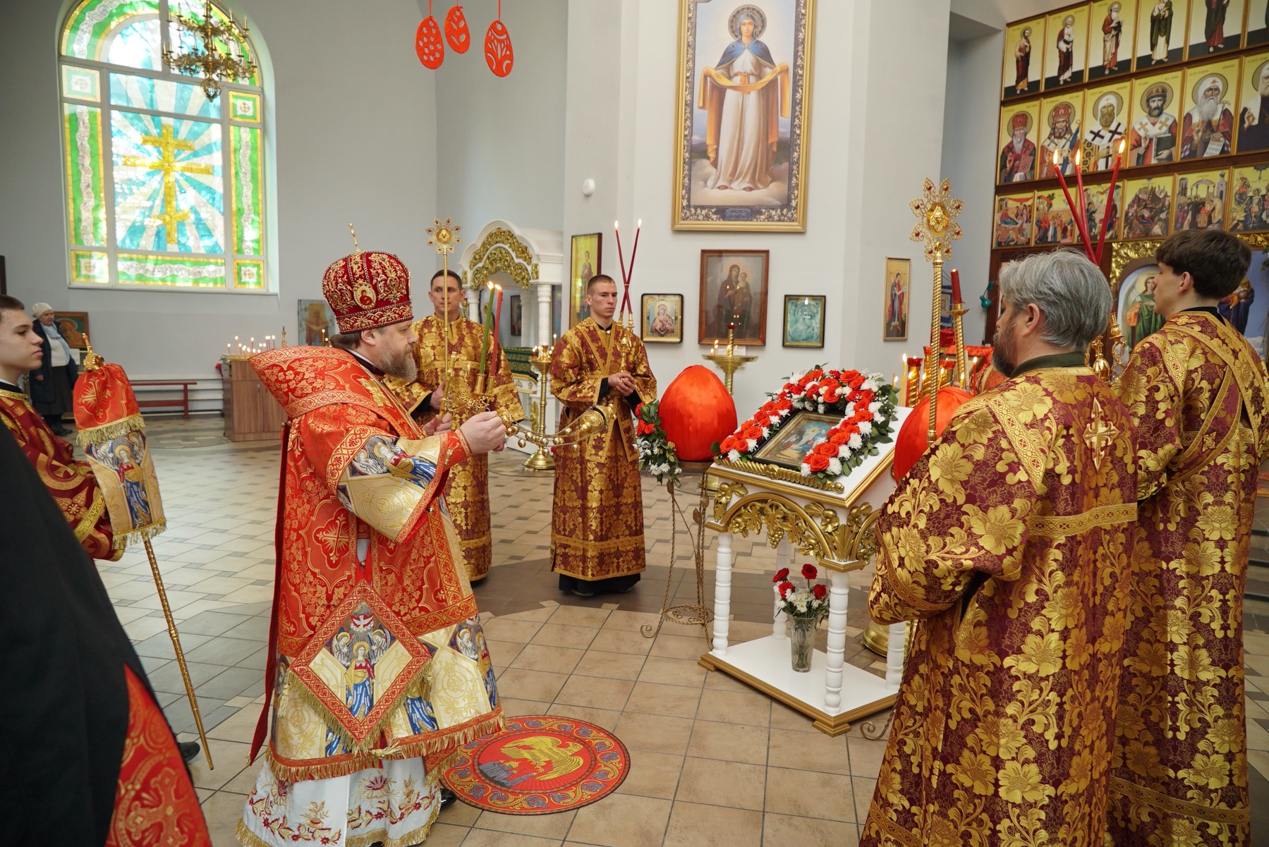 Накануне пятницы Светлой седмицы епископ Серафим совершил вечернее богослужение в храме Покрова Пресвятой Богородицы Свято-Макарьевской монашеской общины города Бийска
