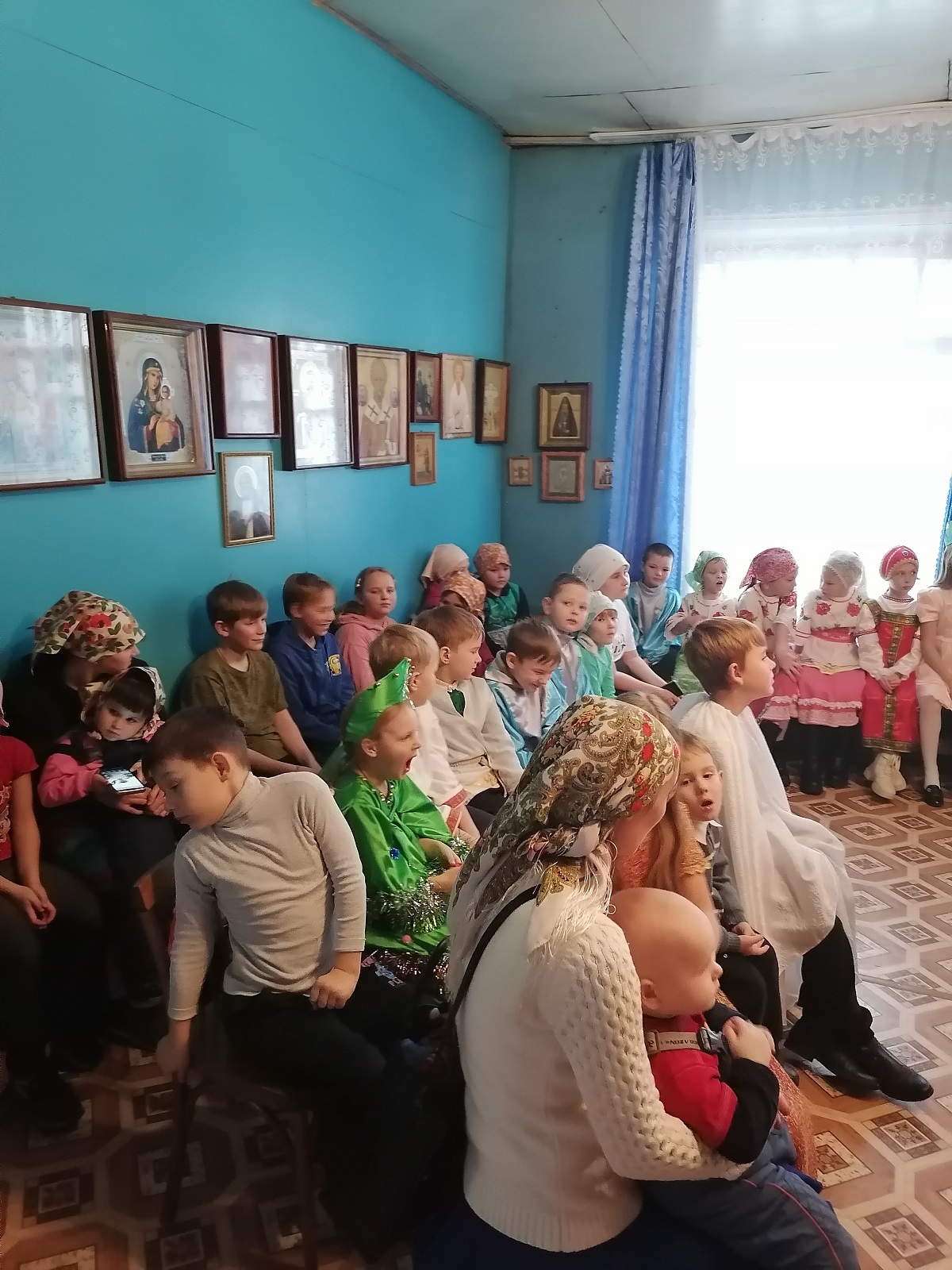 На Рождественском утреннике взрослые и дети с энтузиазмом читали стихи, исполняли Рождественские колядки с разыгранной сценкой, участвовали в играх. Особо порадовала эрудиция даже маленьких ребятишек в проведенной викторине.