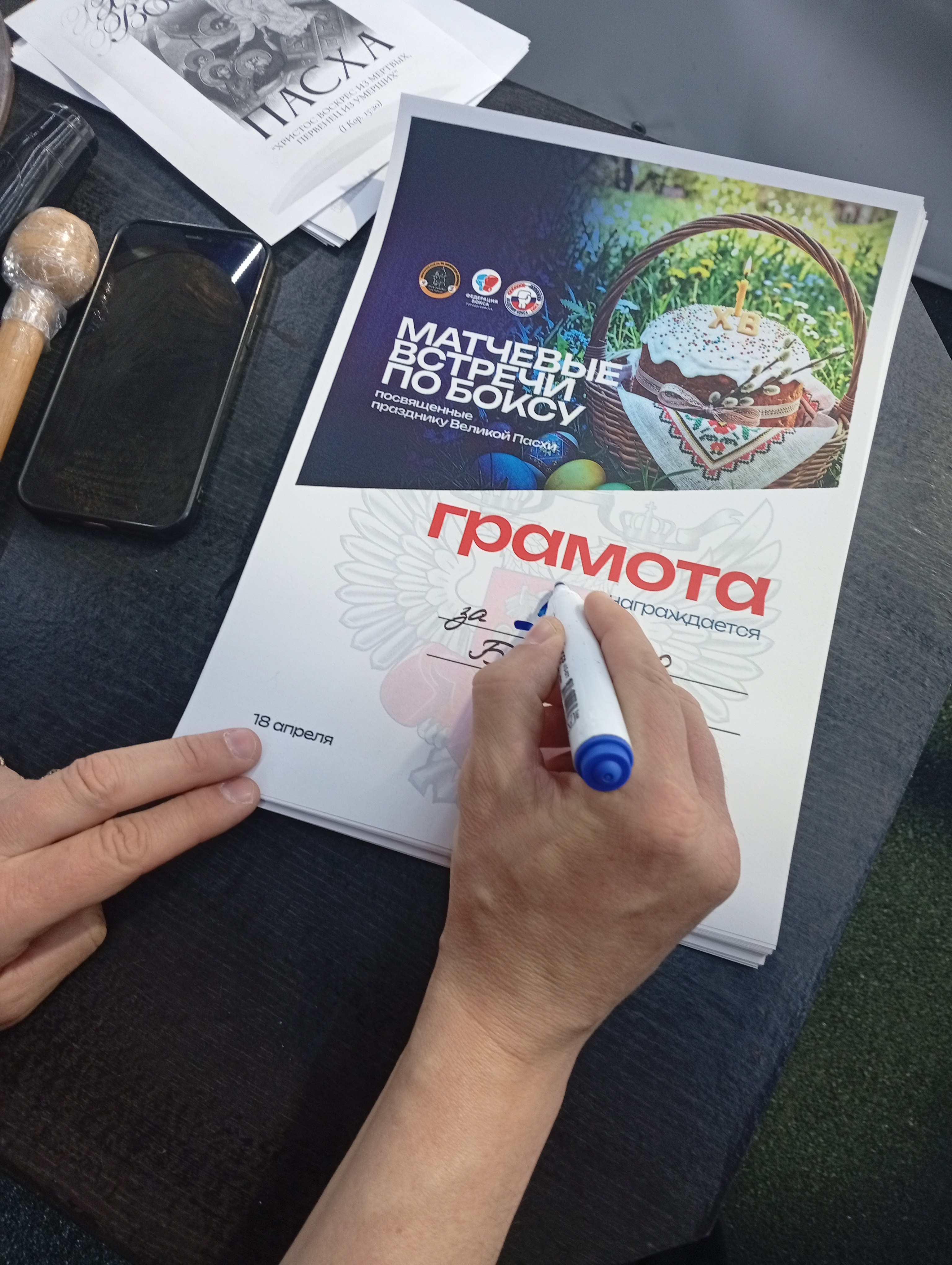 По благословению Преосвященного Серафима, епископа Бийского и Белокурихинского, отец Александр раздал печатные материалы о празднике Пасхи, затем принял участие в награждении.