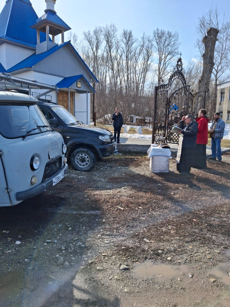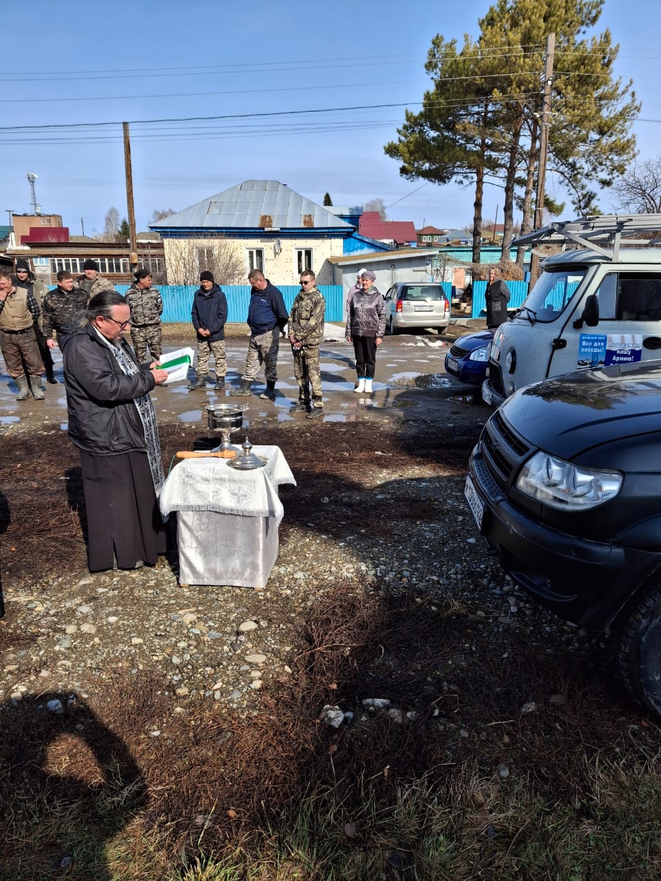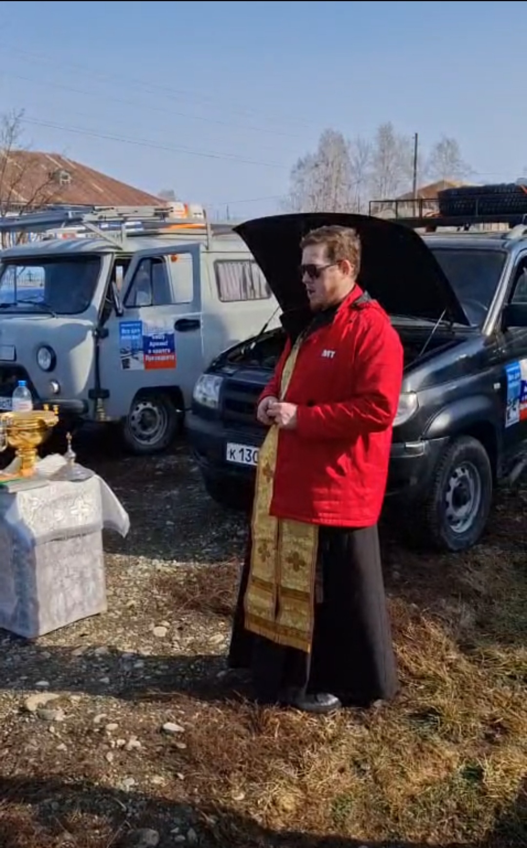 Для благословения колонны в путь и освящения автомобилей были приглашены секретарь Бийской епархии протоиерей Валерий Замятин и настоятель храма святого равноапостольного князя Владимира села Сетовка иерей Симеон Медведев.
