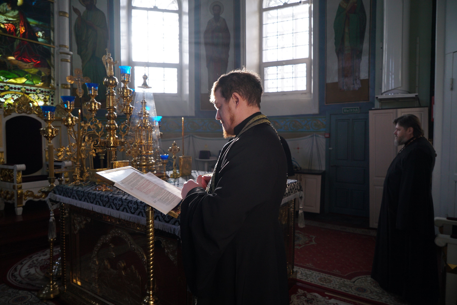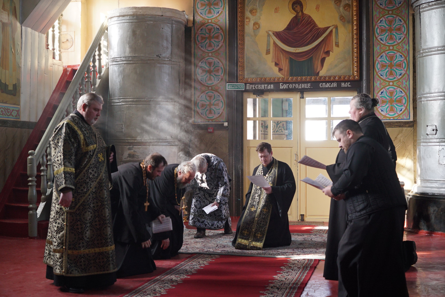 В четверг первой седмицы Великого поста епископ Серафим молился за уставным богослужением в Успенском кафедральном соборе