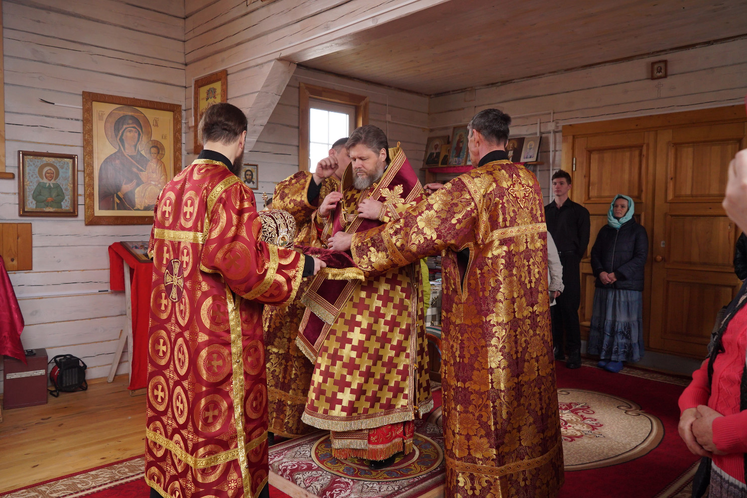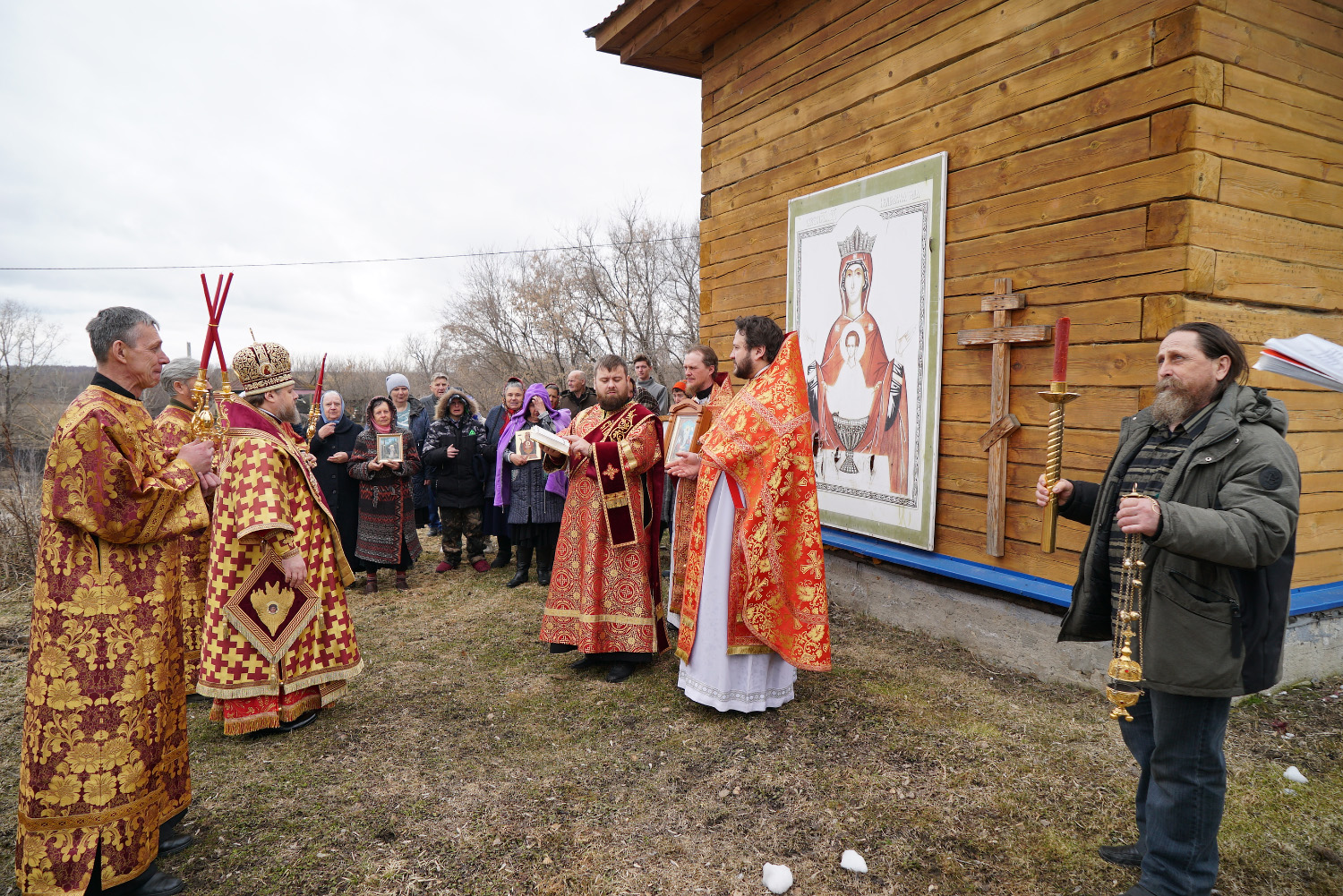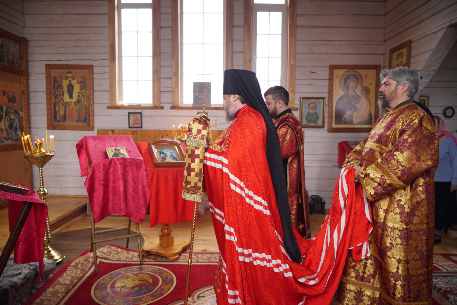 В четверг Светлой седмицы епископ Серафим совершил Божественную литургию в храме икон Божией Матери «Умягчение злых сердец» и «Неупиваемая Чаша» села Ненинка