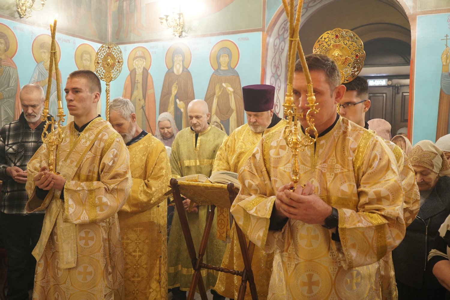На сугубой ектении были произнесены особые прошения: «…о еже прияти молитвы нас недостойных рабов Твоих в сию годину испытания, пришедшую на Русь Святую…». Затем правящий архиерей вознес молитву о Святой Руси.