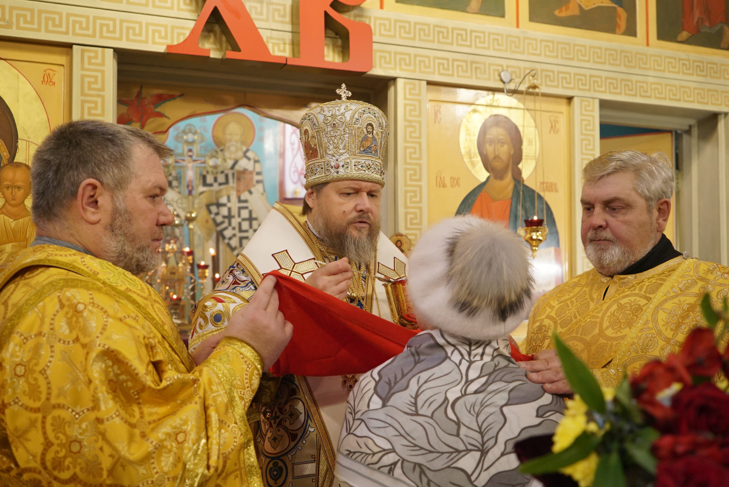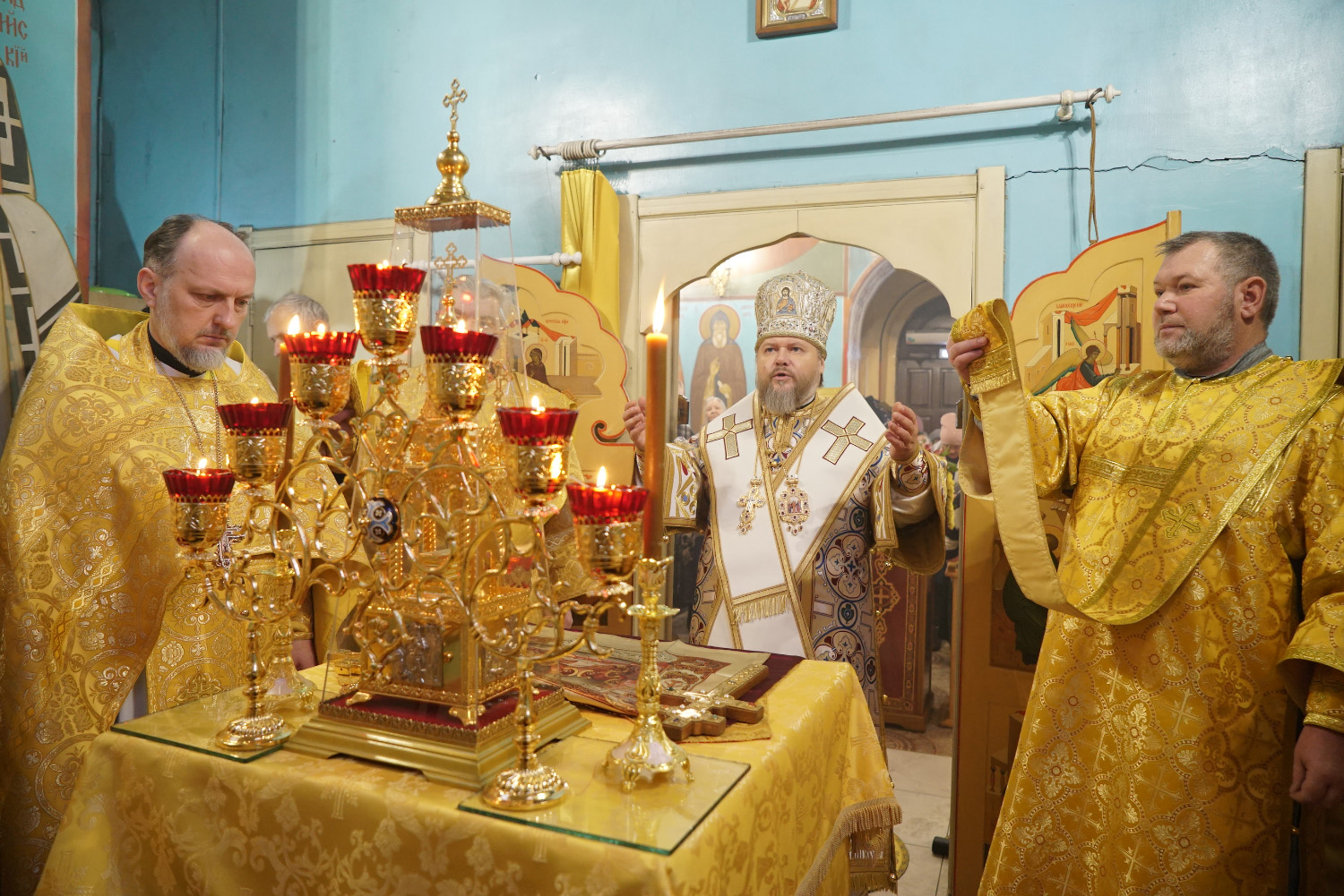 Преосвященному владыке сослужили: ключарь храма протоиерей Александр Петров, иерей Георгий Степанищев, иерей Дионисий Юдин, диакон Вадим Шпак, диакон Андрей Поповичев.