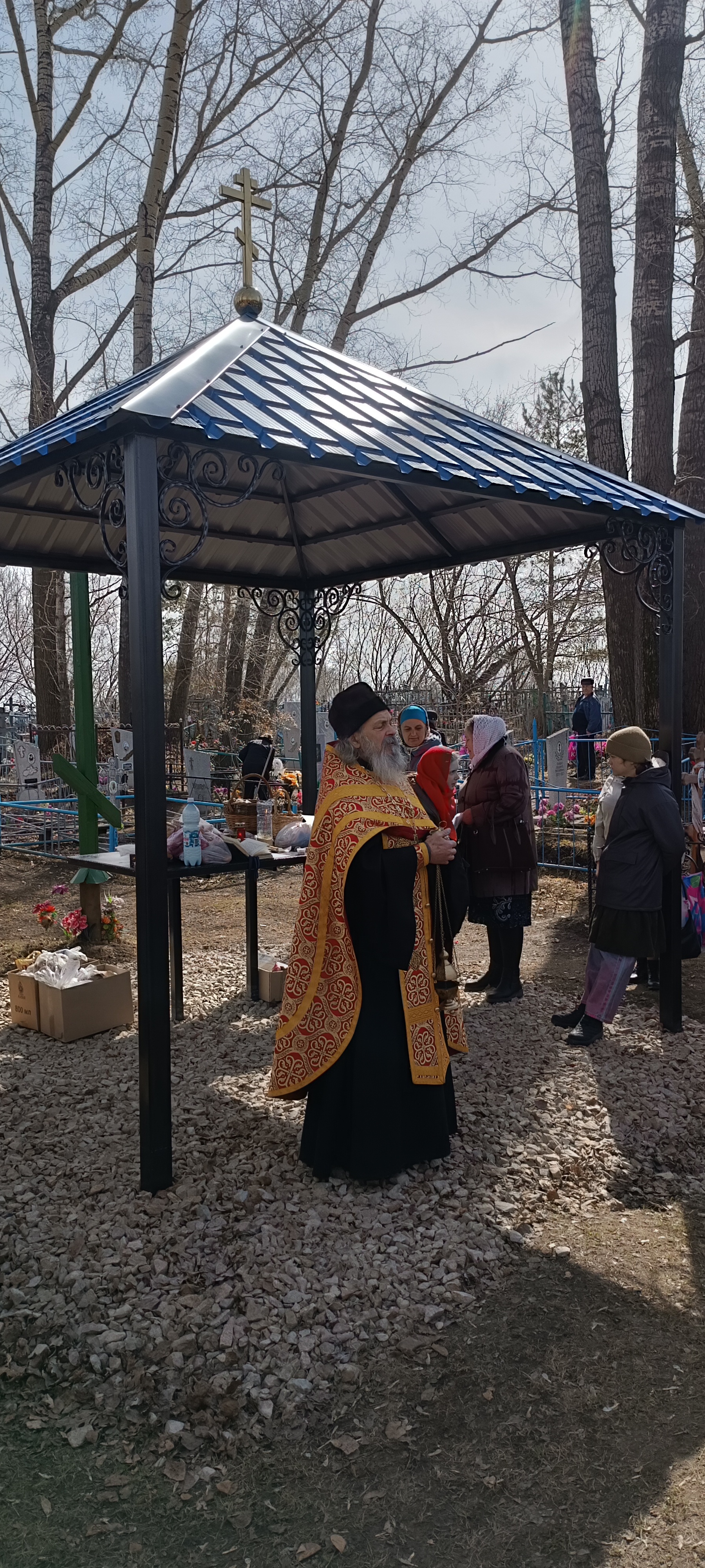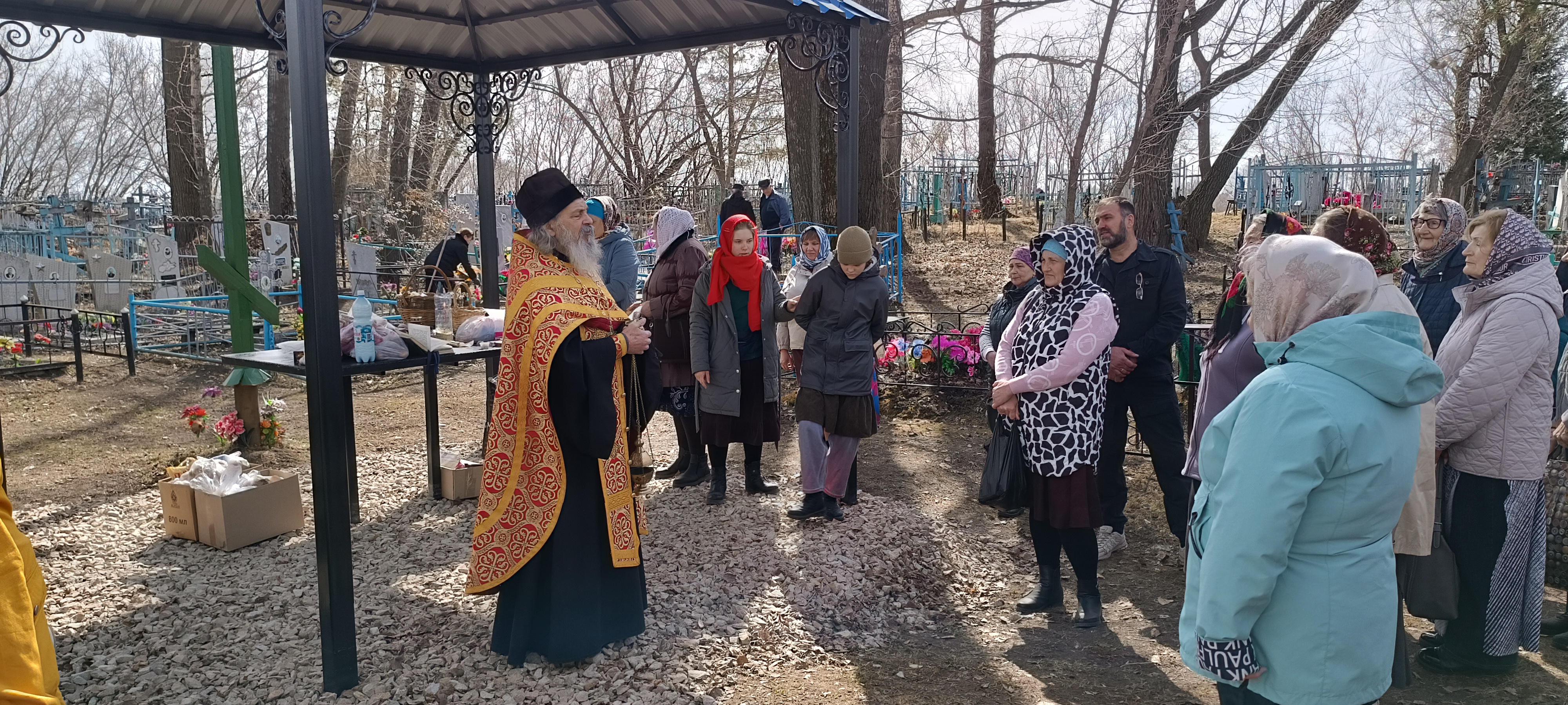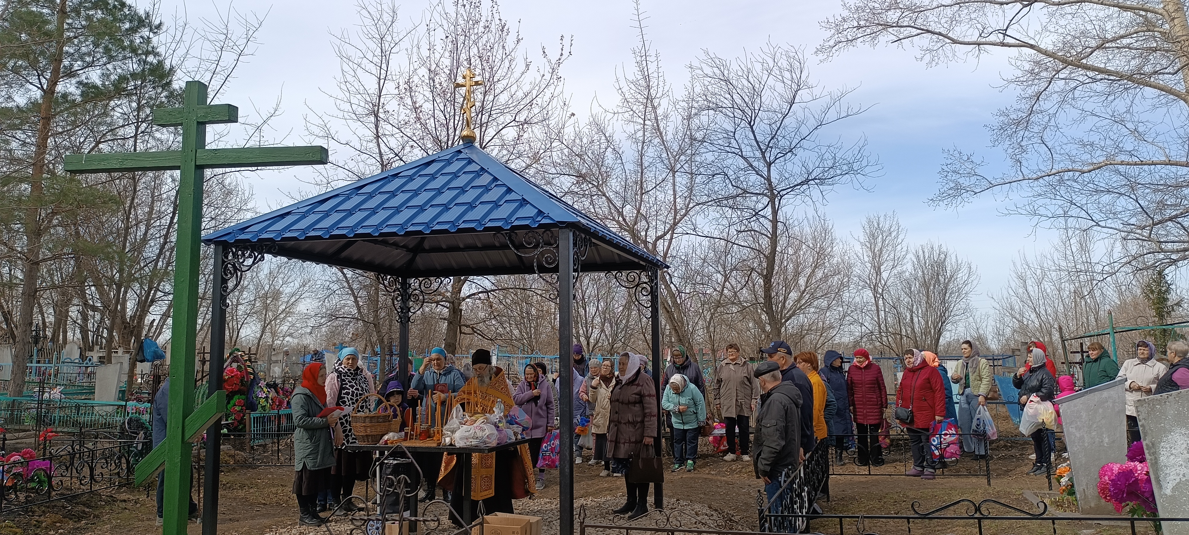 По сложившейся традиции, в этот день на кладбище собираются не только односельчане, но и многие городские жители, родственники которых похоронены на этом кладбище, спешат на совместную молитву – панихиду, которую много лет у кладбищенского поклонного креста служит отец Макарий.