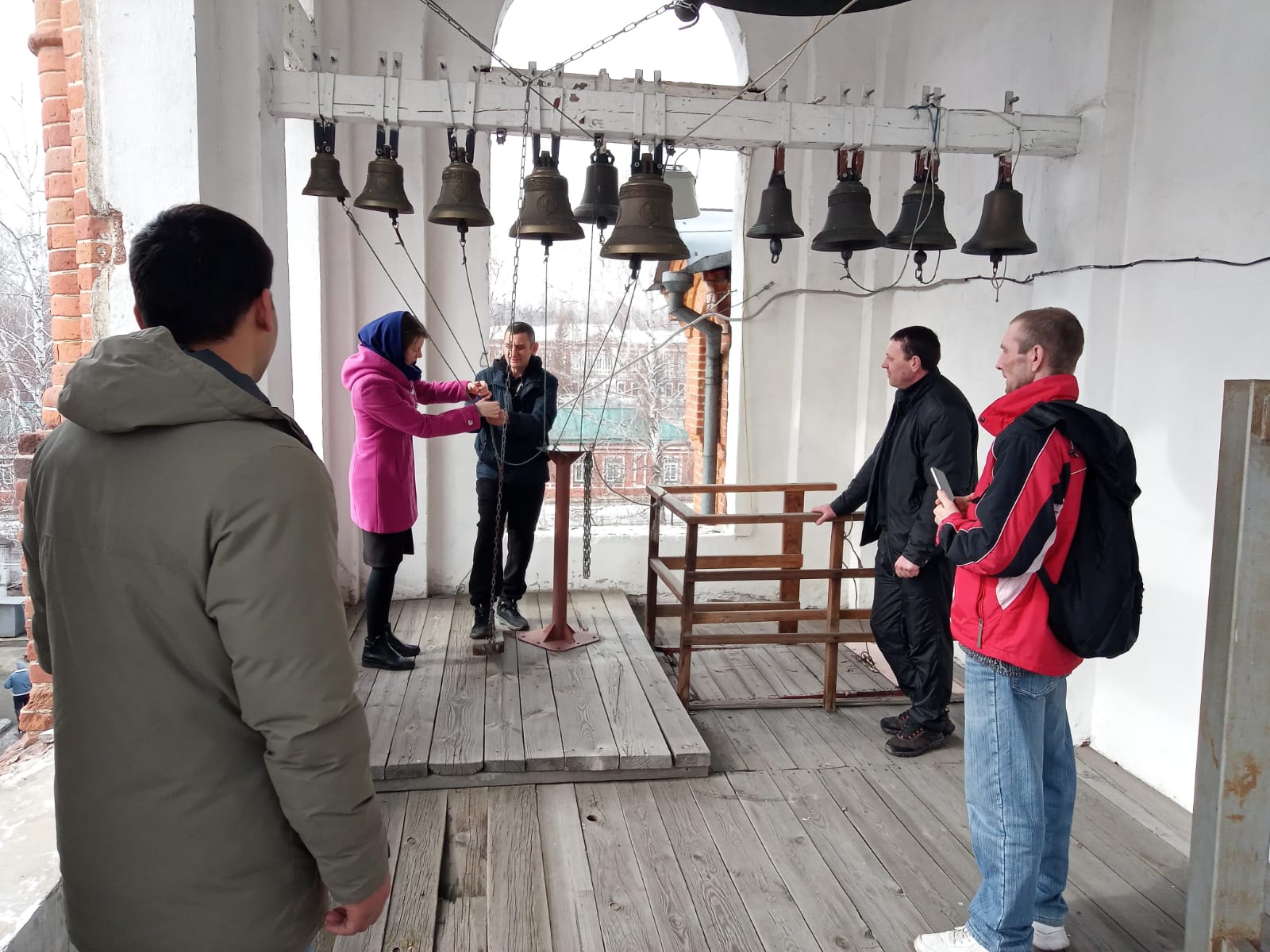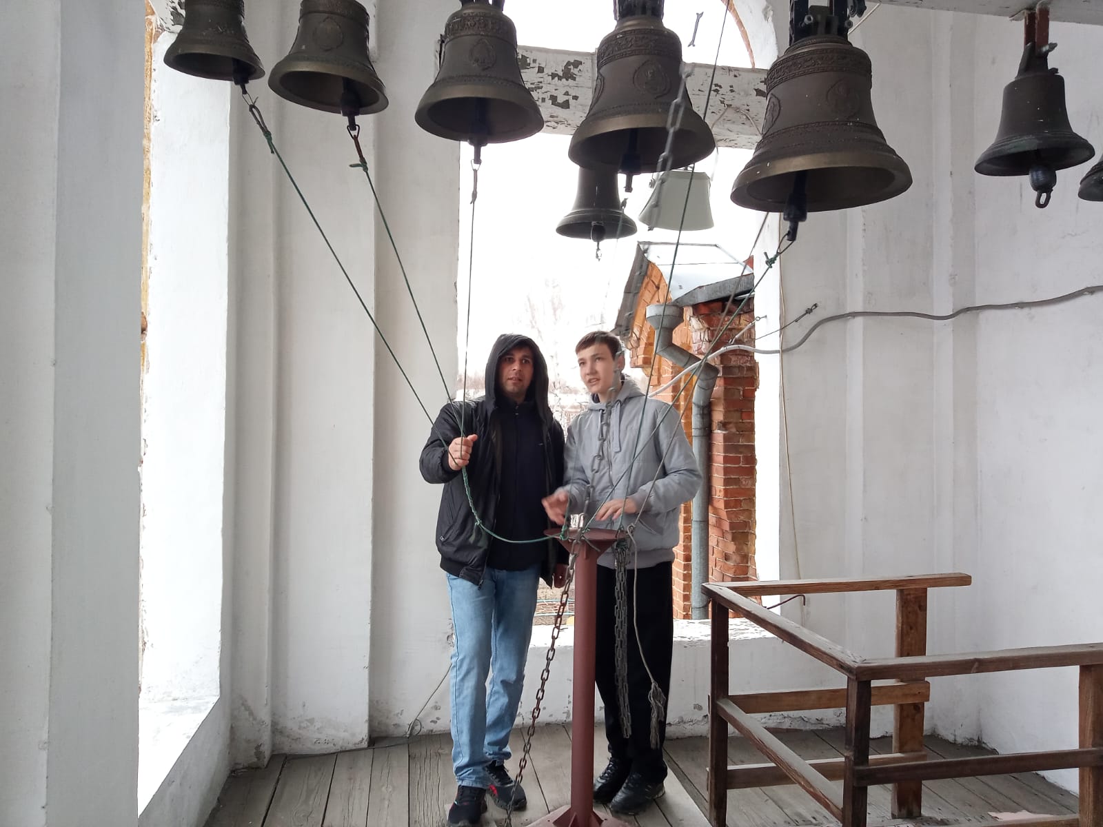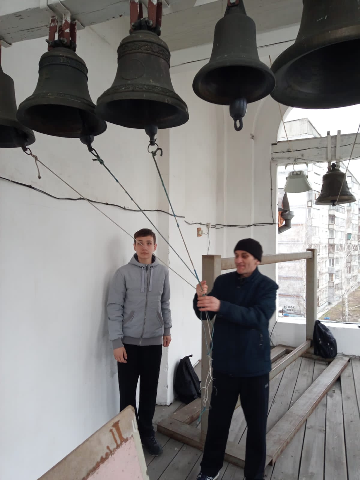 При содействии воспитанника воскресной школы храма, выпускника школы звонарей Павла Камбалина, участники занятий смогли отработать практические навыки профессии звонаря.