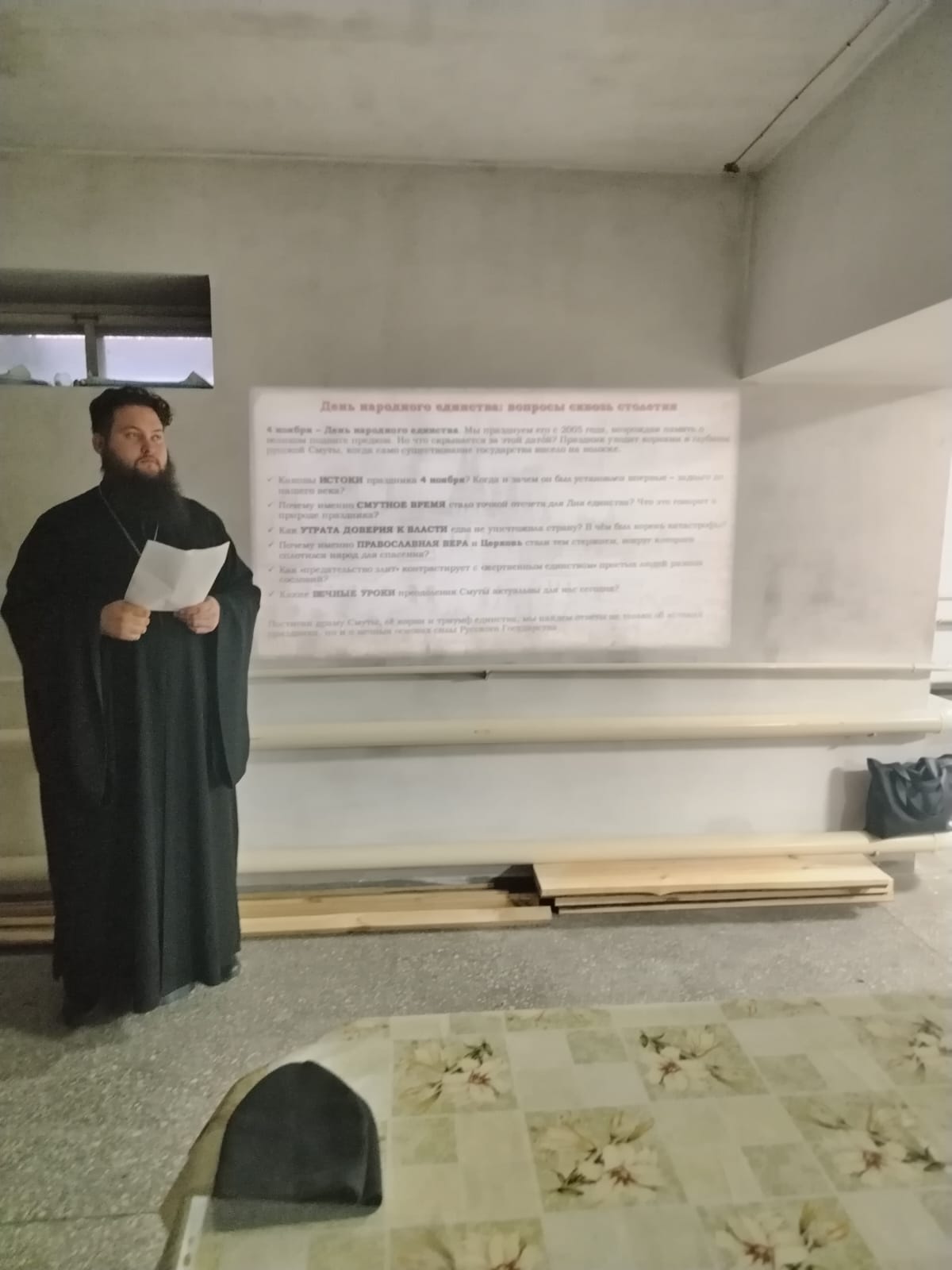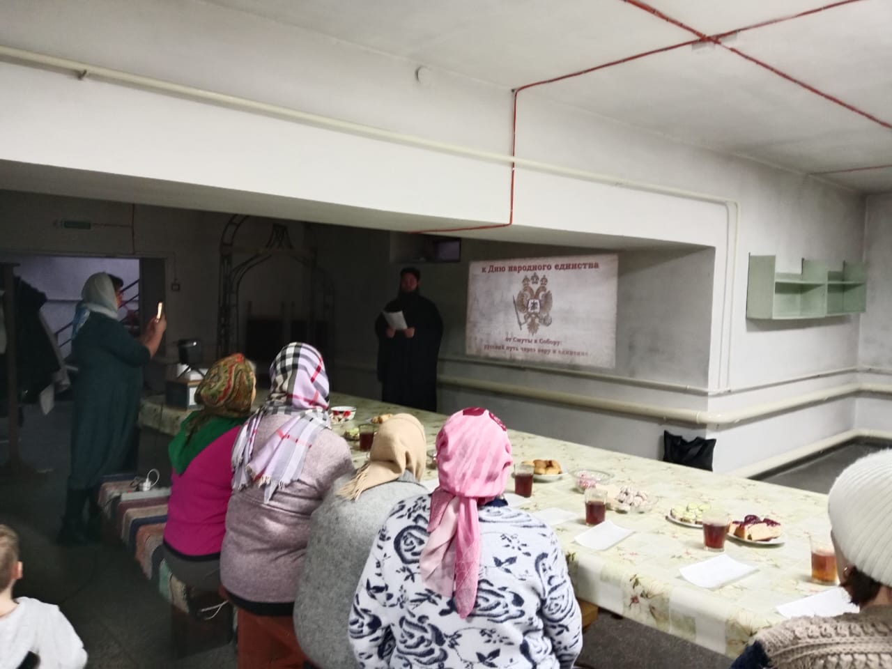 Батюшка показал презентацию о Дне народного единства и провел беседу. Затем состоялось общее чаепитие.