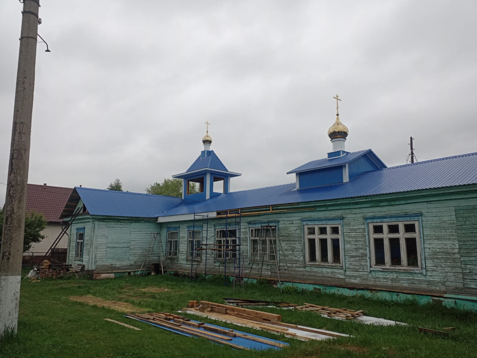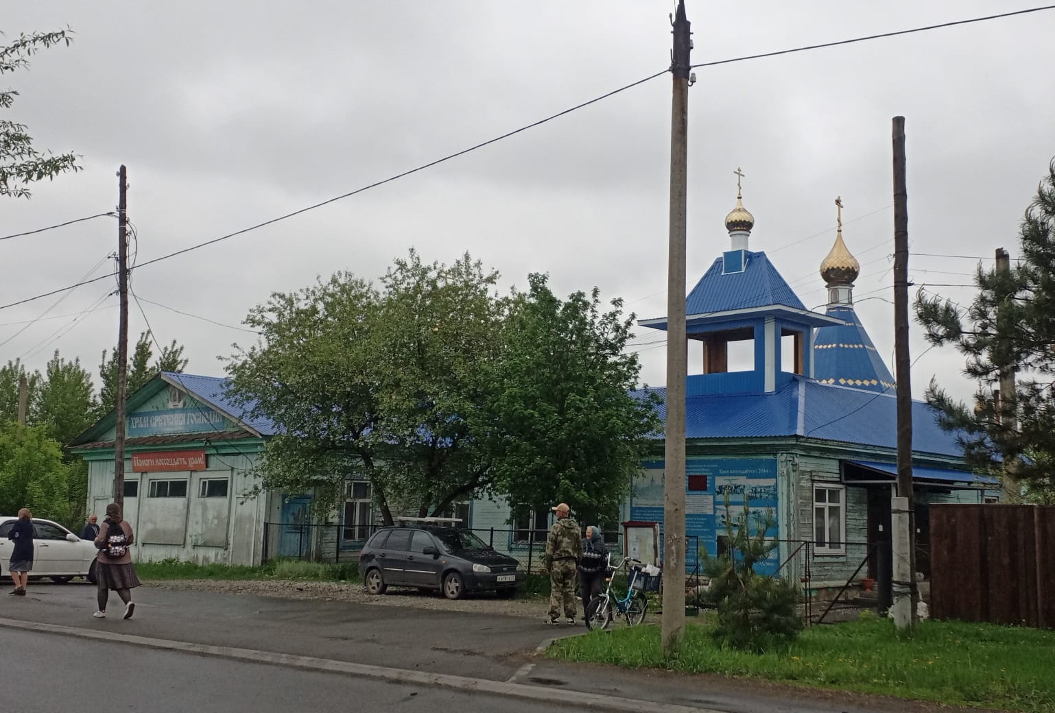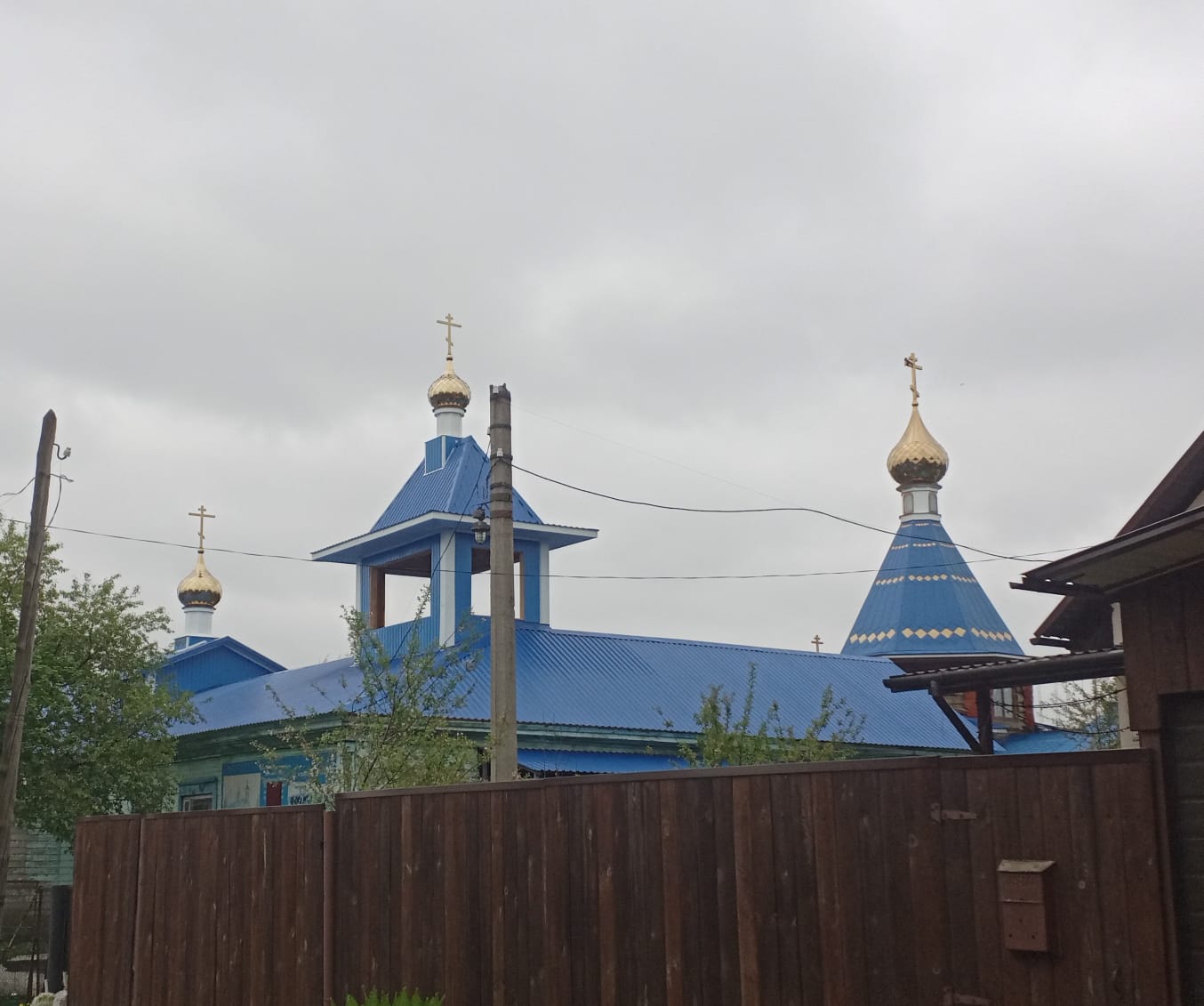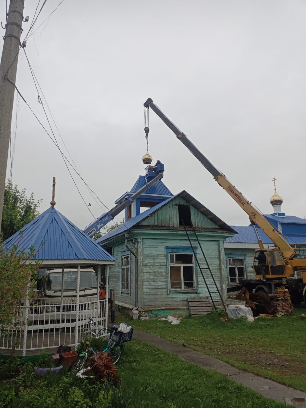 14 мая на крыше храма Сретения Господня города Бийска установили купола с накупольными крестами.
