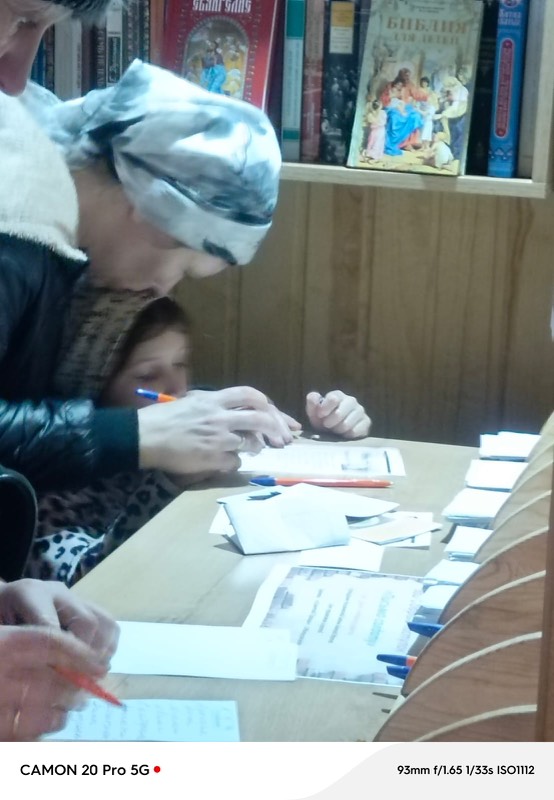 Письма, написанные прихожанами храма, будут переданы с посылками в район боевых действий.