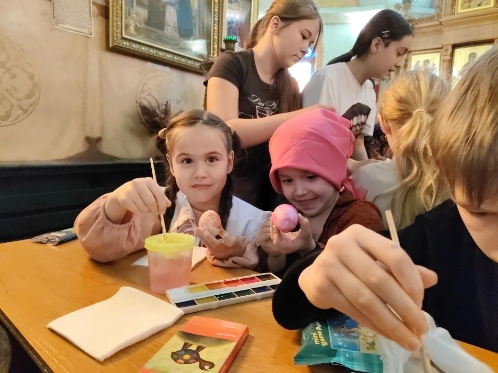 Все вместе славили Воскресение Христово, расписывали пасхальные яйца, играли в праздничные игры и звонили в колокола. Всем детям были вручены пасхальные подарки.