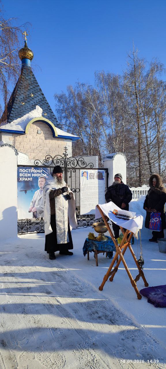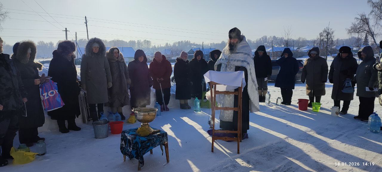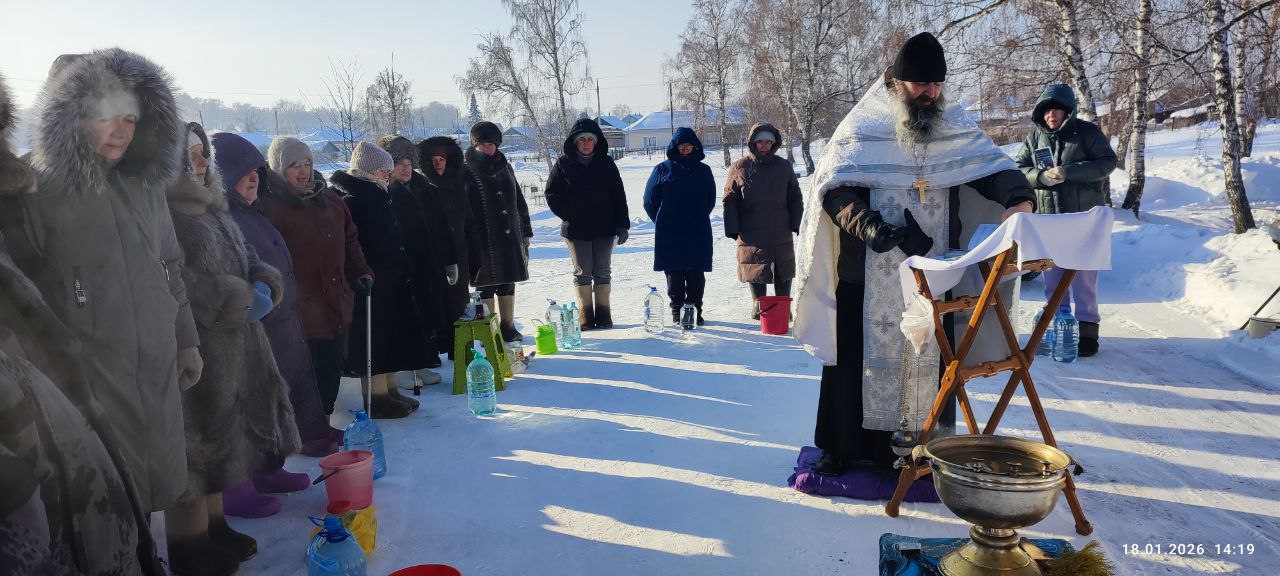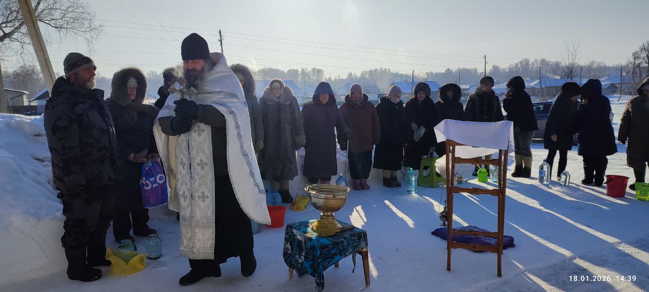 В Крещенский сочельник настоятель храма Архангела Михаила поселка Верх-Обский совершил великое освящение воды