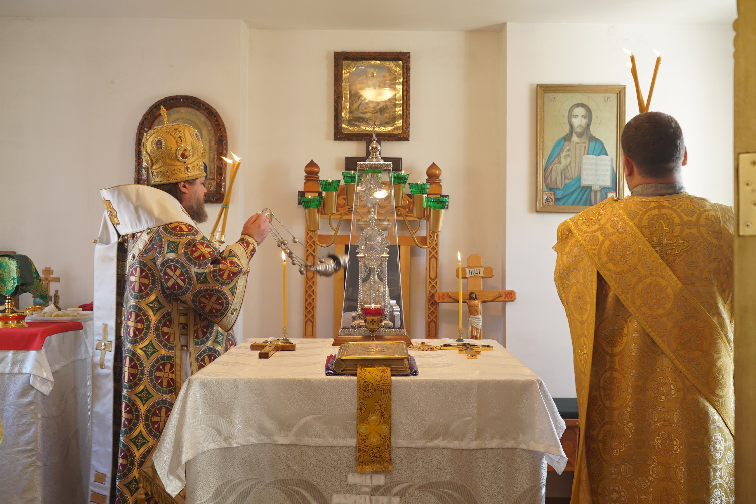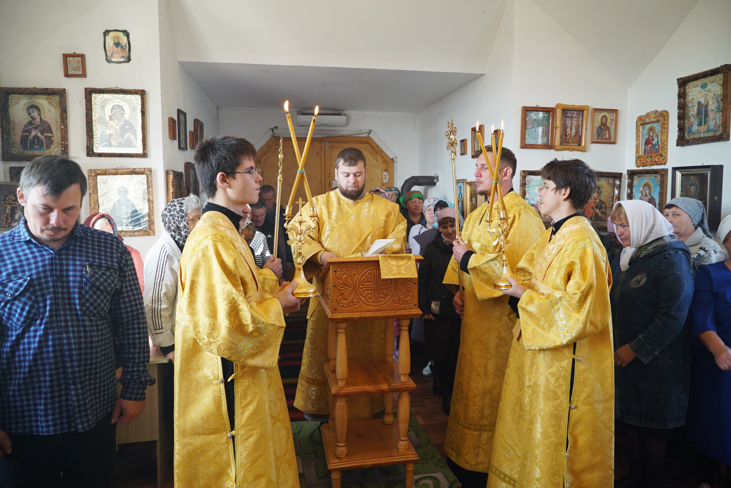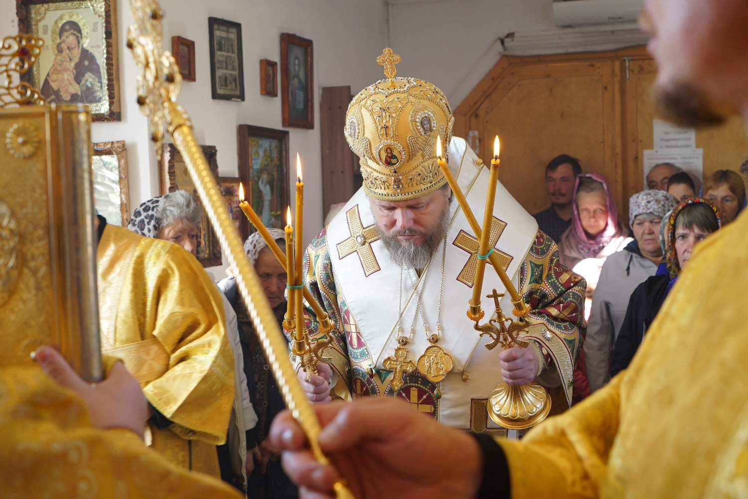 На сугубой ектении были произнесены особые прошения: «…о еже прияти молитвы нас недостойных рабов Твоих в сию годину испытания, пришедшую на Русь Святую…». Затем правящий архиерей вознес молитву о Святой Руси.