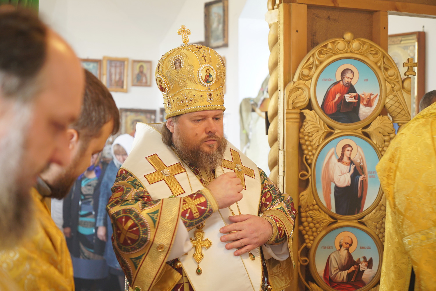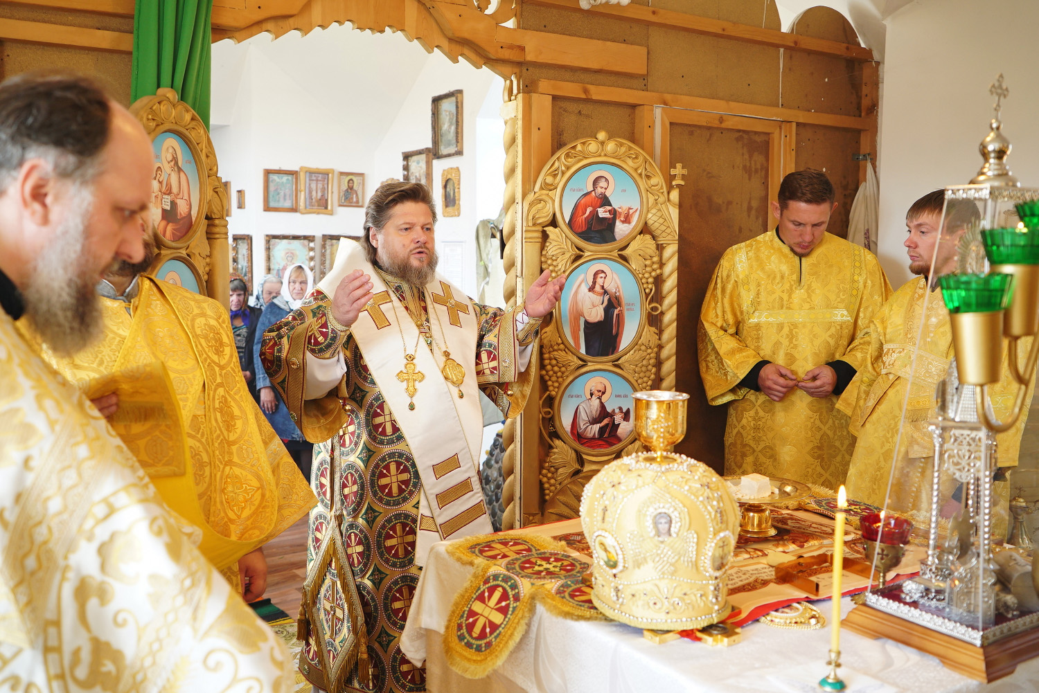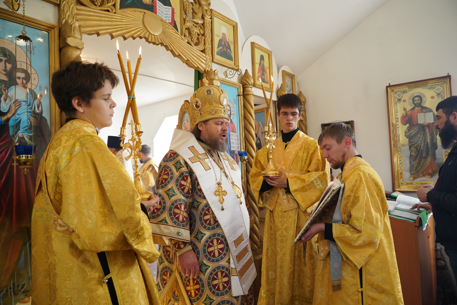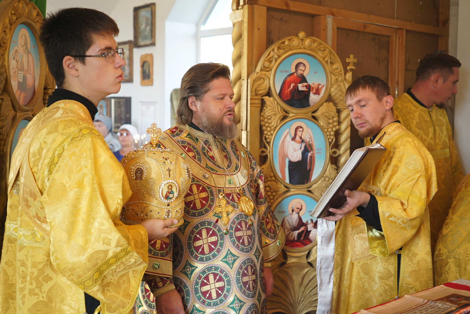 Преосвященному владыке сослужили: ключарь Успенского кафедрального собора протоиерей Александр Петров, настоятель храма иерей Сергий Юречко, диакон Никита Гологузов.