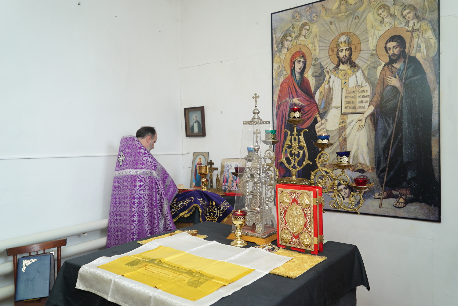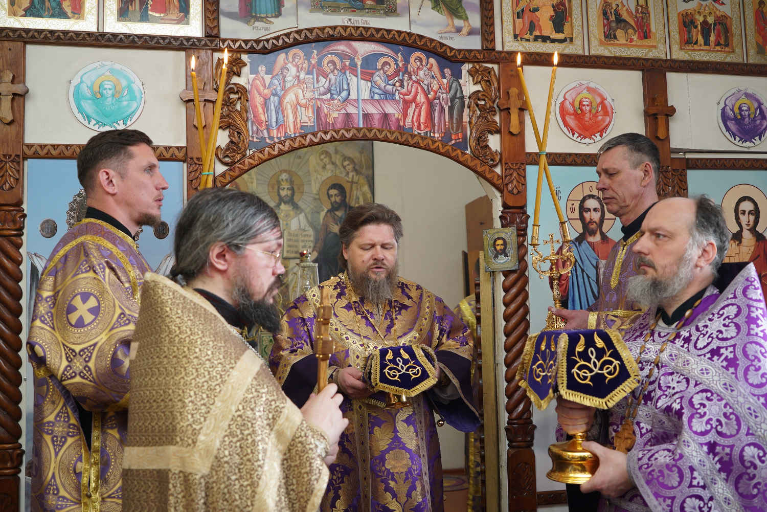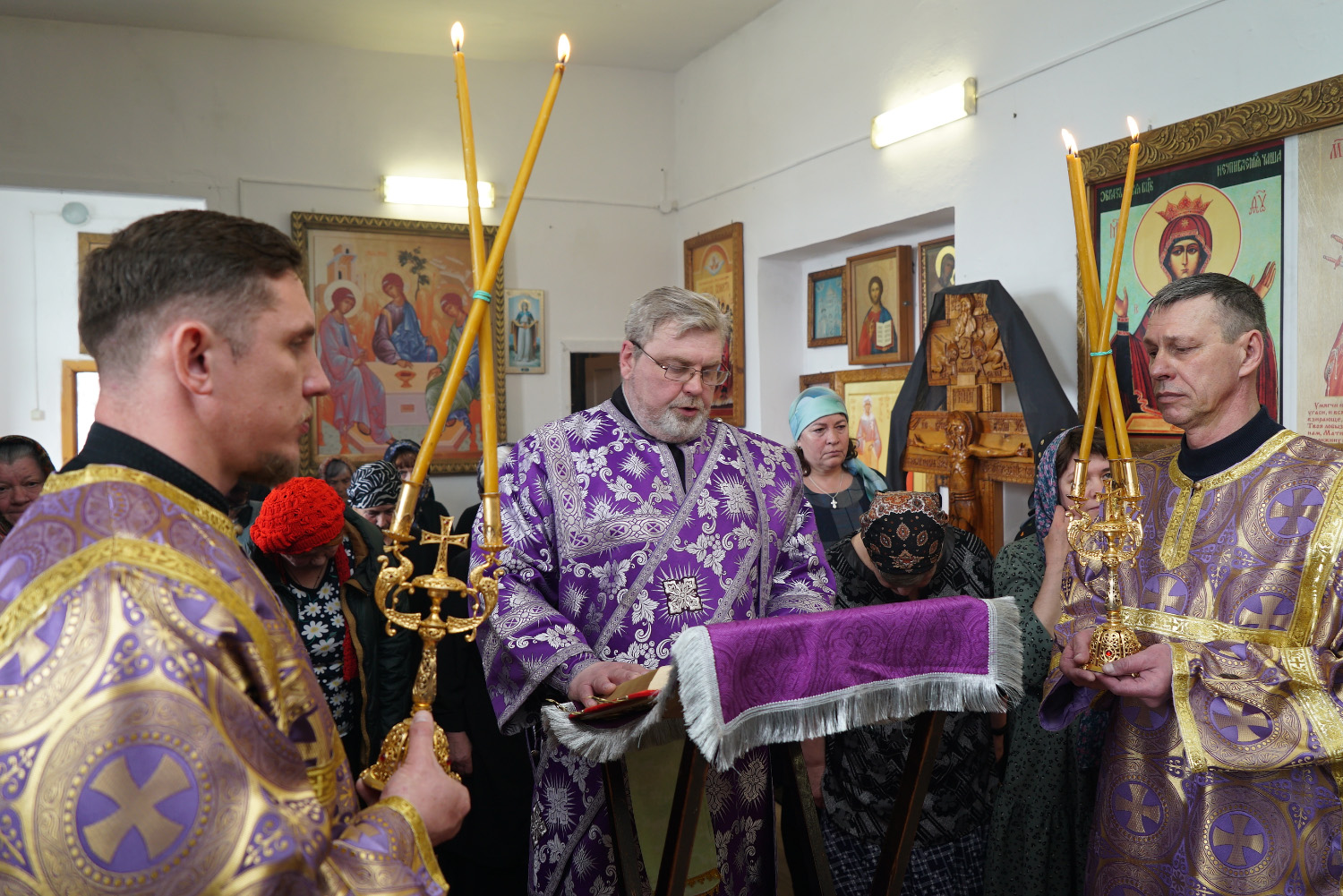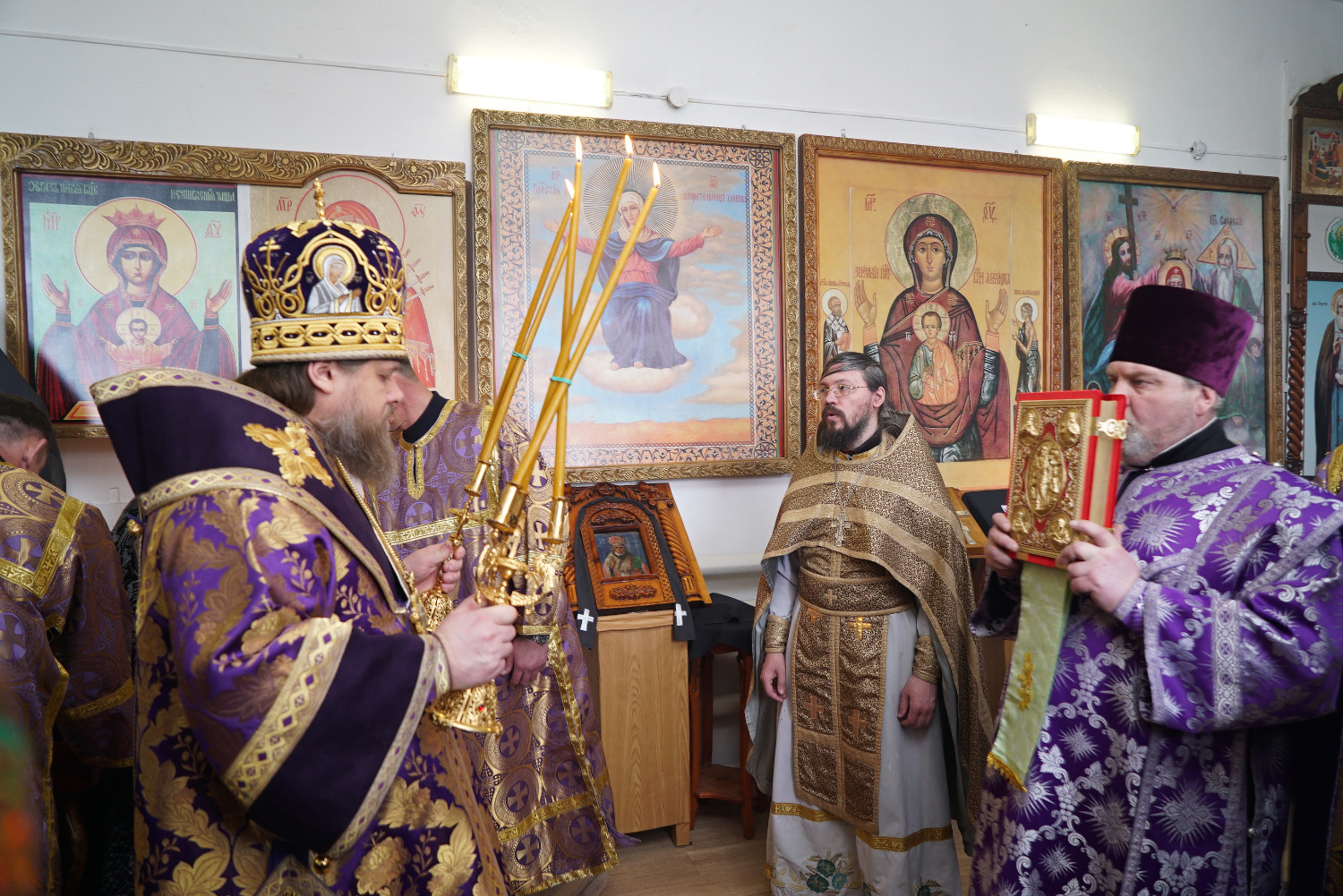 На сугубой ектении были произнесены особые прошения: «…о еже прияти молитвы нас недостойных рабов Твоих в сию годину испытания, пришедшую на Русь Святую…». Затем правящий архиерей вознес молитву о Святой Руси.