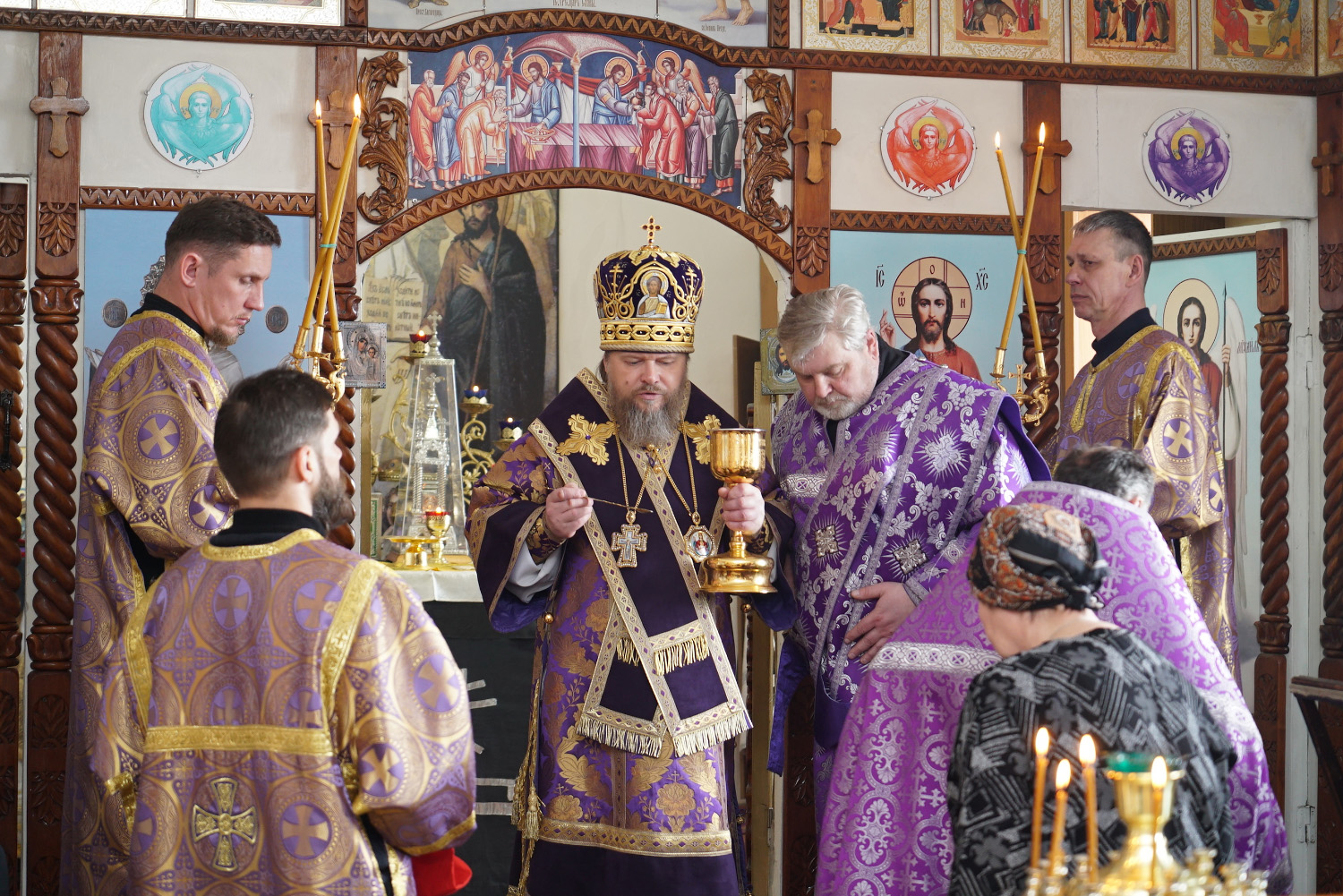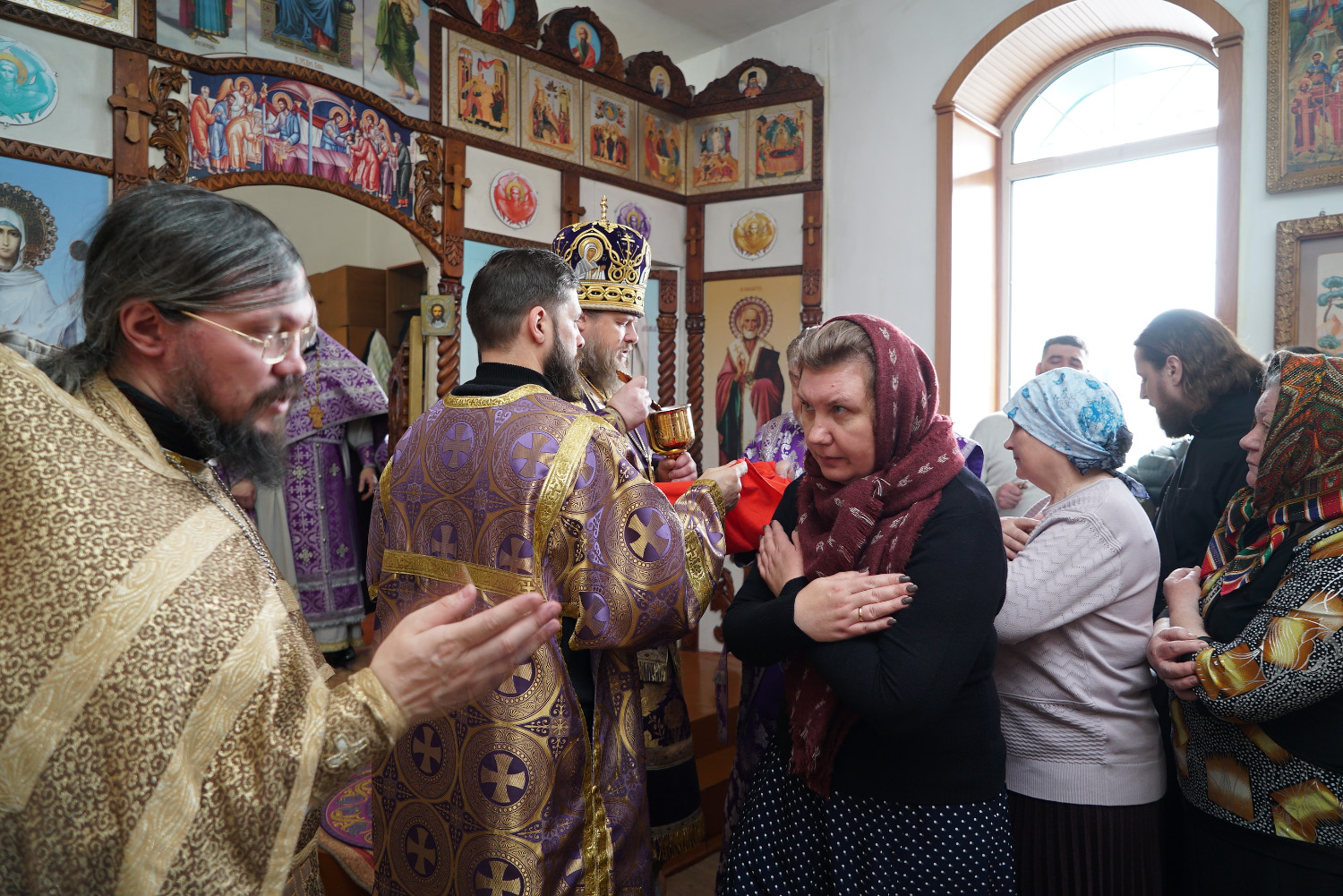 На литургии владыка Серафим причастил верующих Святых Христовых Таин. .