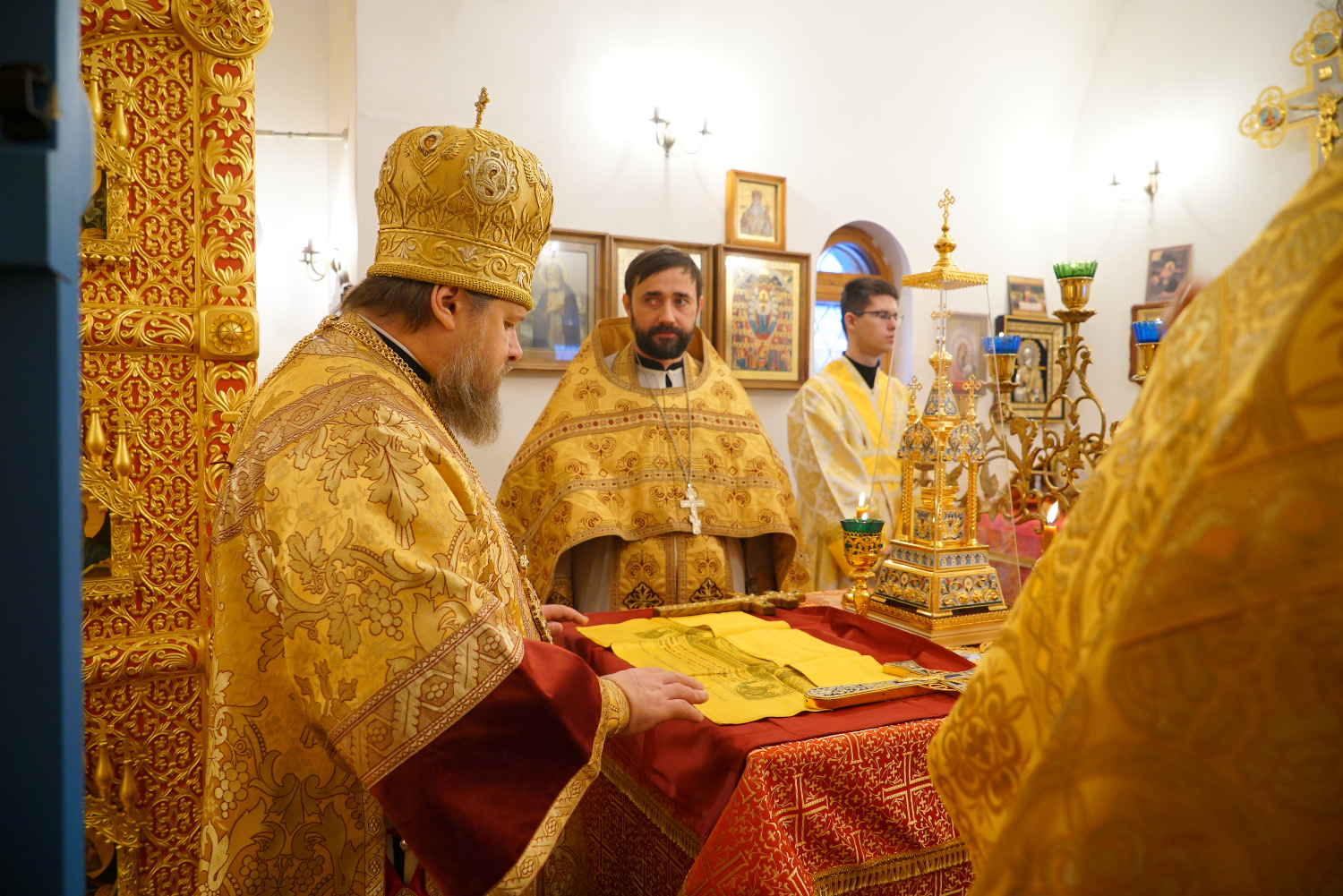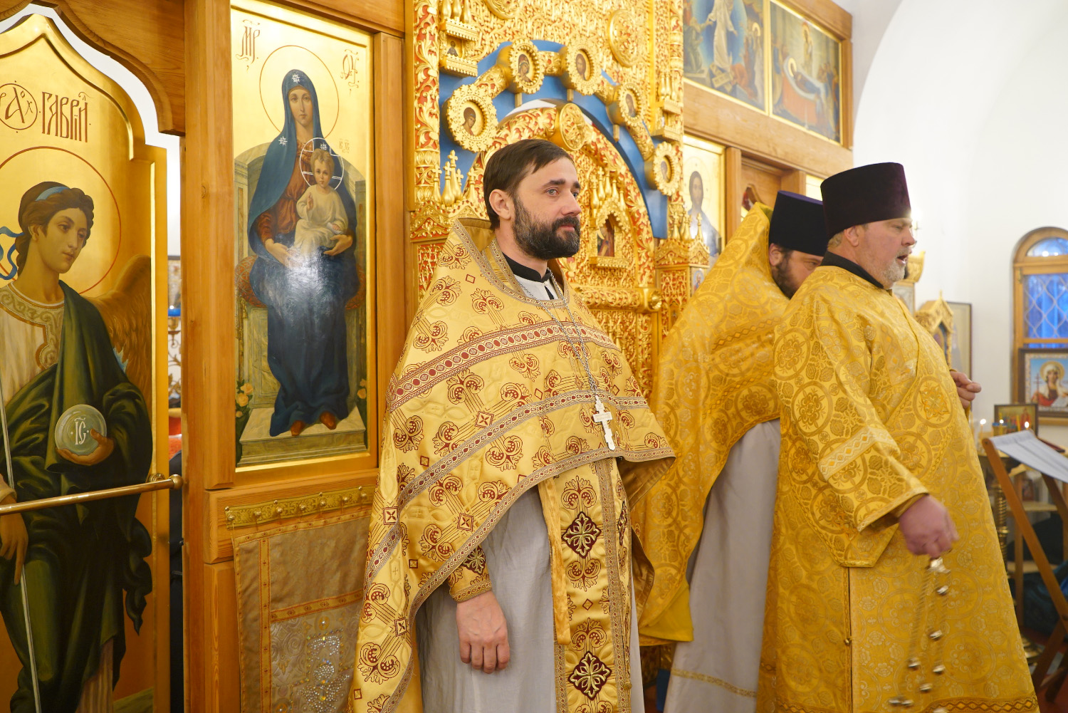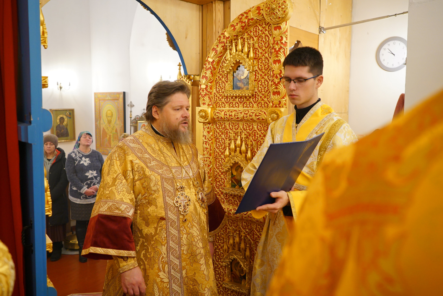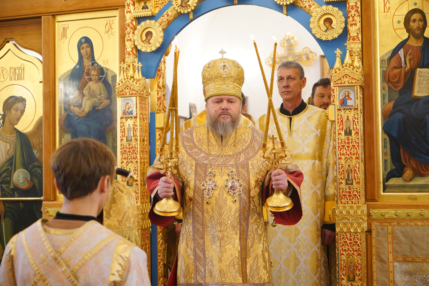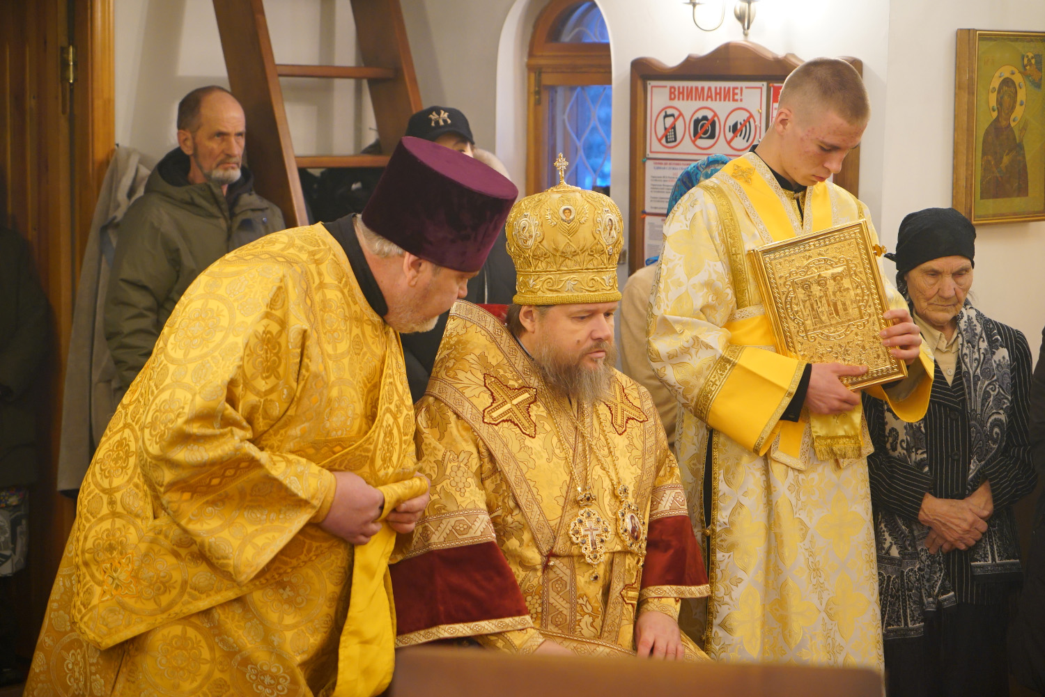 Его Преосвященству сослужили: настоятель храма иерей Герман Ходаковский, иерей Димитрий Щербаков, иерей Иоанн Ходаковский (Новосибирская митрополия), диакон Вадим Шпак.