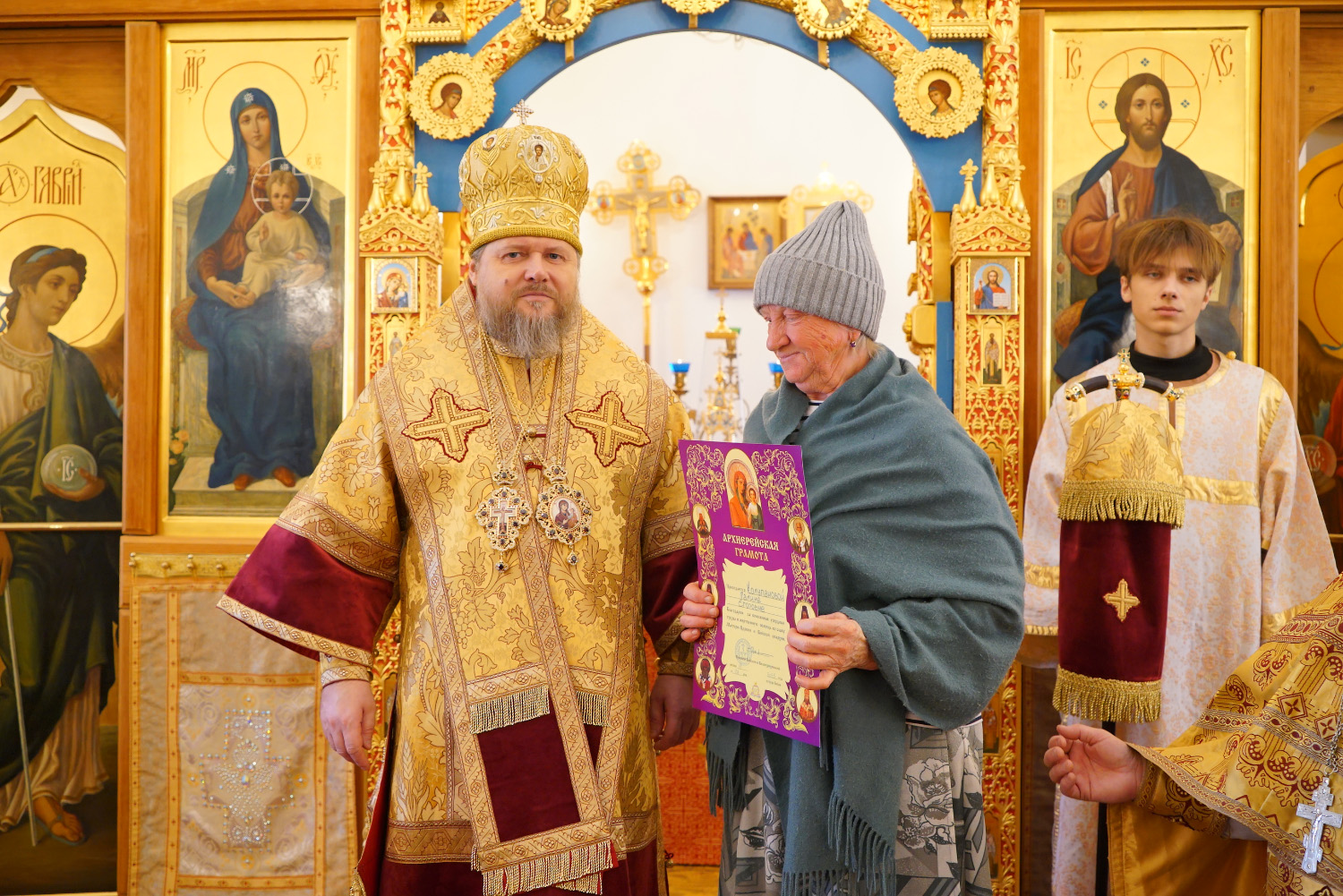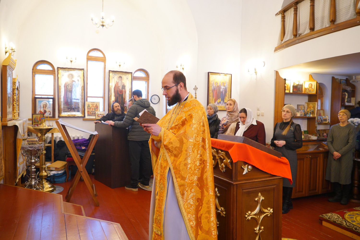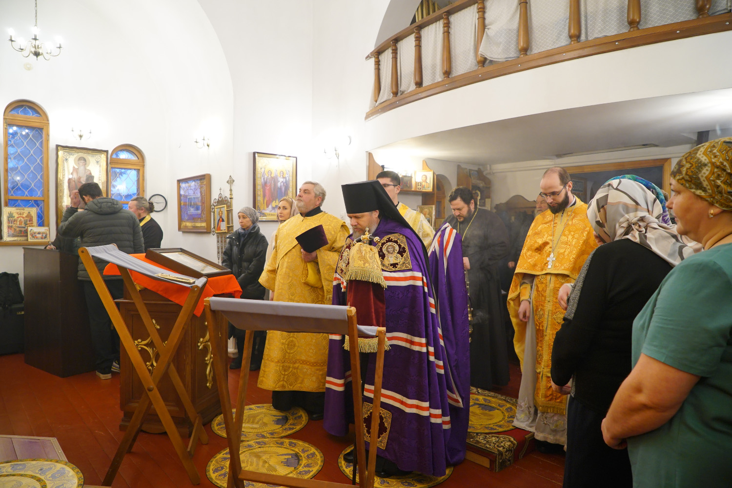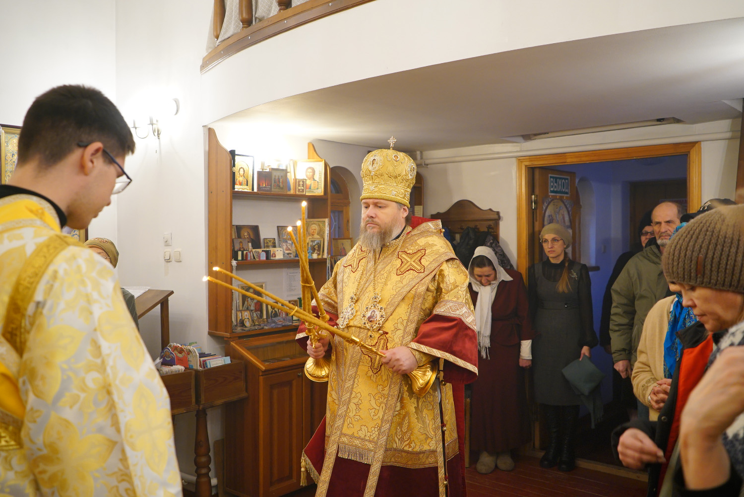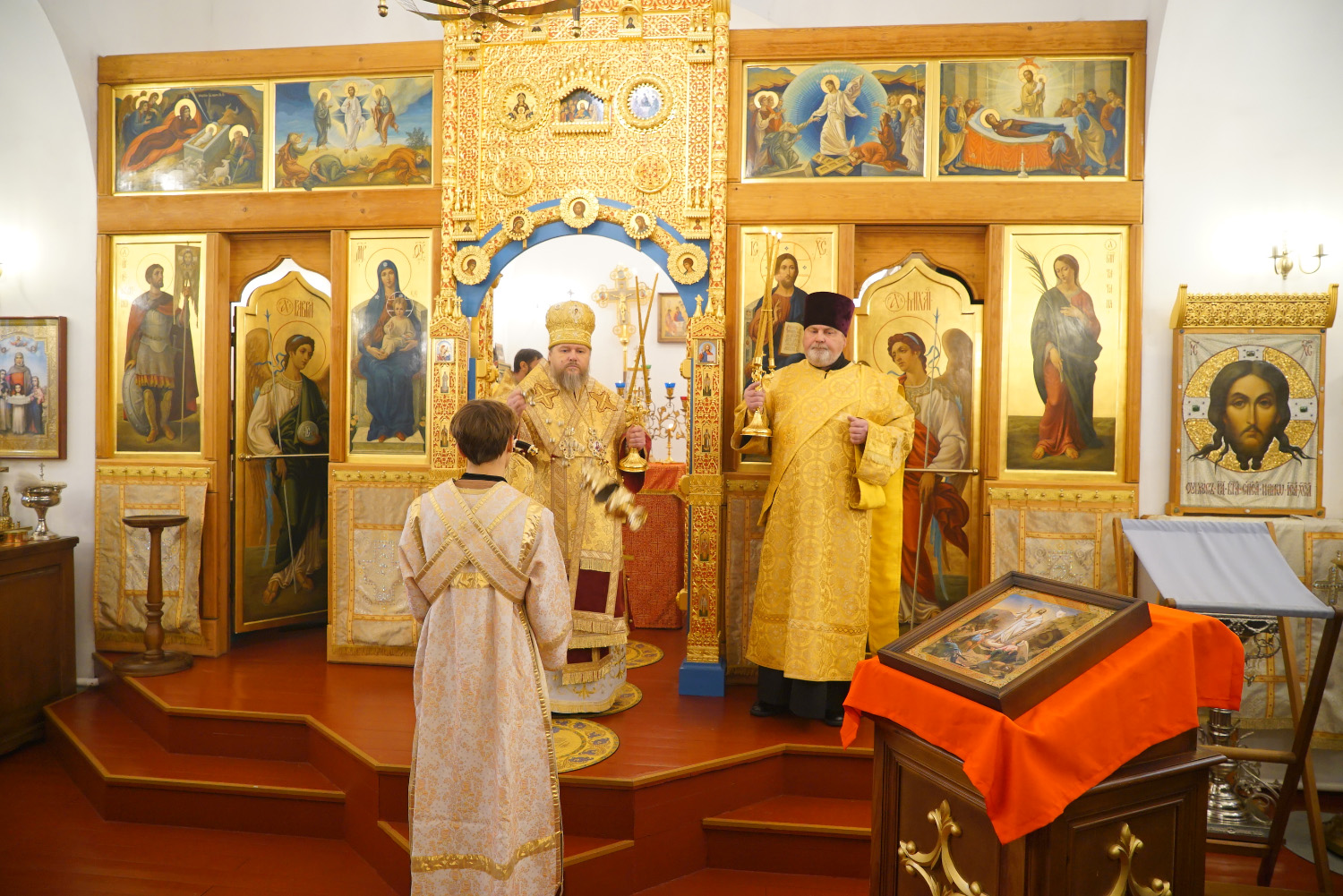Его Преосвященству сослужили: настоятель храма иерей Герман Ходаковский, иерей Димитрий Щербаков, иерей Иоанн Ходаковский (Новосибирская митрополия), диакон Вадим Шпак.