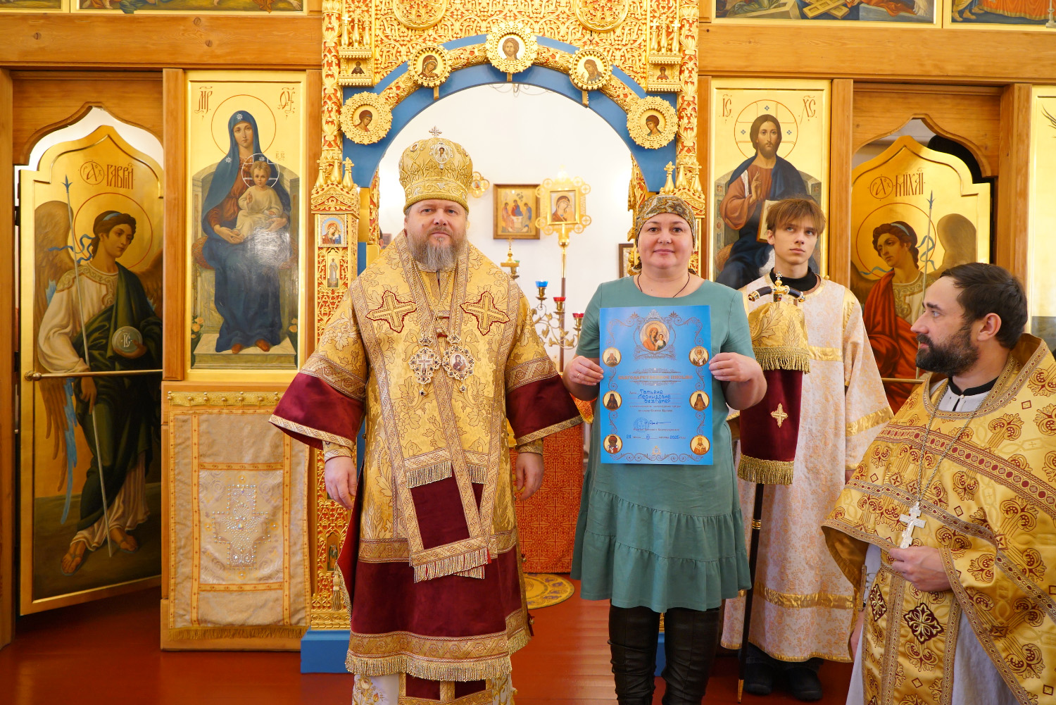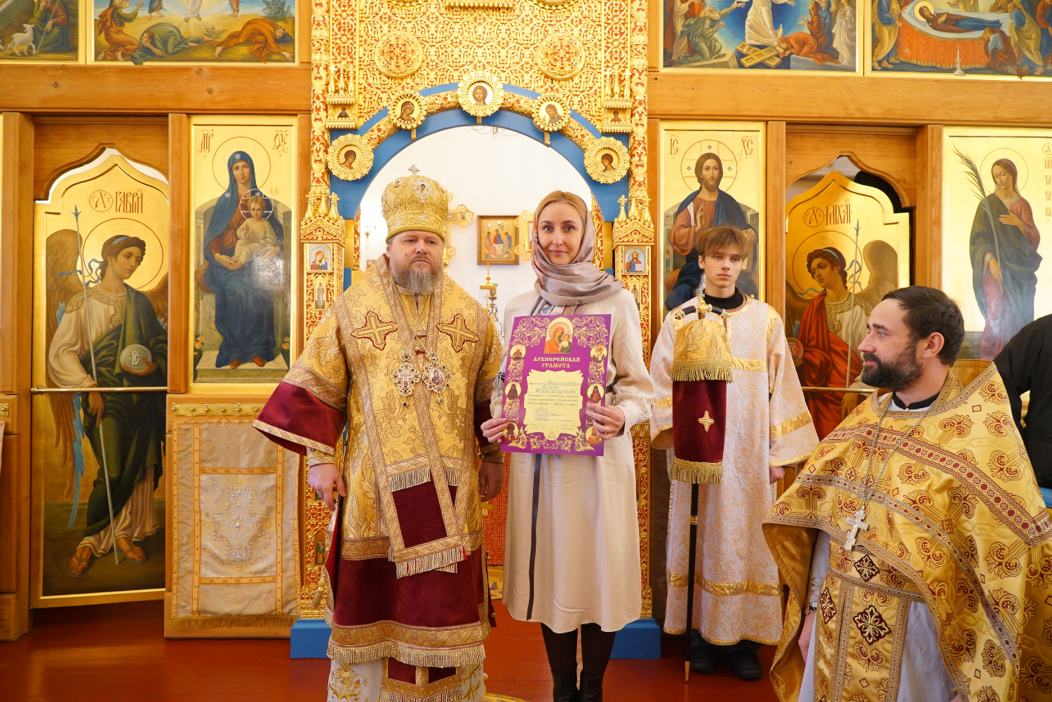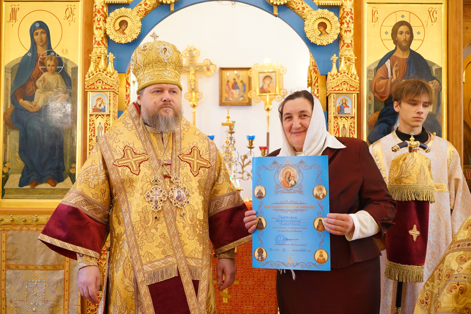 Затем состоялось награждение Архиерейскими грамотами и Благодарственными письмами настоятеля и активных прихожан храма святой мученицы Татианы.