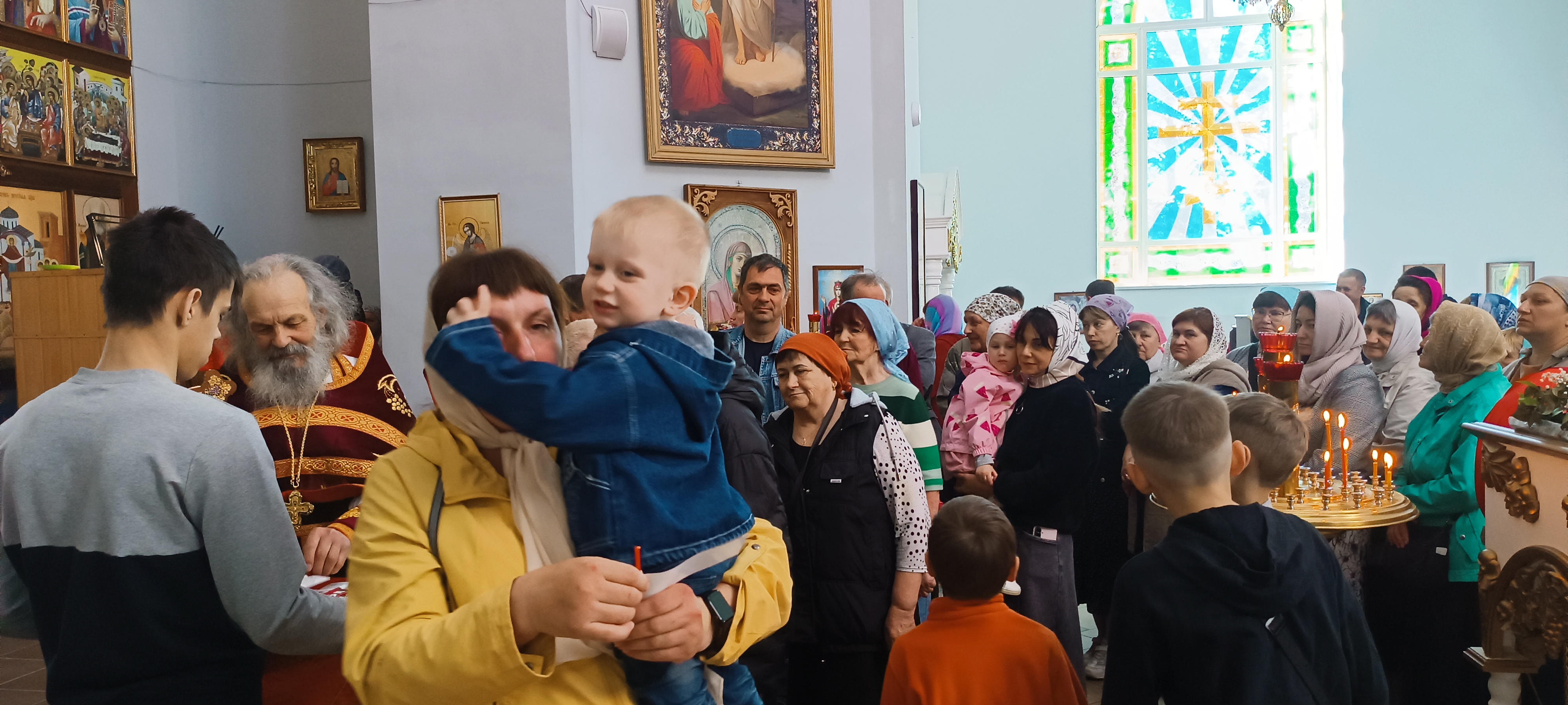 В Неделю 3-ю по Пасхе, святых жен-мироносиц, настоятель храма Покрова Пресвятой Богородицы Свято-Макарьевской монашеской общины поздравил прихожанок с праздником