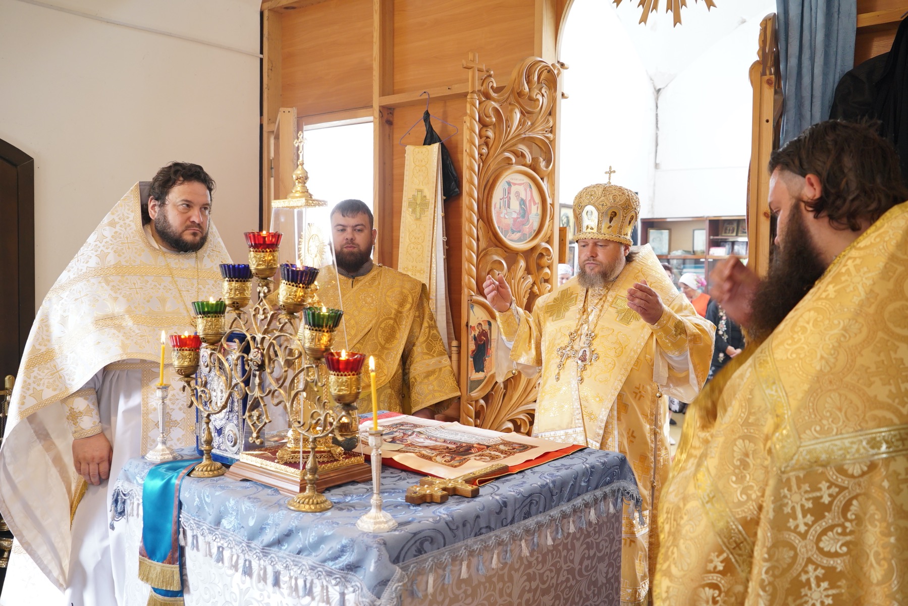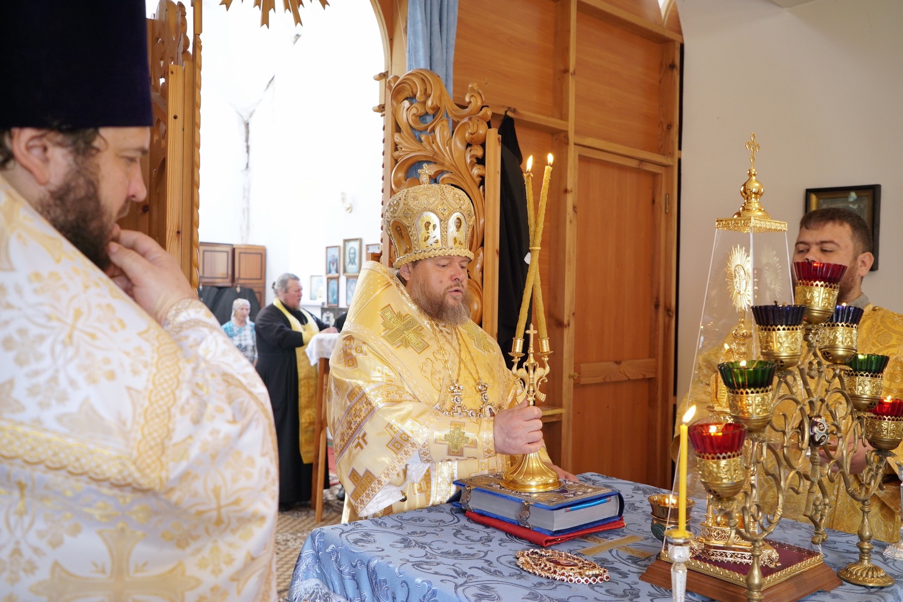 Преосвященному владыке сослужили: настоятель храма иерей Александр Лобанов, иерей Димитрий Щербаков, диакон Никита Гологузов.