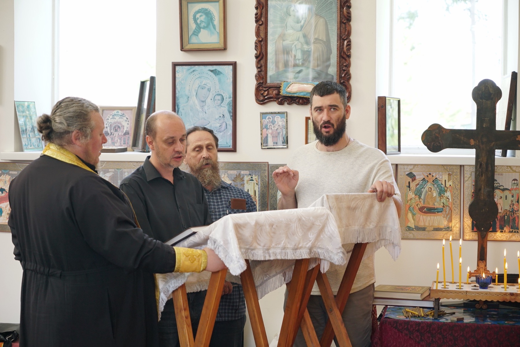 На сугубой ектении были произнесены особые прошения: «…о еже прияти молитвы нас недостойных рабов Твоих в сию годину испытания, пришедшую на Русь Святую…». Затем правящий архиерей вознес молитву о Святой Руси.