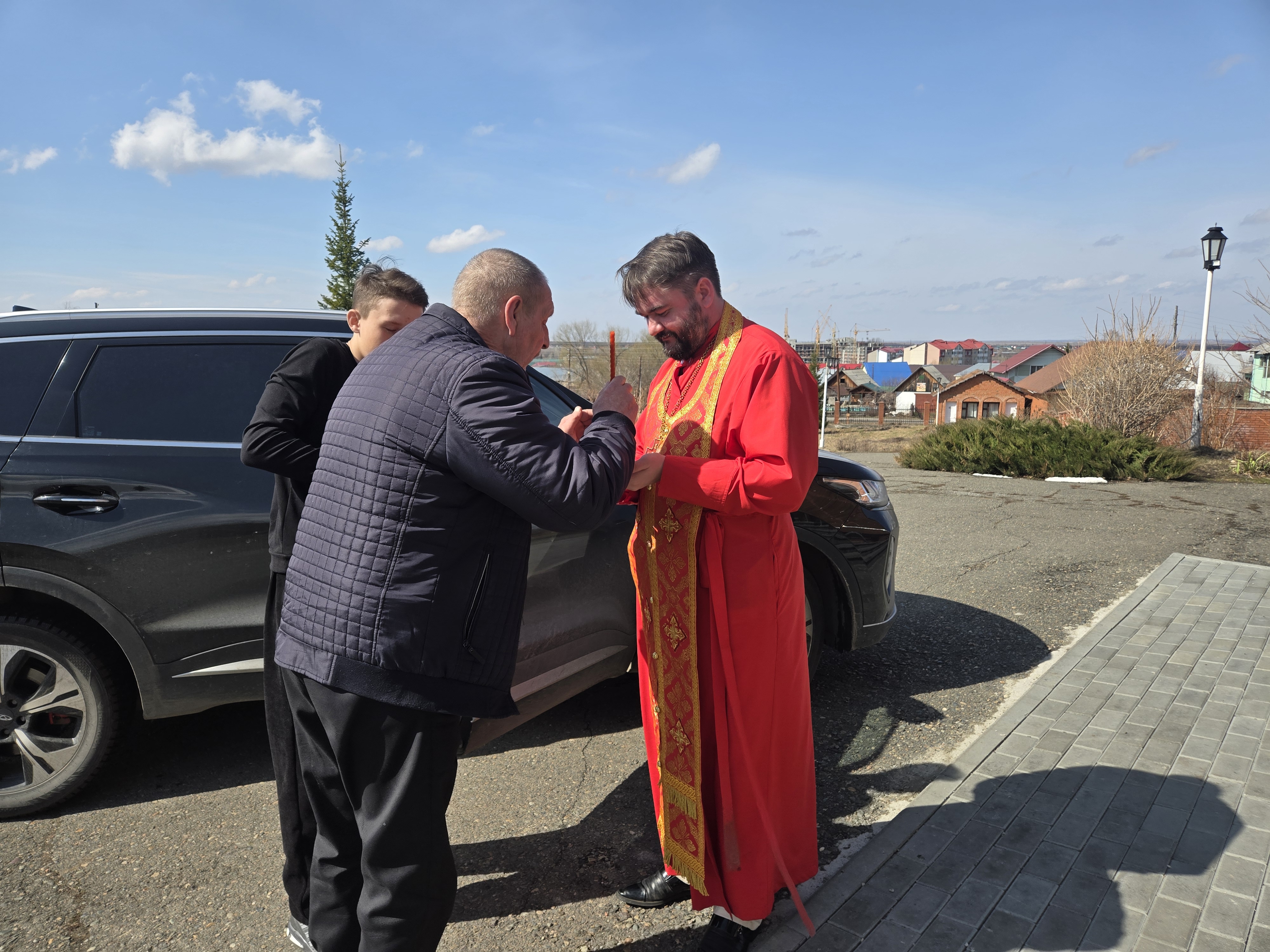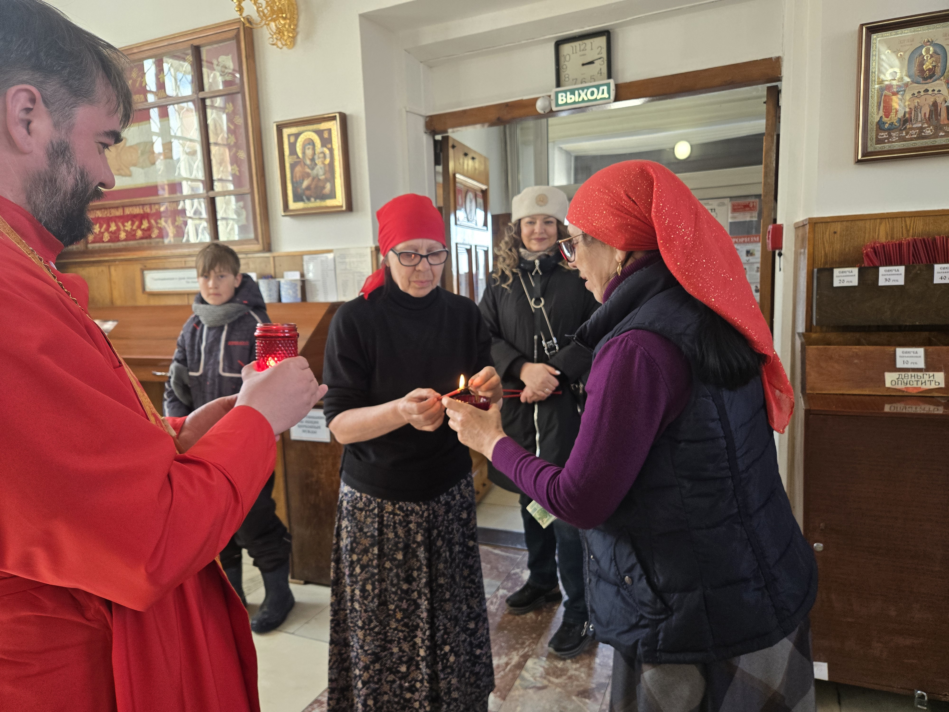 Ключарь Пантелеимоновского собора, благочинный Белокурихинского округа иерей Роман Третьяков принял святыню и возжег все лампады и свечи от Благодатного огня.