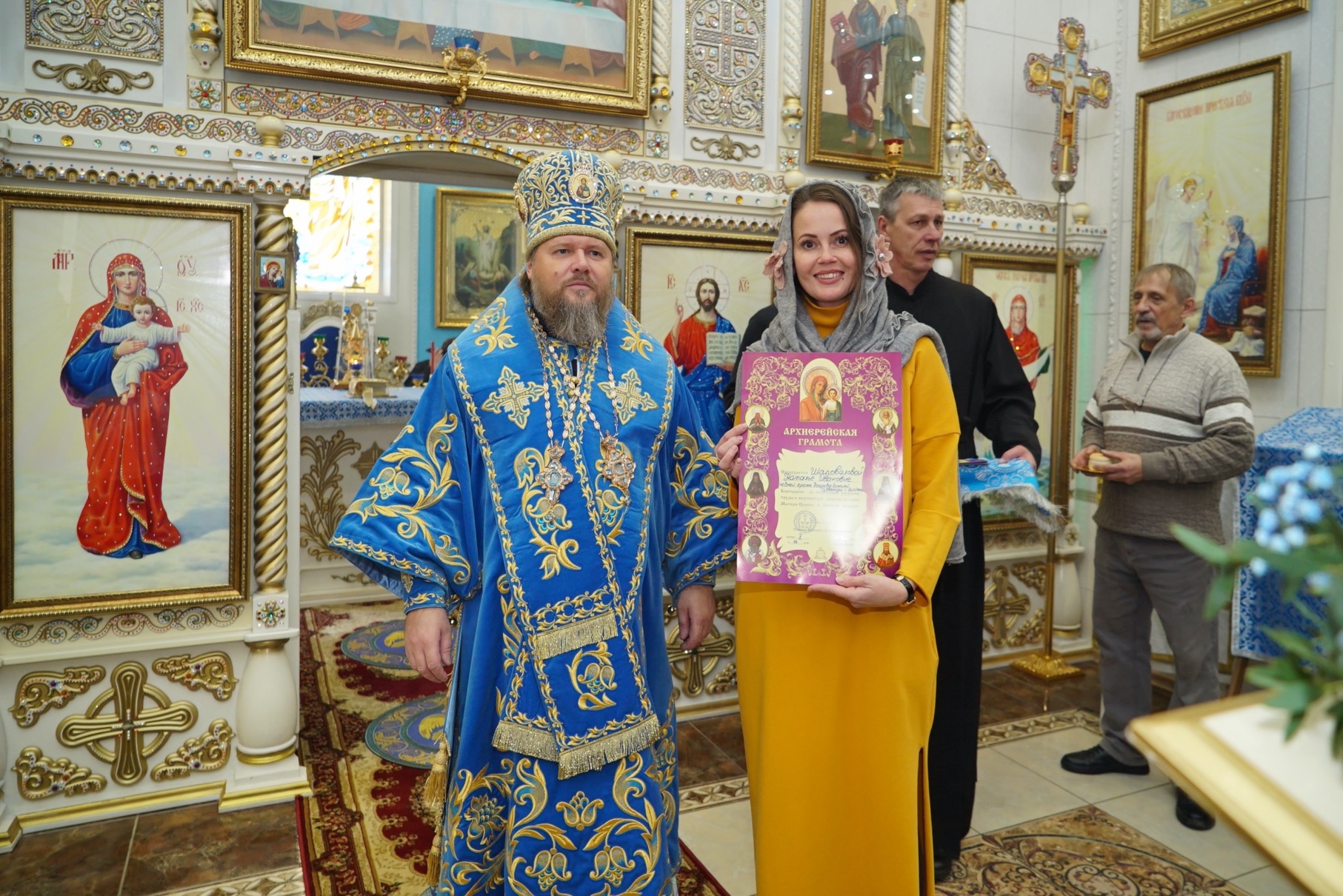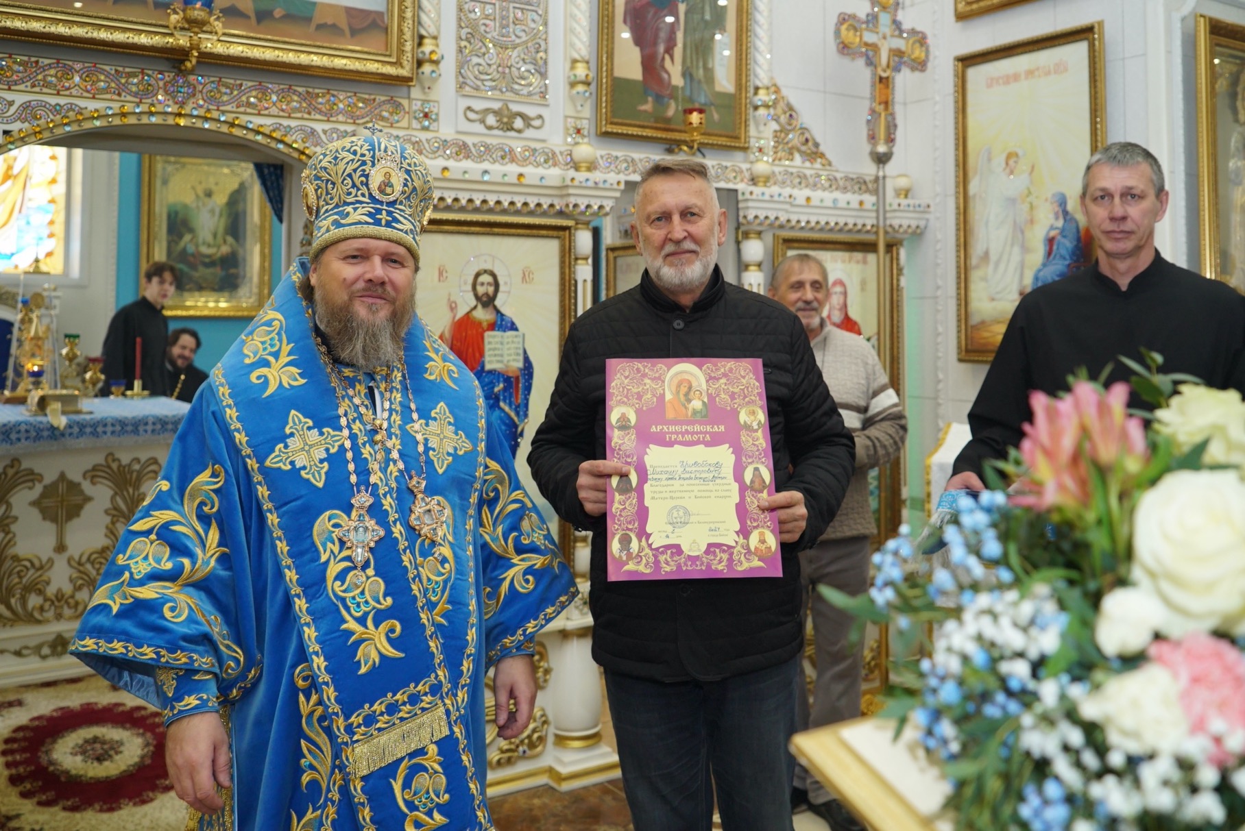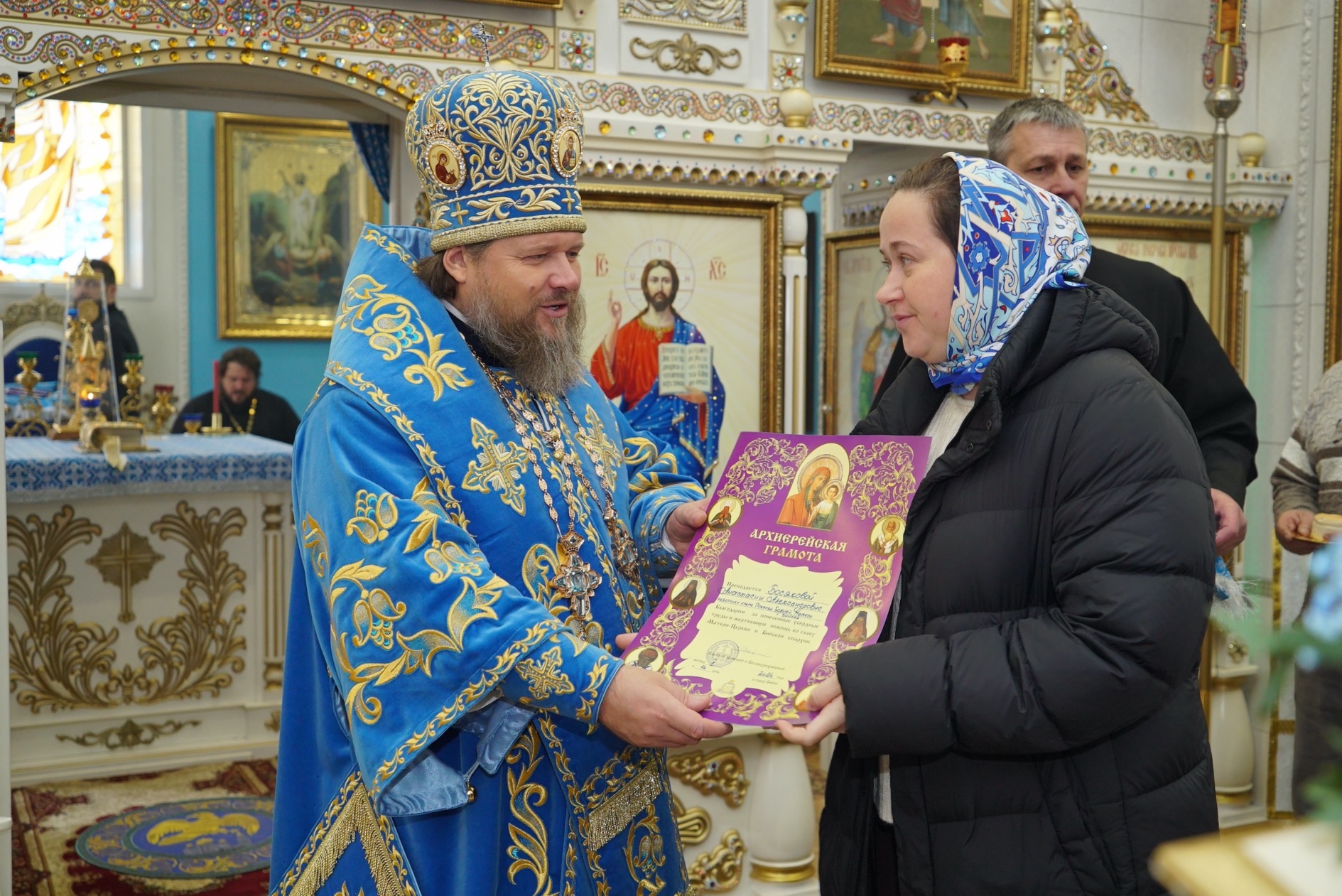 По окончании литургии епископ Серафим вручил прихожанам Покровского храма Архиерейские грамоты.