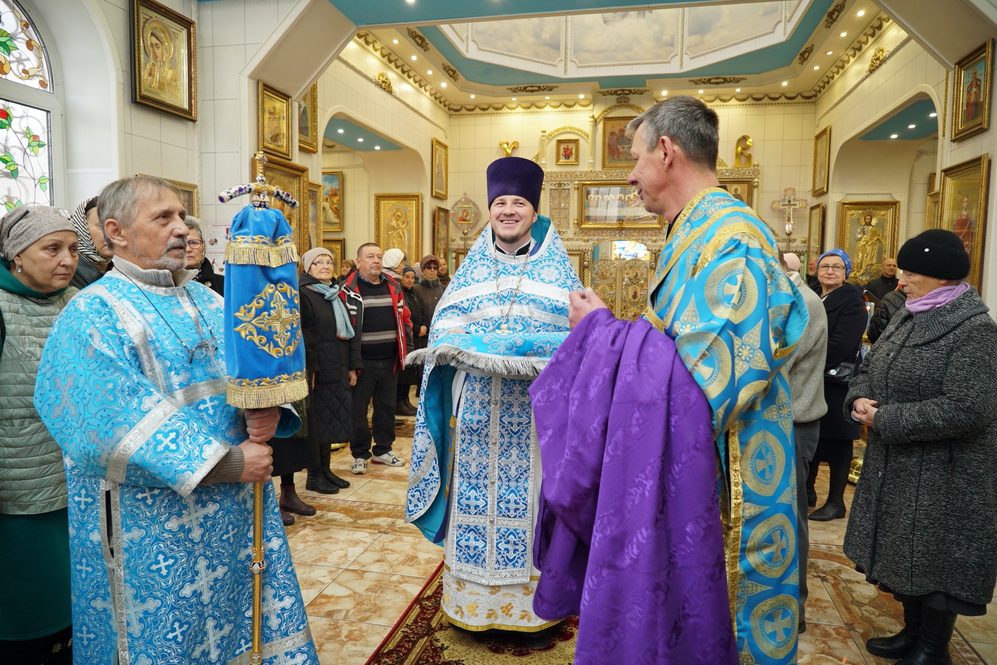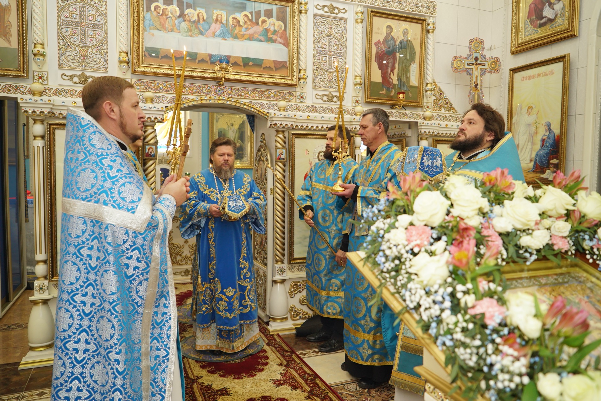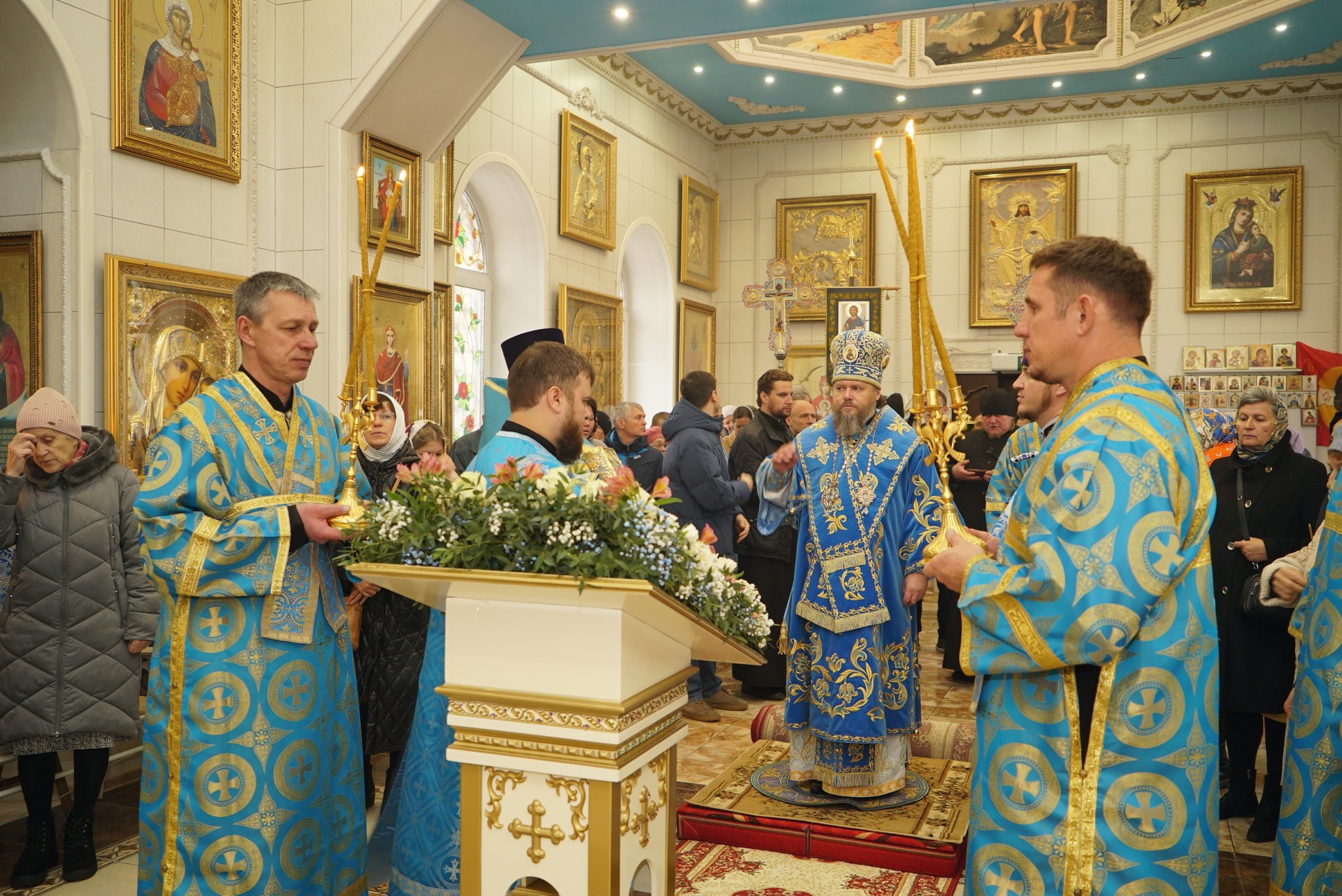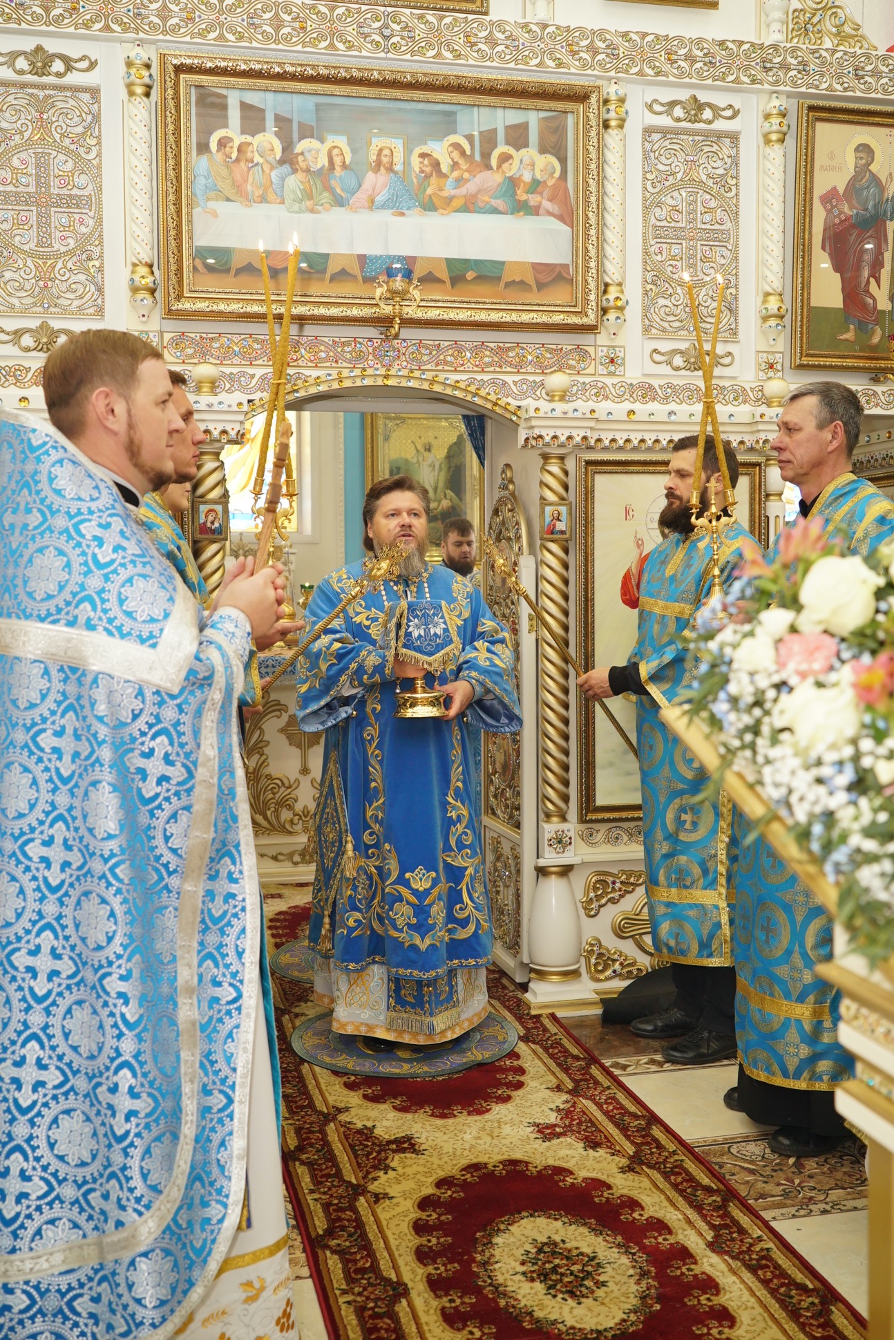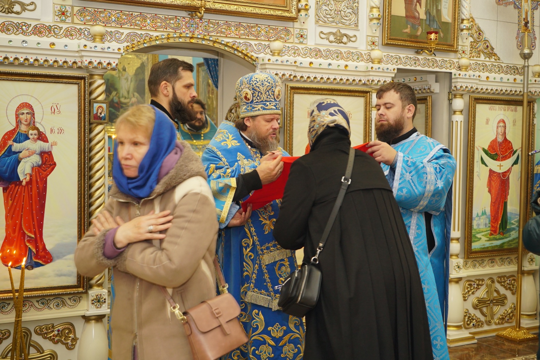В завершение богослужения правящий архиерей поздравил его участников с престольным праздником и обратился к сослужащему духовенству и всем молящимся с проповедью, посвященной празднику Покрова Пресвятой Богородицы.