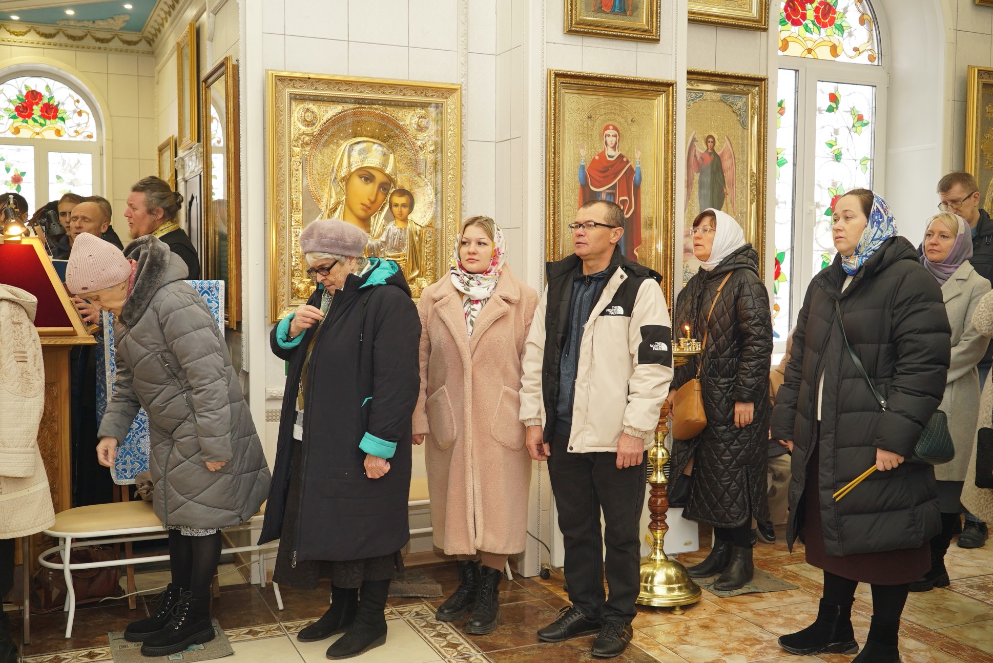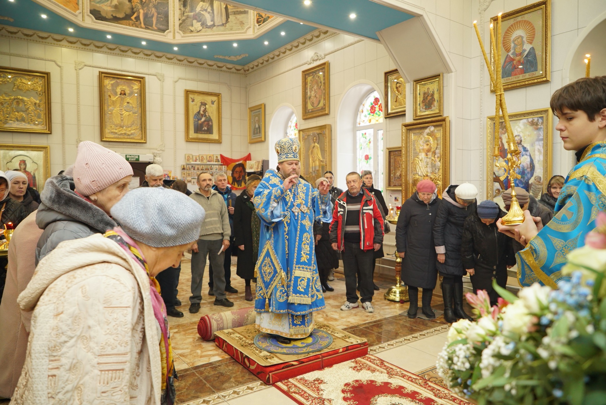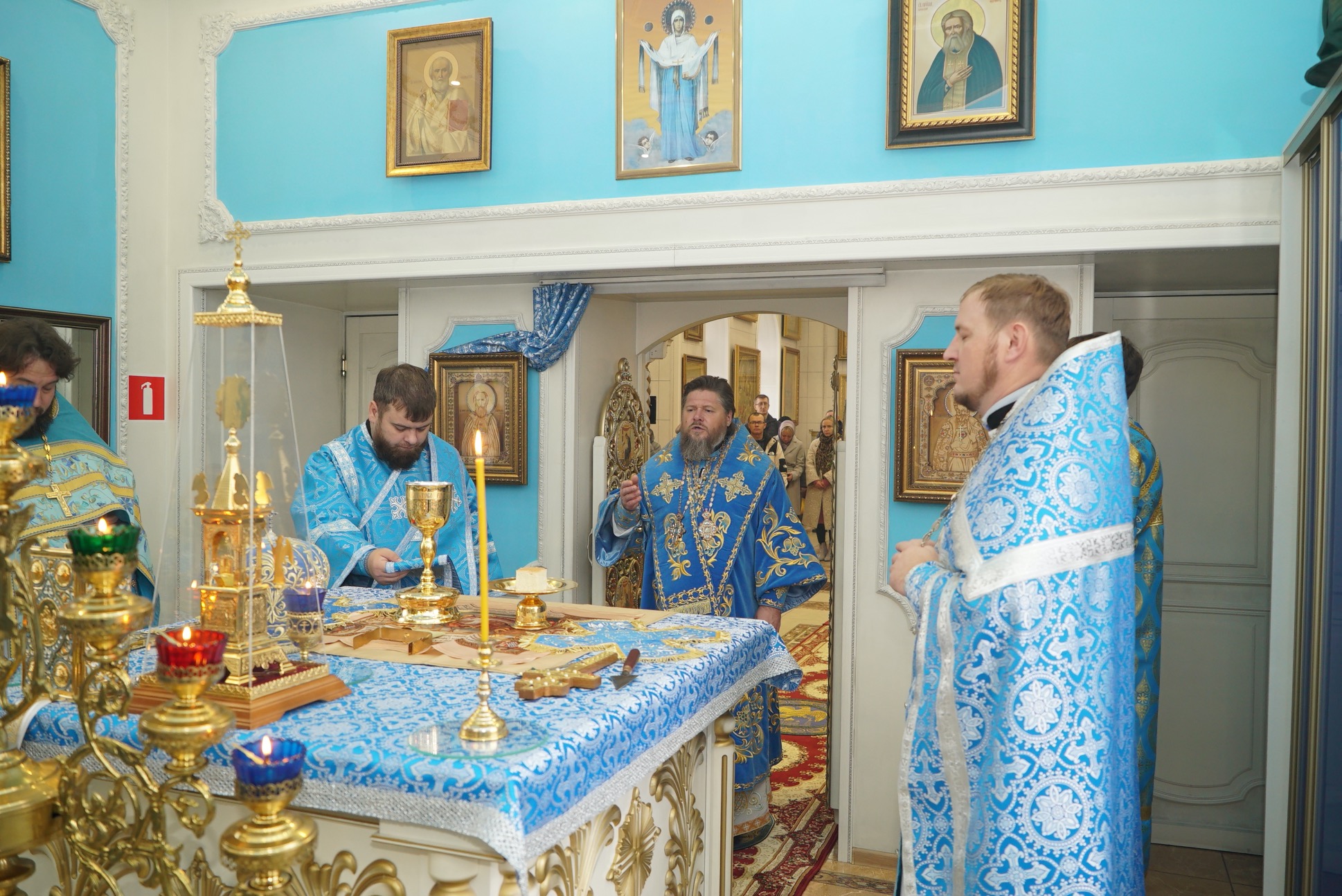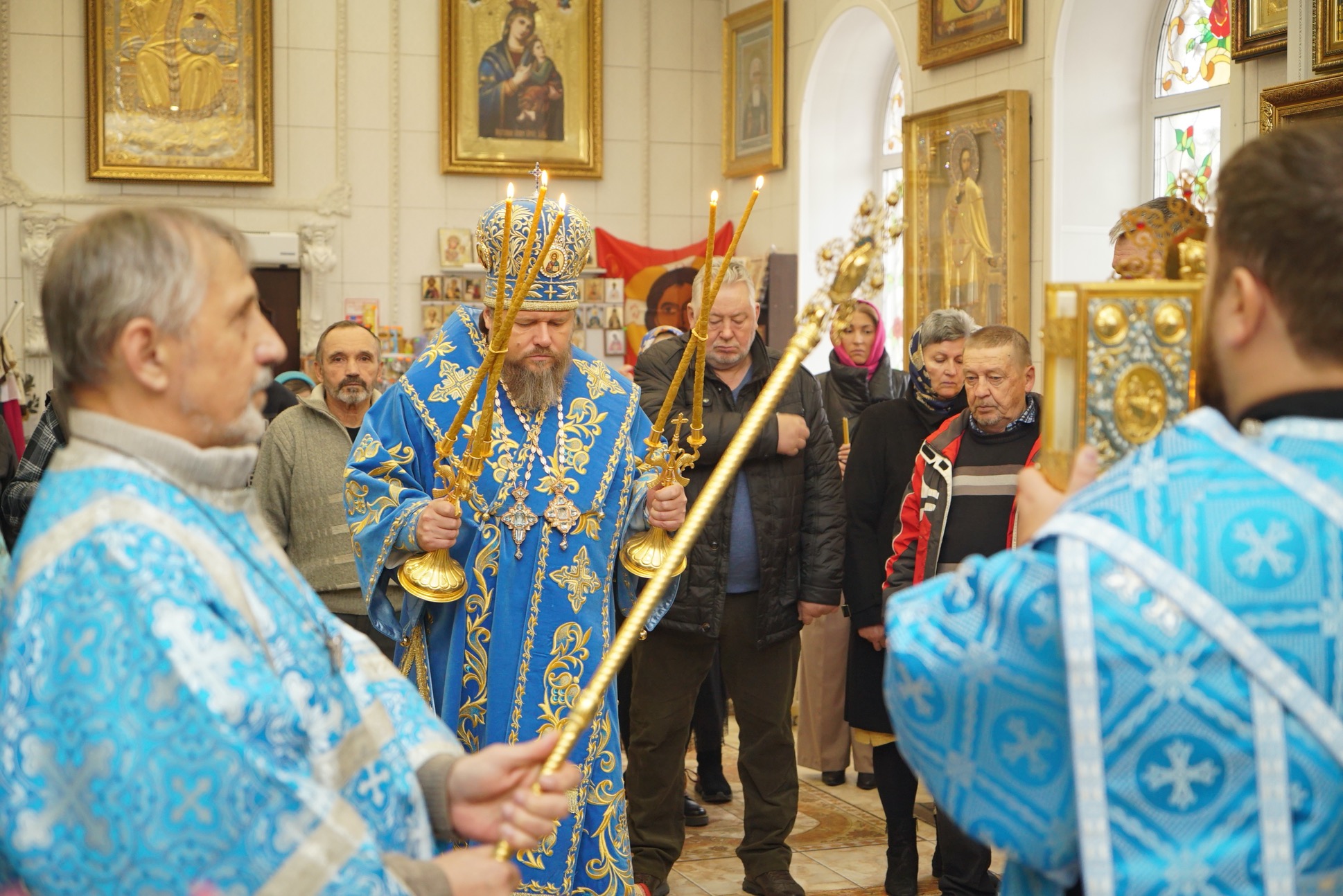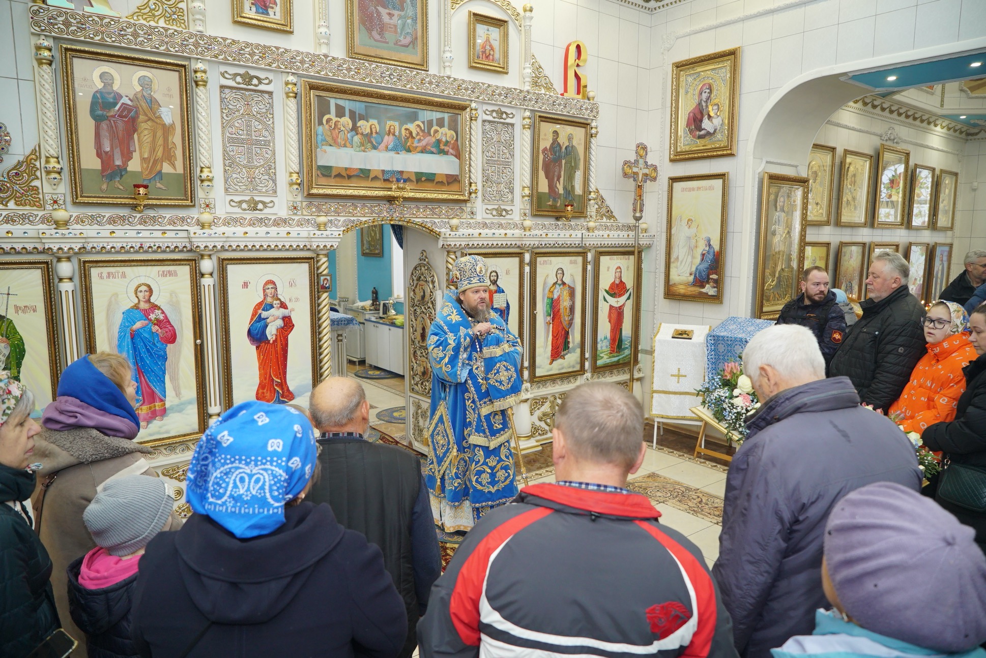Преосвященному владыке сослужили: настоятель храма иерей Евгений Капп, иерей Димитрий Щербаков, диакон Никита Гологузов.