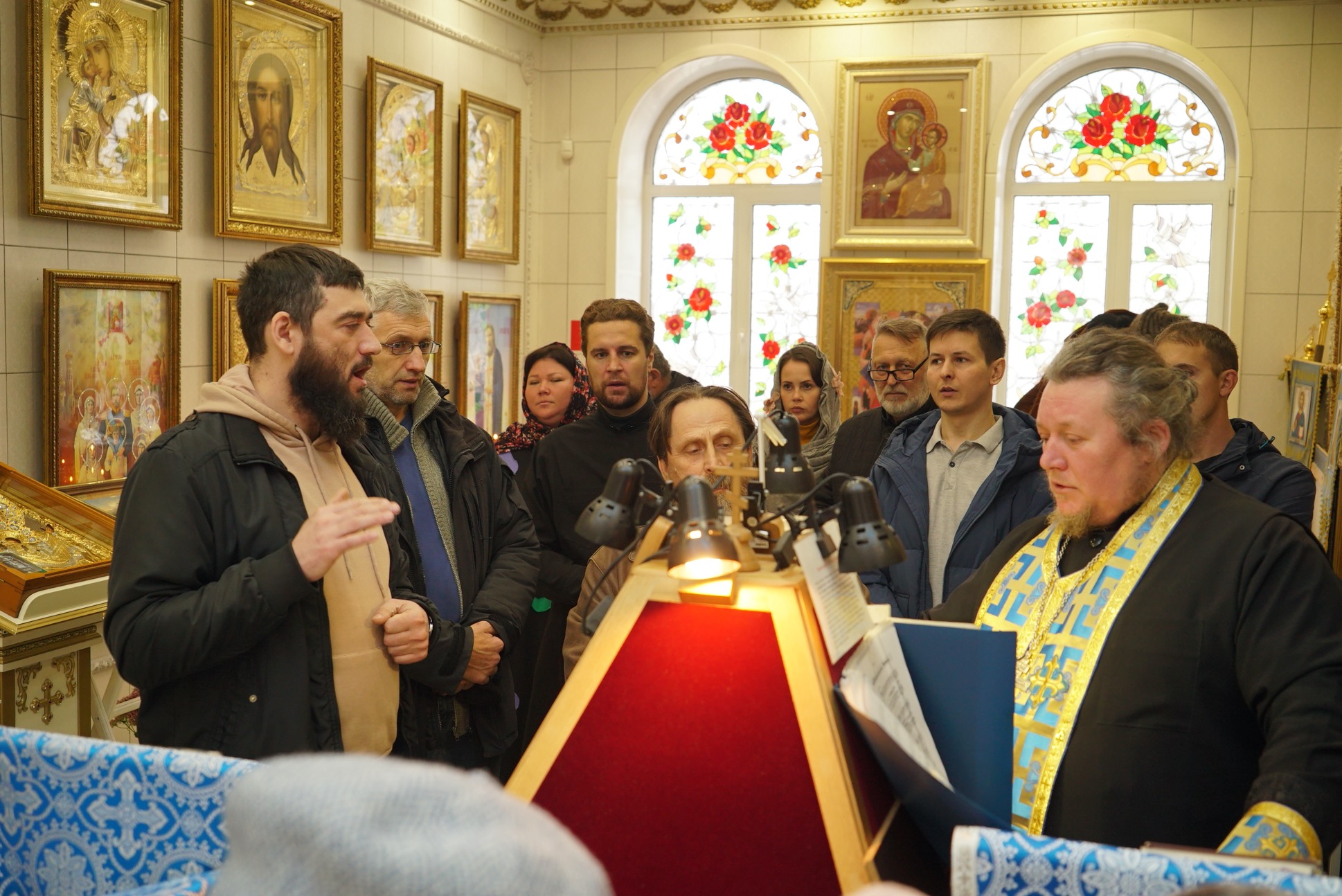 На сугубой ектении были произнесены особые прошения: «…о еже прияти молитвы нас недостойных рабов Твоих в сию годину испытания, пришедшую на Русь Святую…». Затем правящий архиерей вознес молитву о Святой Руси.