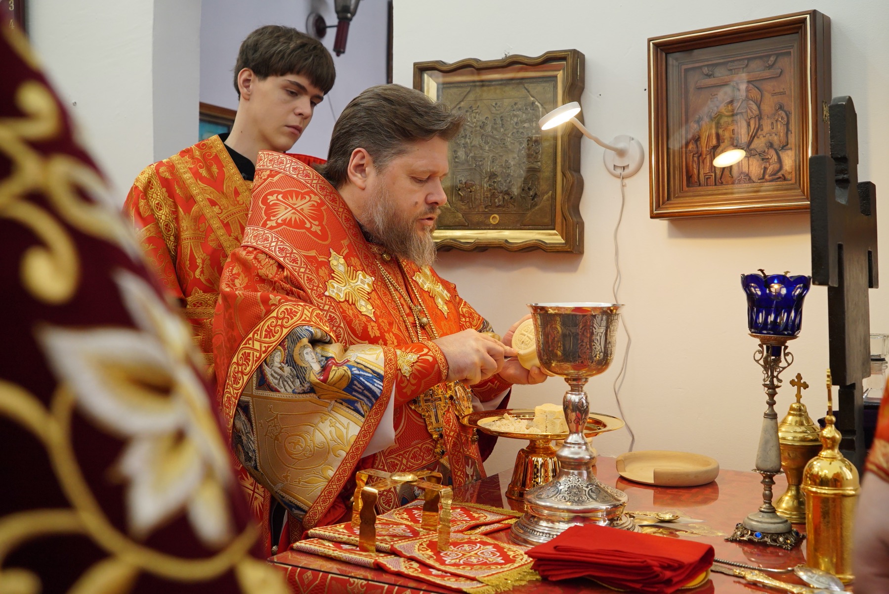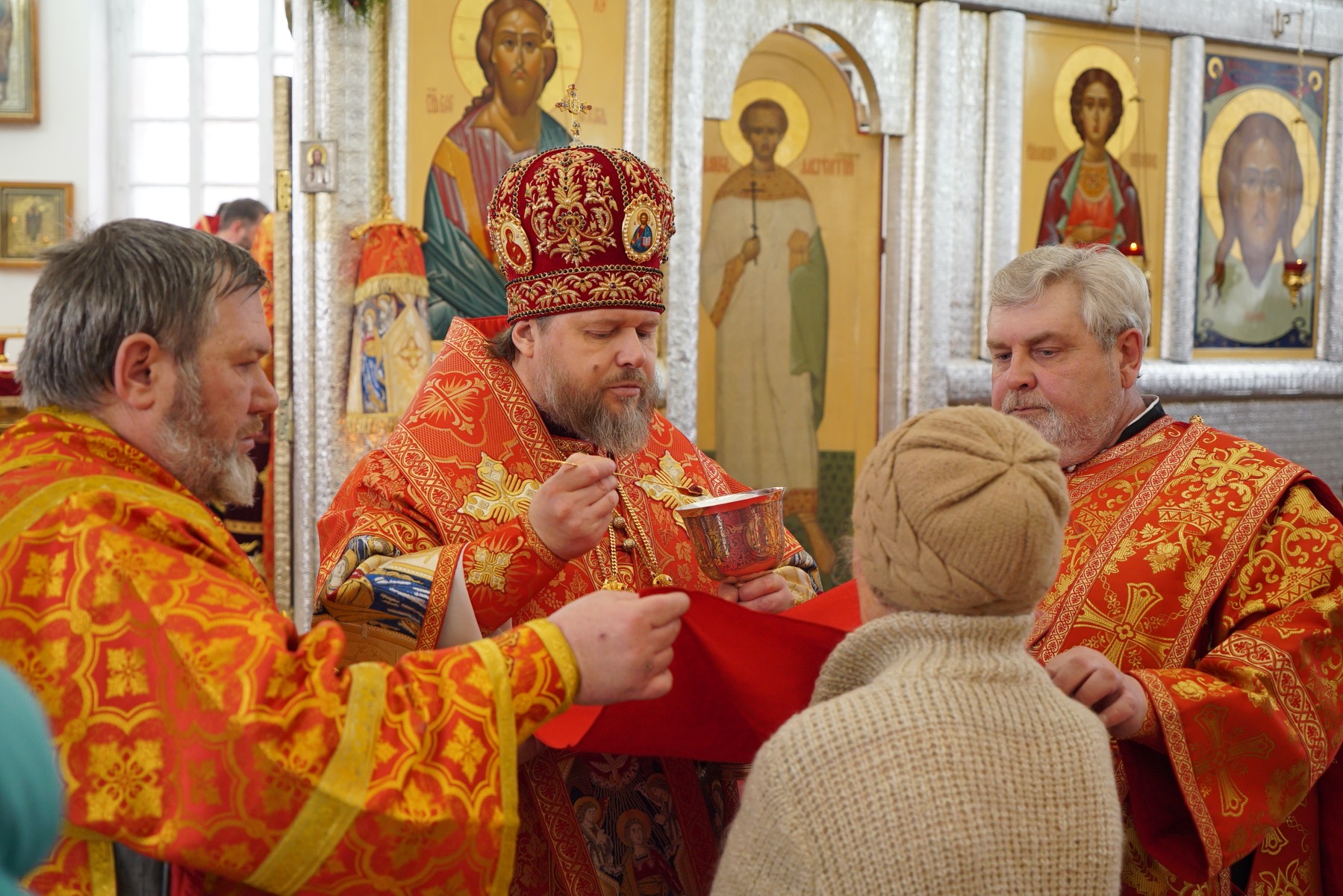 За литургией владыка Серафим причастил верующих Святых Христовых Таин.