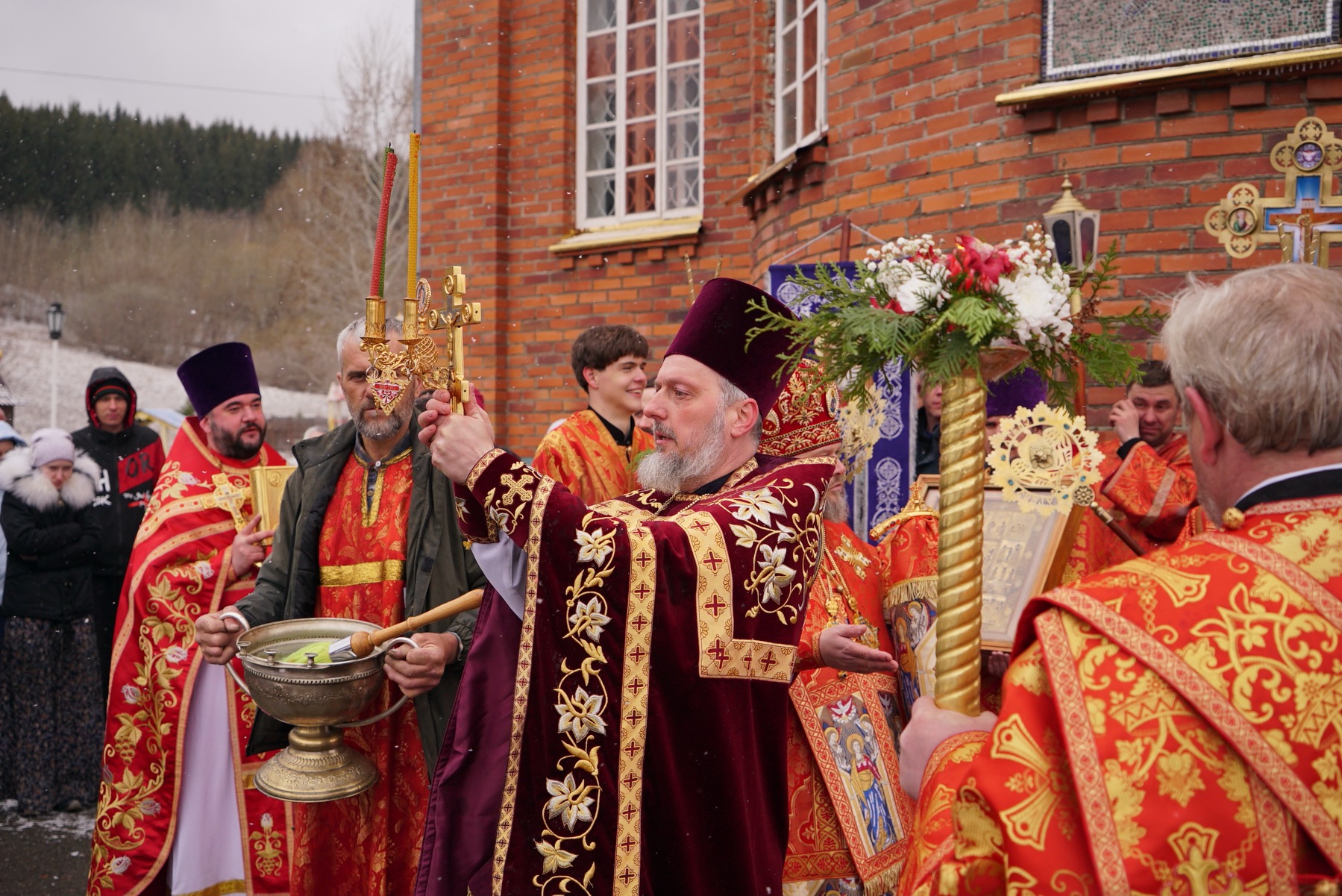 По окончании литургии был совершен Пасхальный крестный ход вокруг храма.