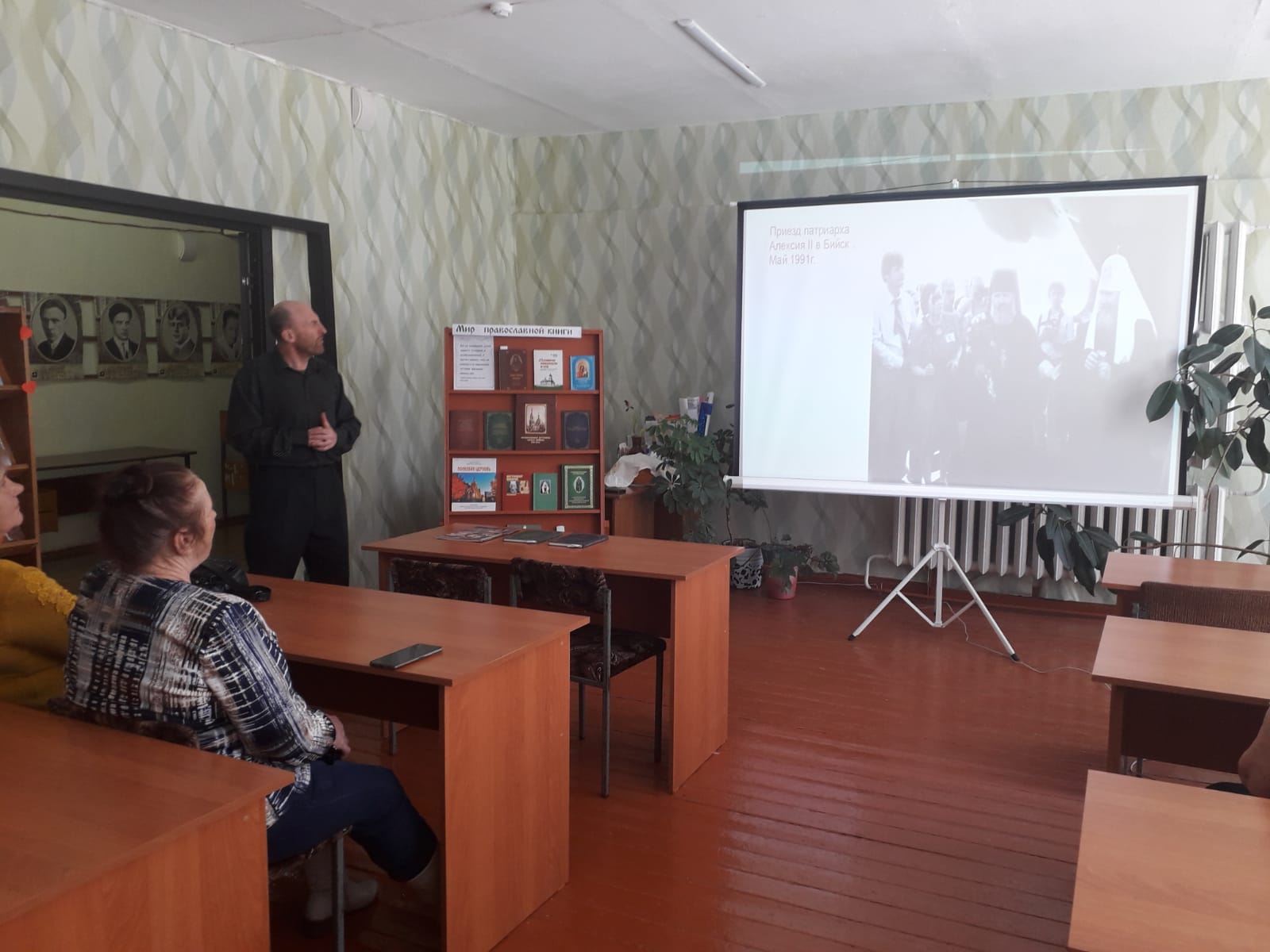 С приветственным словом к участникам встречи обратилась сотрудник районной библиотеки Ольга Трофимовна Осадчая, предоставившая слово помощнику настоятеля храма святителя Николая Чудотворца Сергею Александровичу Аснису. В начале своего выступления, знакомя участников встречи с книгами, представленными на выставке, Сергей Александрович рассказал о Святейшем Патриархе Алексие II и его визите в город Бийск в 1991 году.