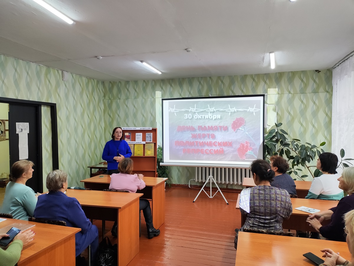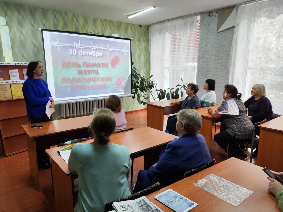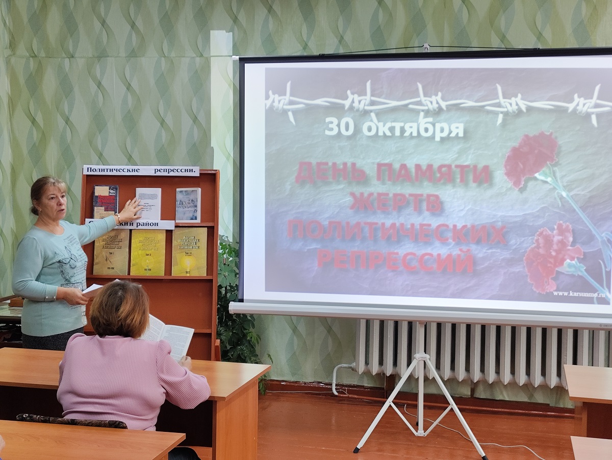 31 октября в читальном зале Солтонской районной библиотеки состоялась просветительская встреча, посвященная Дню памяти жертв политических репрессий. В мероприятии приняли участие работники солтонского Дома культуры, читатели библиотеки, прихожане церкви.