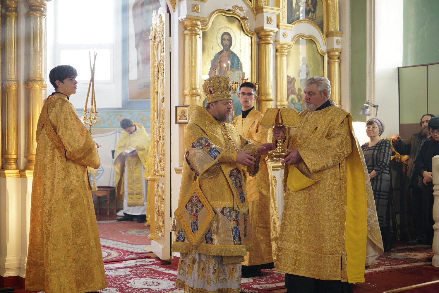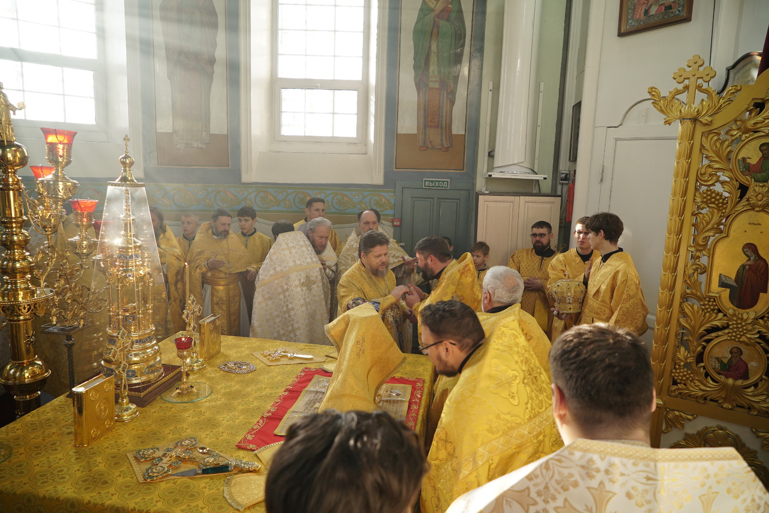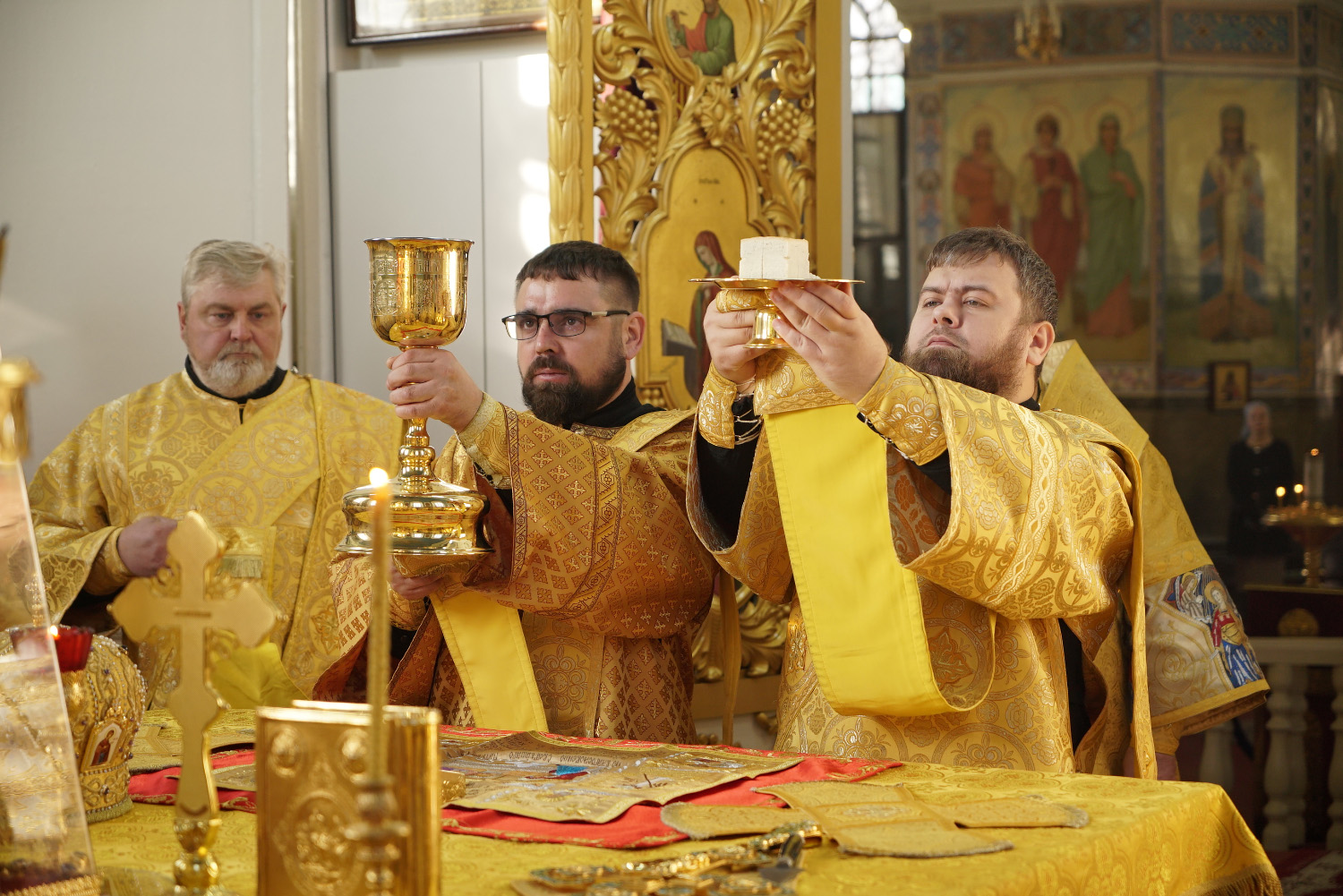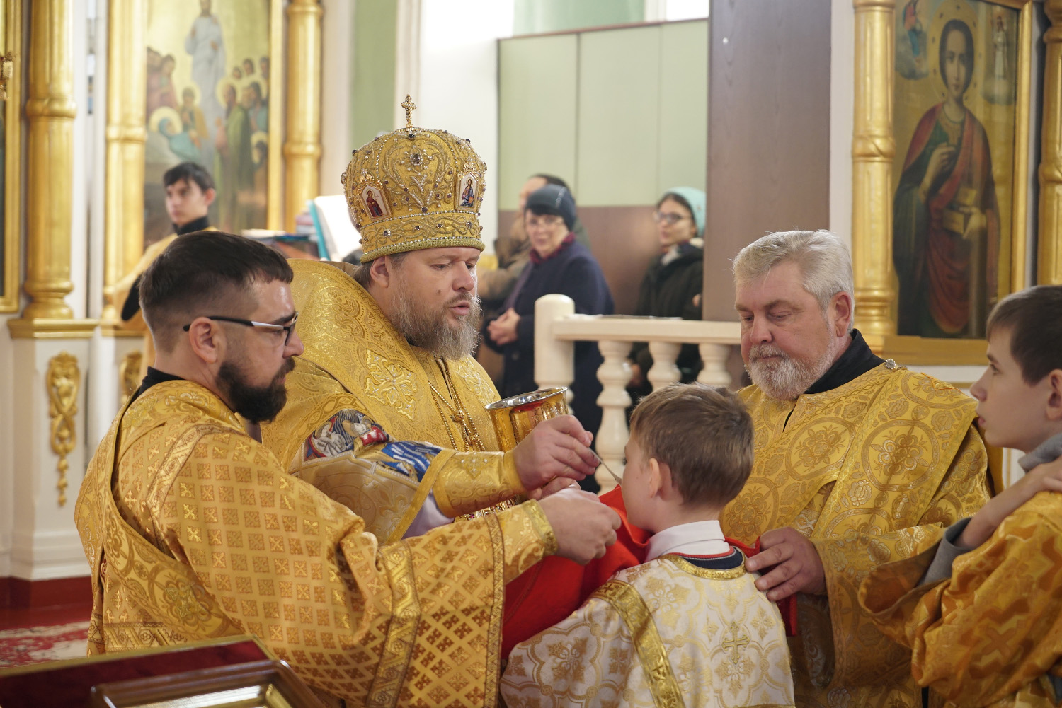 За литургией владыка Серафим причастил верующих Святых Христовых Таин.