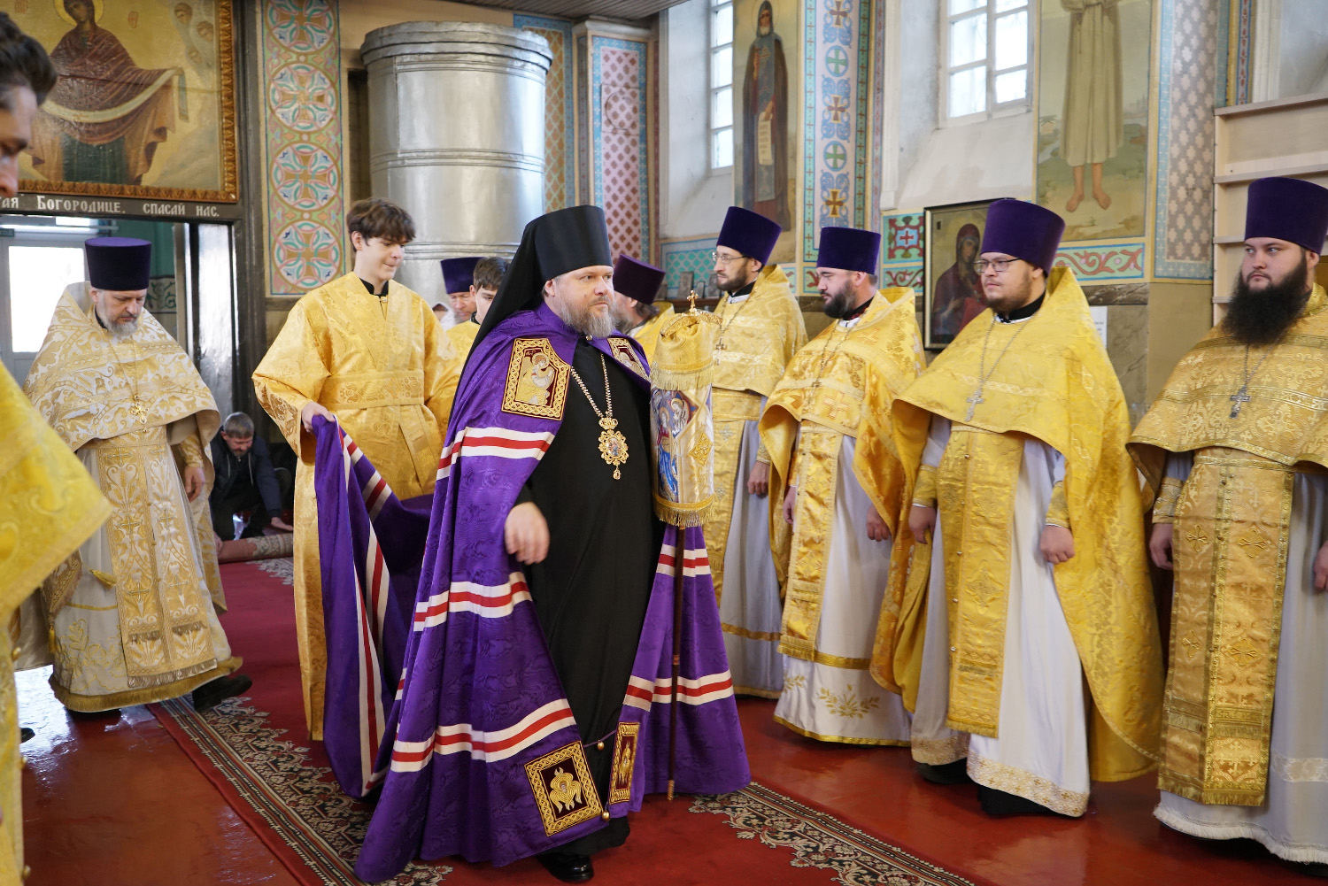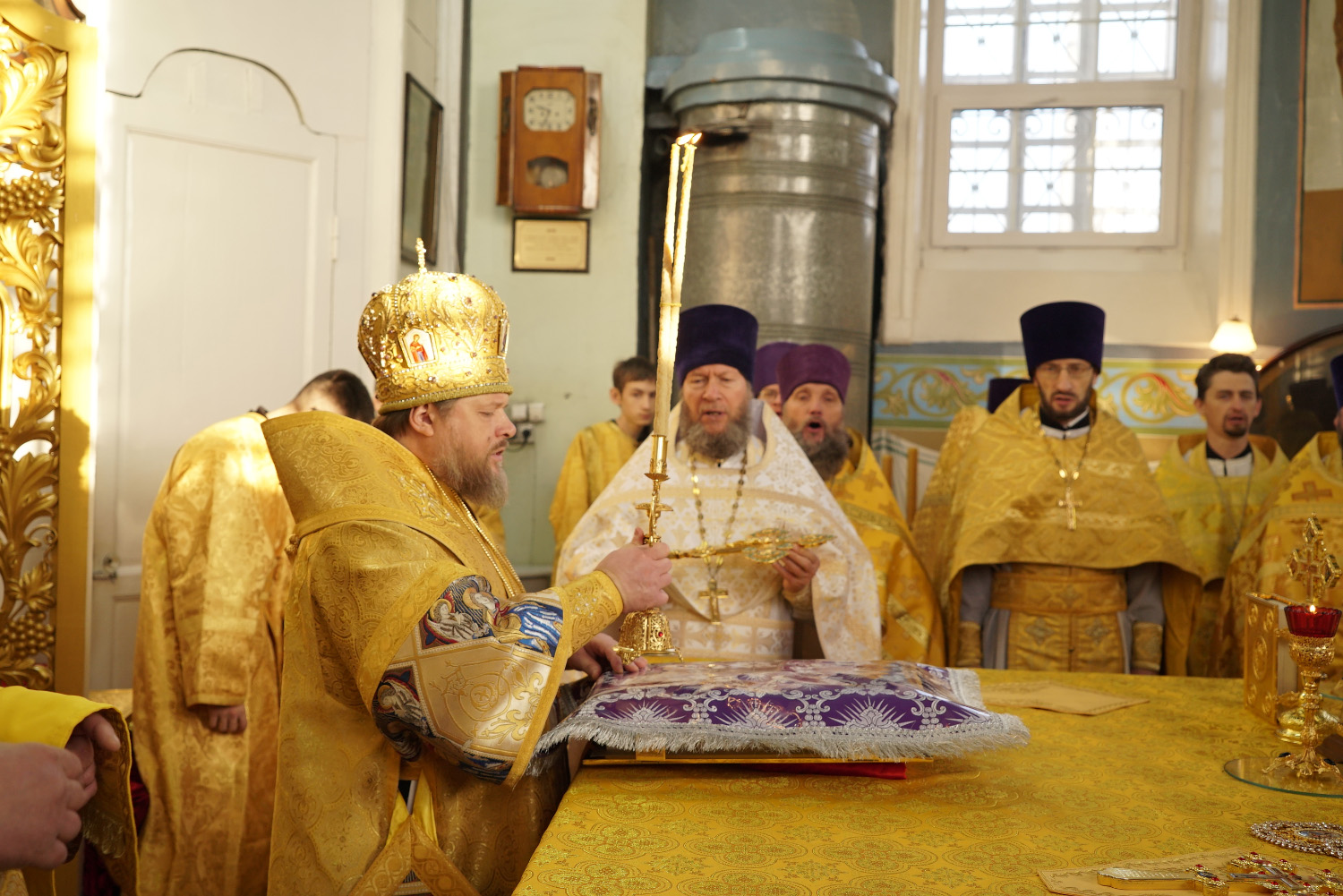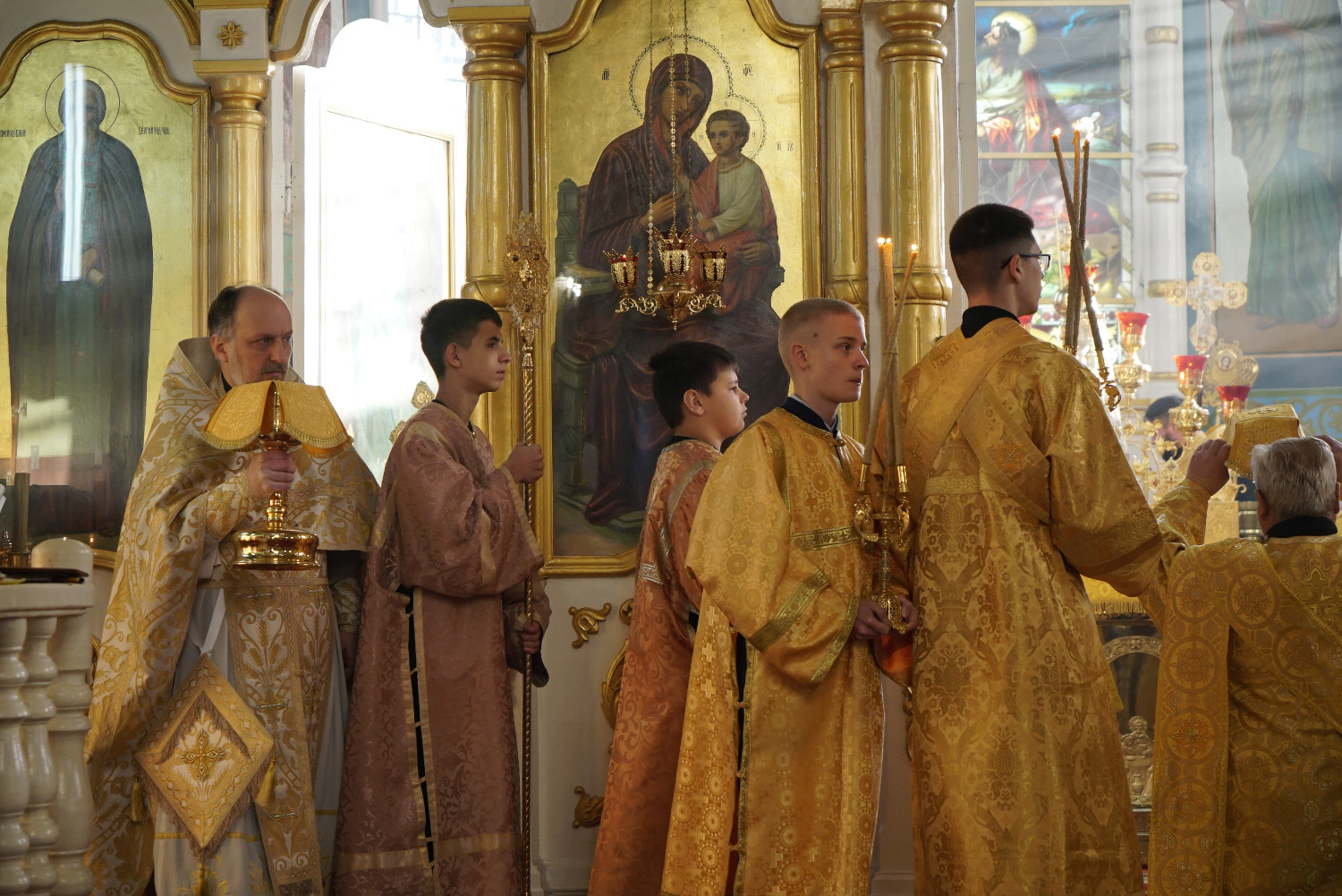 Праздник начался Божественной литургией, которую возглавил Преосвященный Серафим, епископ Бийский и Белокурихинский, в сослужении епархиального духовенства.