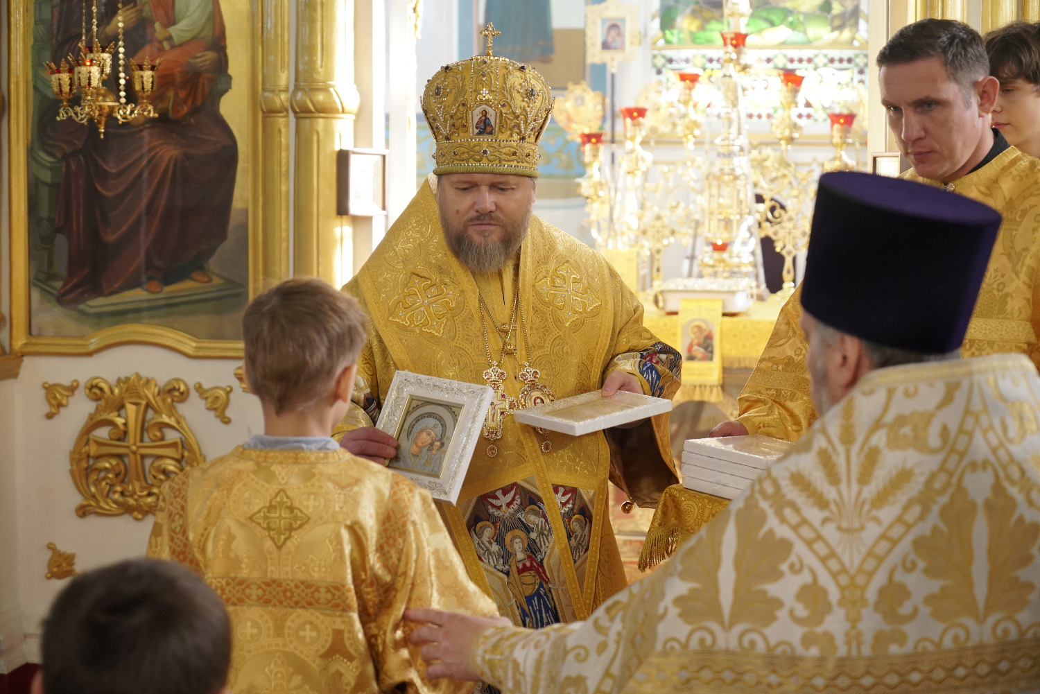 В завершение проповеди архипастырь поздравил участников слета, рассказал о своем первом опыте пономарского служения и пожелал юным пономарям никогда не оставлять храм и всегда обращаться с искренней молитвой к Богу. Владыка вручил каждому участнику слета памятную икону.