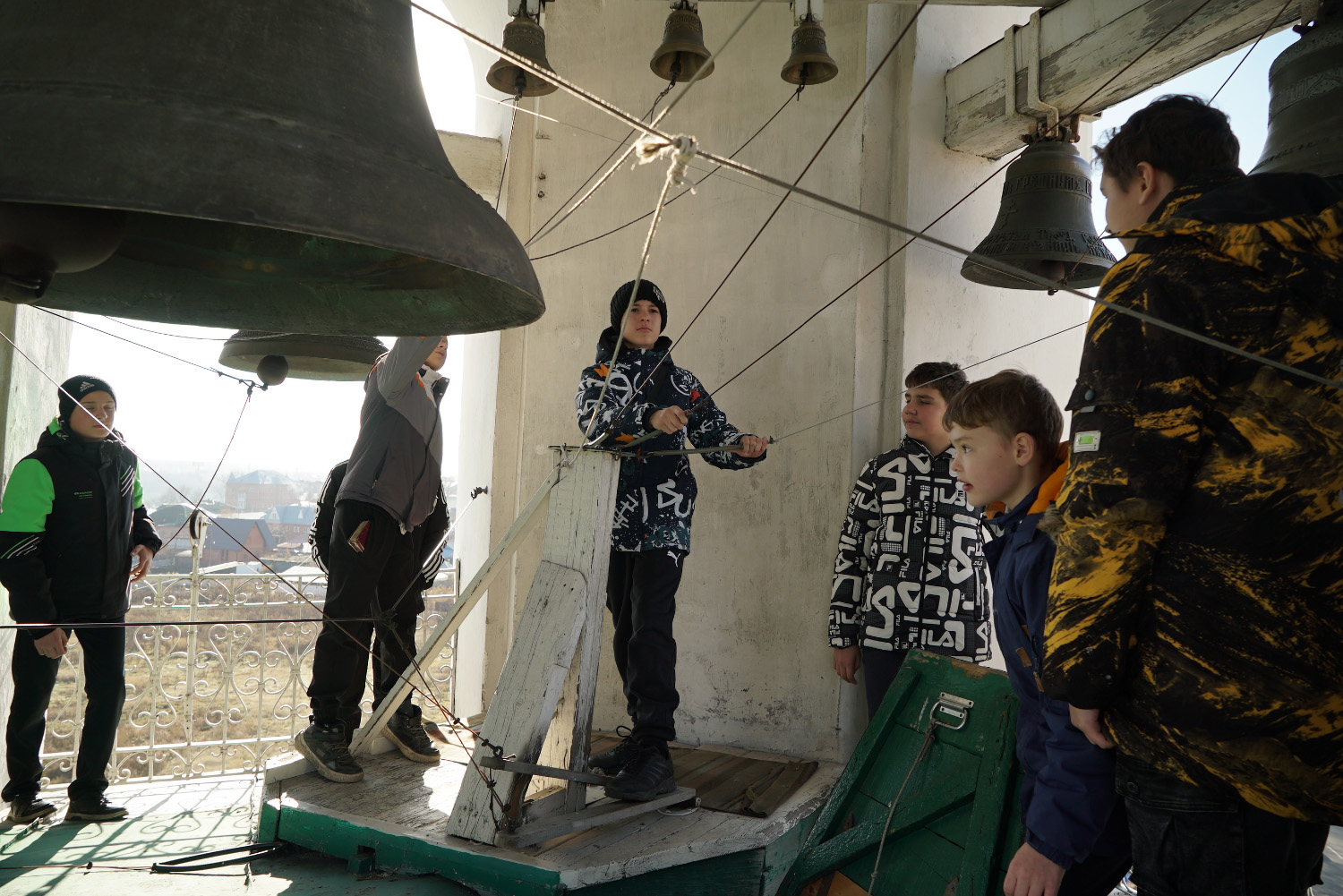 Ребята получили возможность подняться на колокольню Успенского кафедрального собора, ознакомиться с устройством колоколов и попробовать себя в звонарном мастерстве.