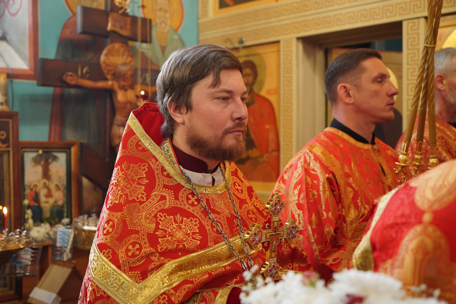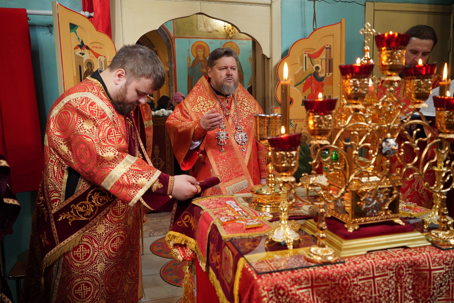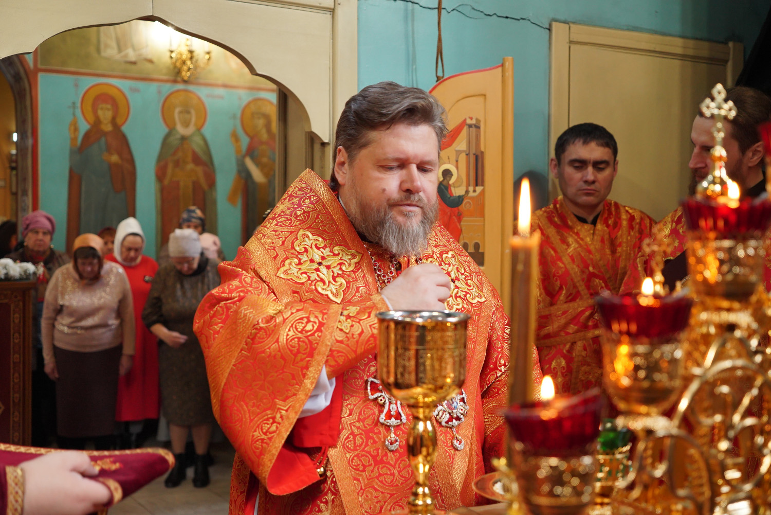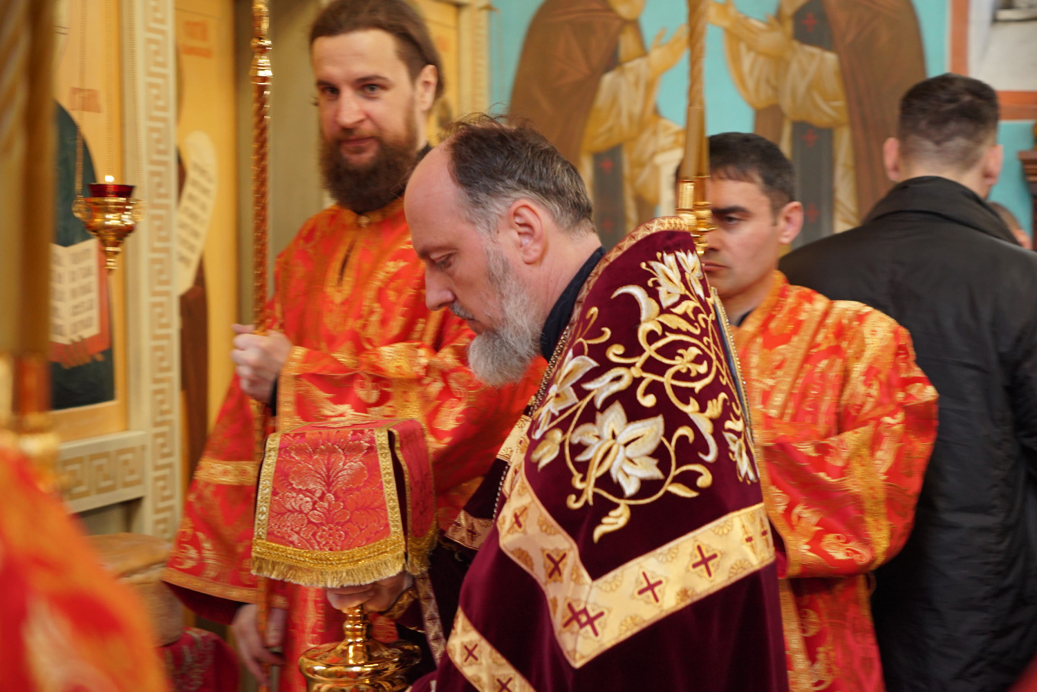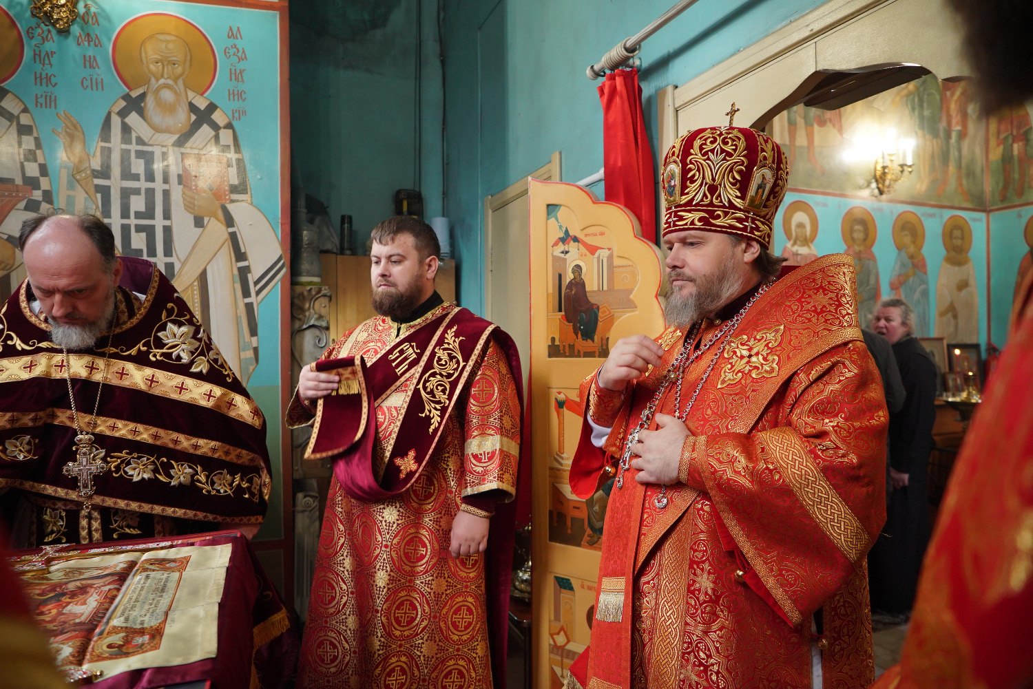 Его Преосвященству сослужили: ключарь храма протоиерей Александр Петров, иерей Георгий Степанищев, иерей Дионисий Юдин, диакон Никита Гологузов.