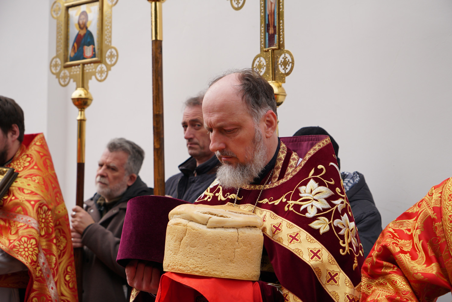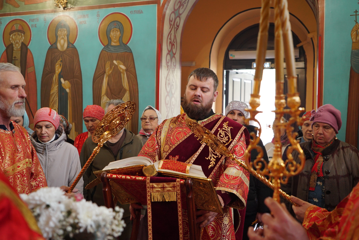 На сугубой ектении были произнесены особые прошения: «…о еже прияти молитвы нас недостойных рабов Твоих в сию годину испытания, пришедшую на Русь Святую…». Затем правящий архиерей вознес молитву о Святой Руси.