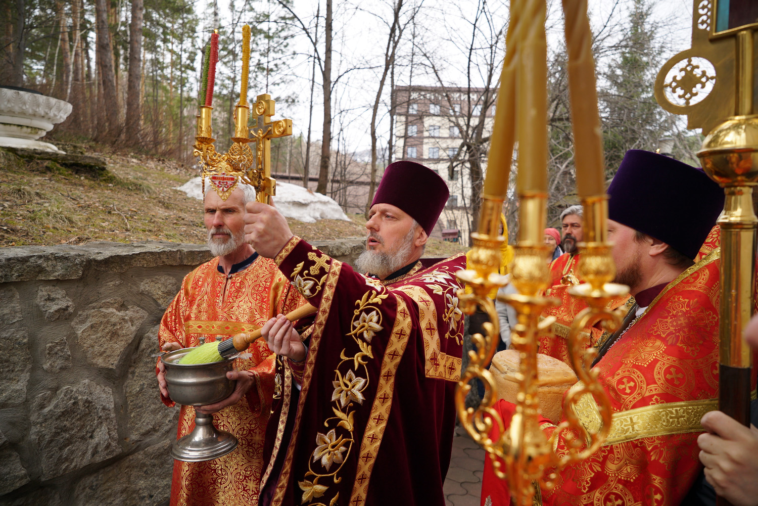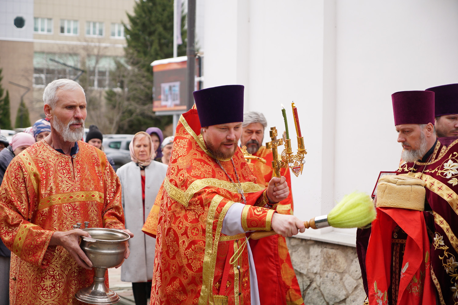 По окончании литургии был совершен Пасхальный крестный ход вокруг храма.