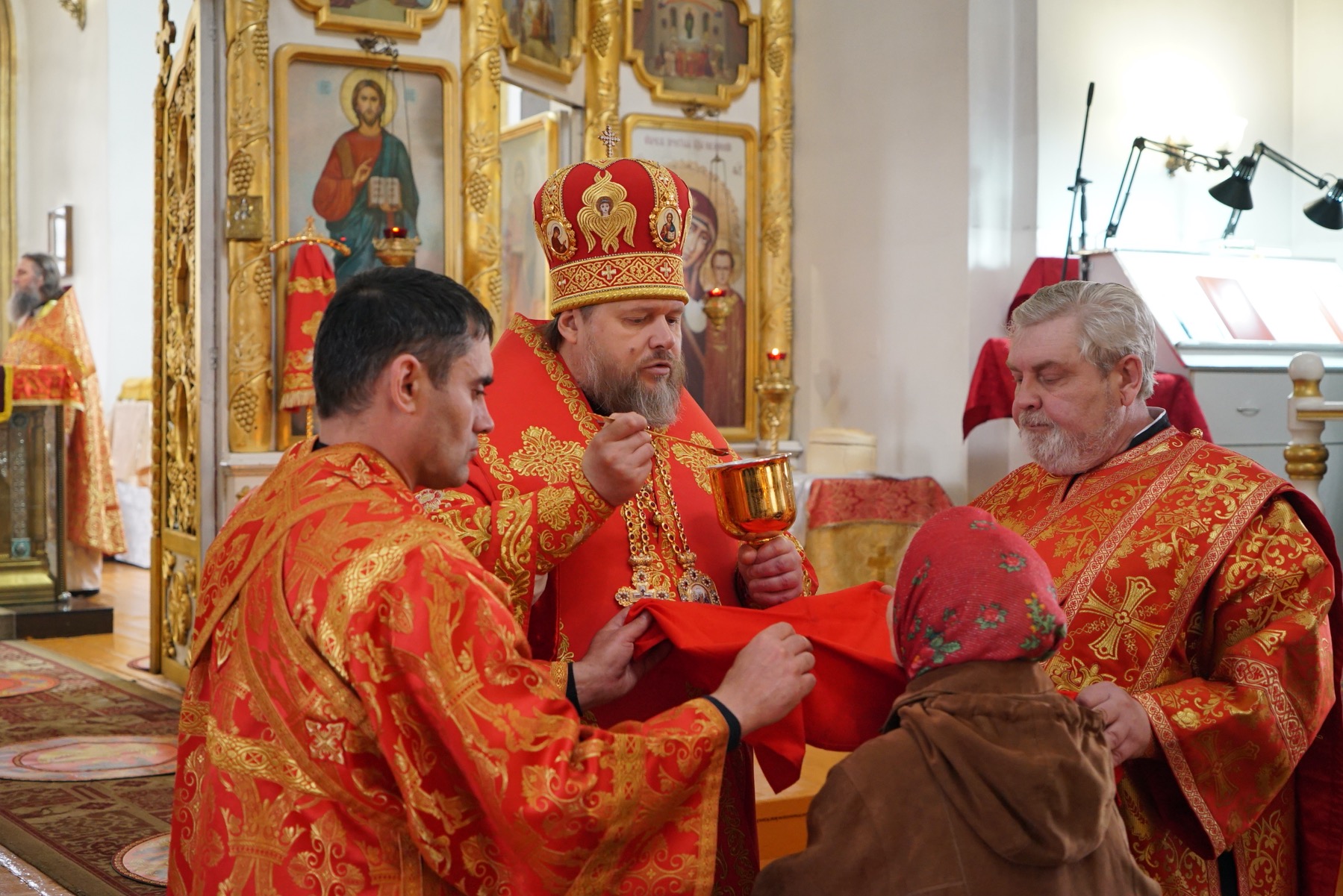За литургией владыка Серафим причастил верующих Святых Христовых Таин.