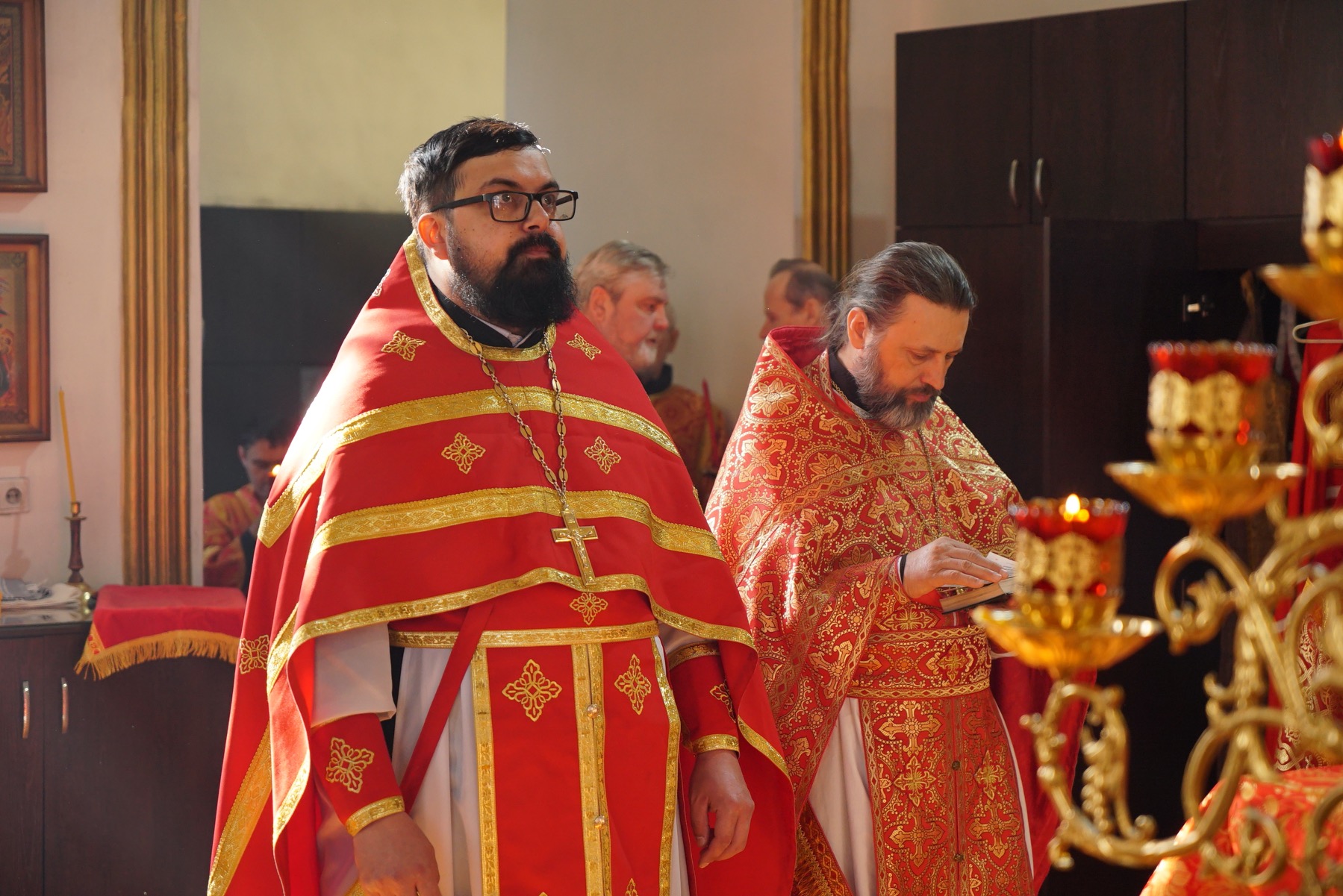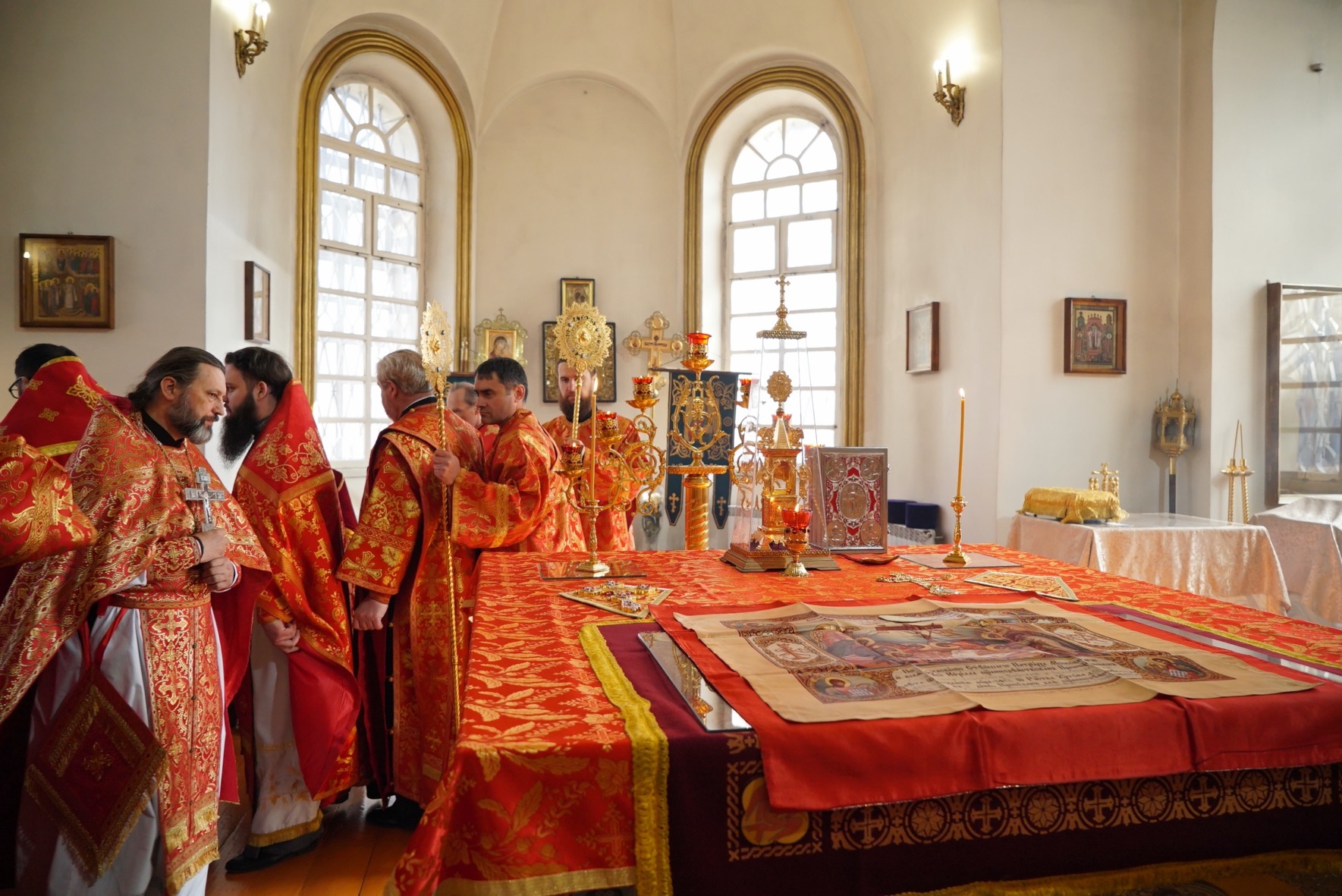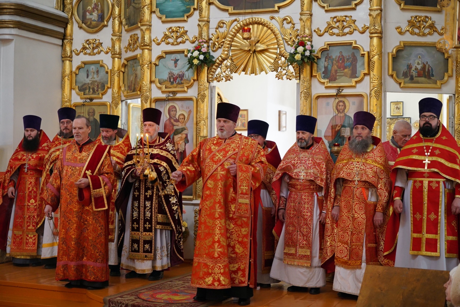 Его Преосвященству сослужили: настоятель храма протоиерей Валерий Замятин, протоиерей Александр Петров, иерей Евгений Щигрев, иерей Димитрий Харин, иерей Димитрий Камбалин, иерей Вадим Четвергов, иерей Василий Давыдкин, иерей Александр Лобанов, протодиакон Вадим Шпак, диакон Николай Геришенко.