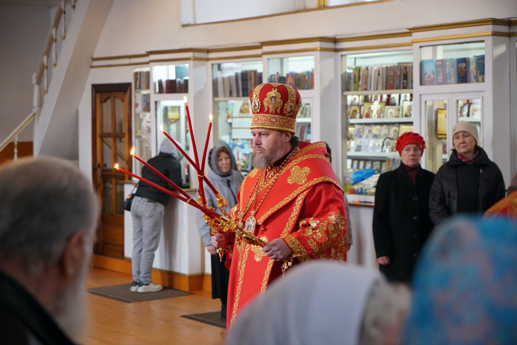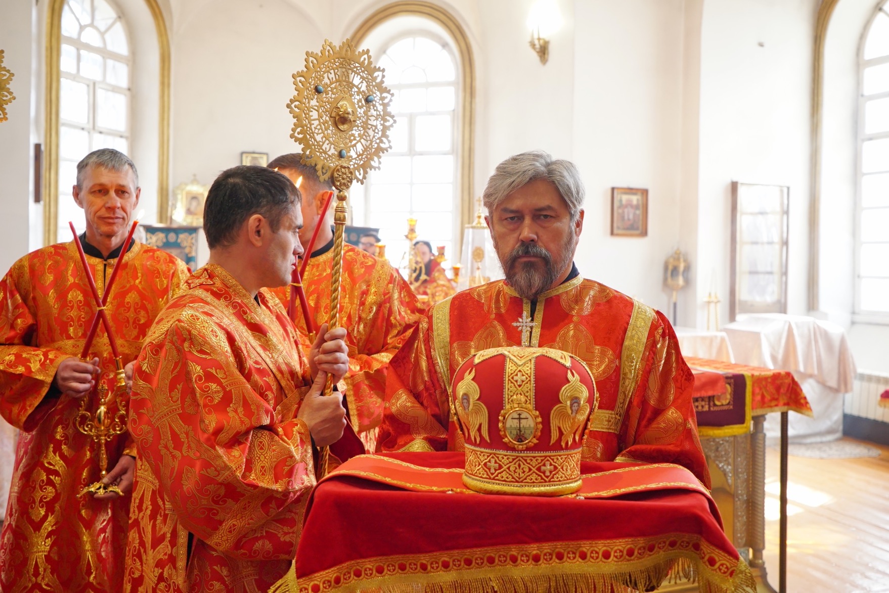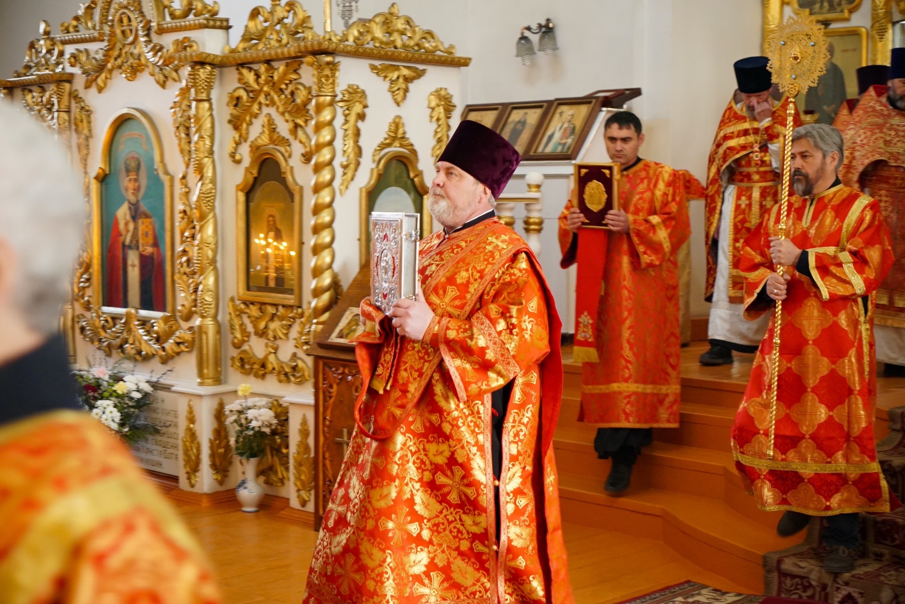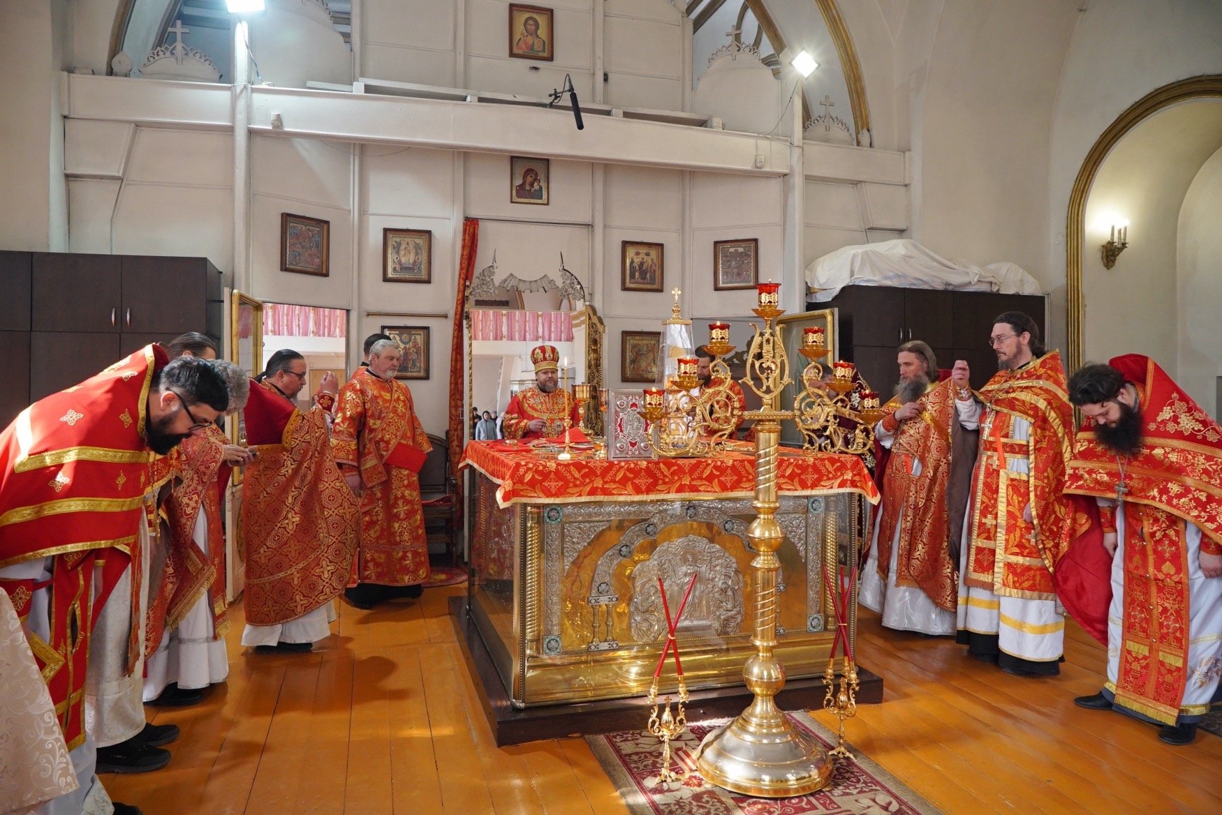 Его Преосвященству сослужили: настоятель храма протоиерей Валерий Замятин, протоиерей Александр Петров, иерей Евгений Щигрев, иерей Димитрий Харин, иерей Димитрий Камбалин, иерей Вадим Четвергов, иерей Василий Давыдкин, иерей Александр Лобанов, протодиакон Вадим Шпак, диакон Николай Геришенко.