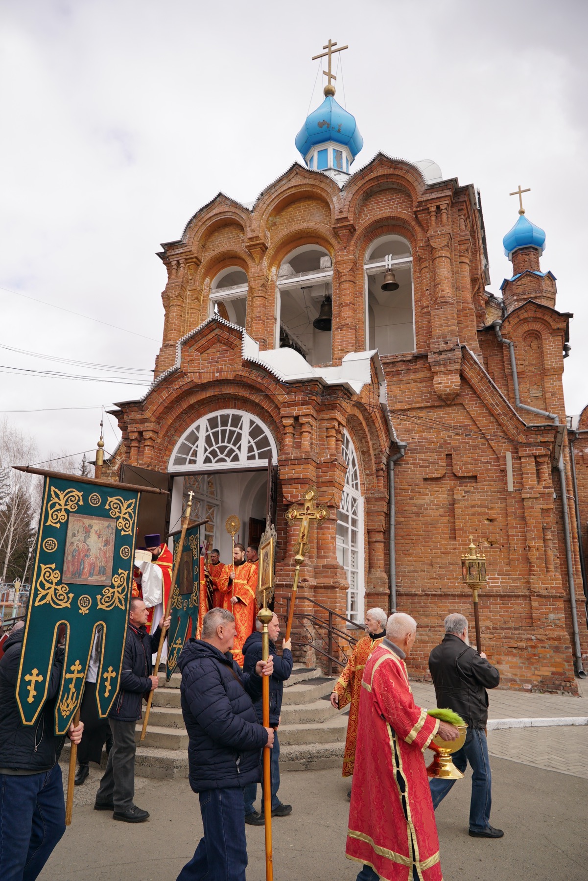 По окончании литургии был совершен Пасхальный крестный ход вокруг храма.